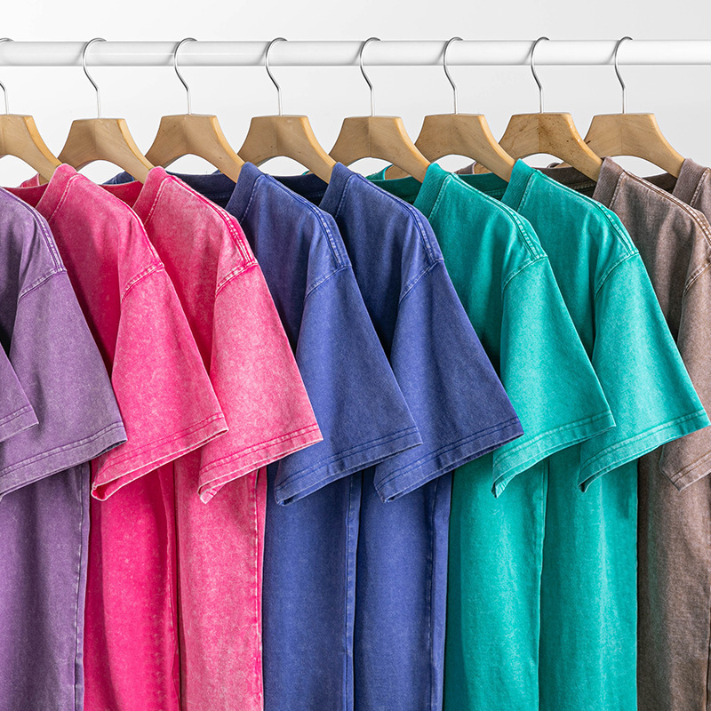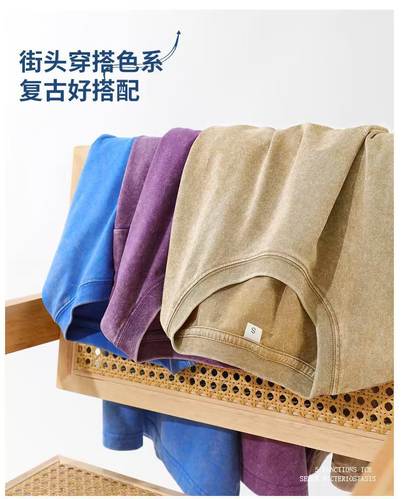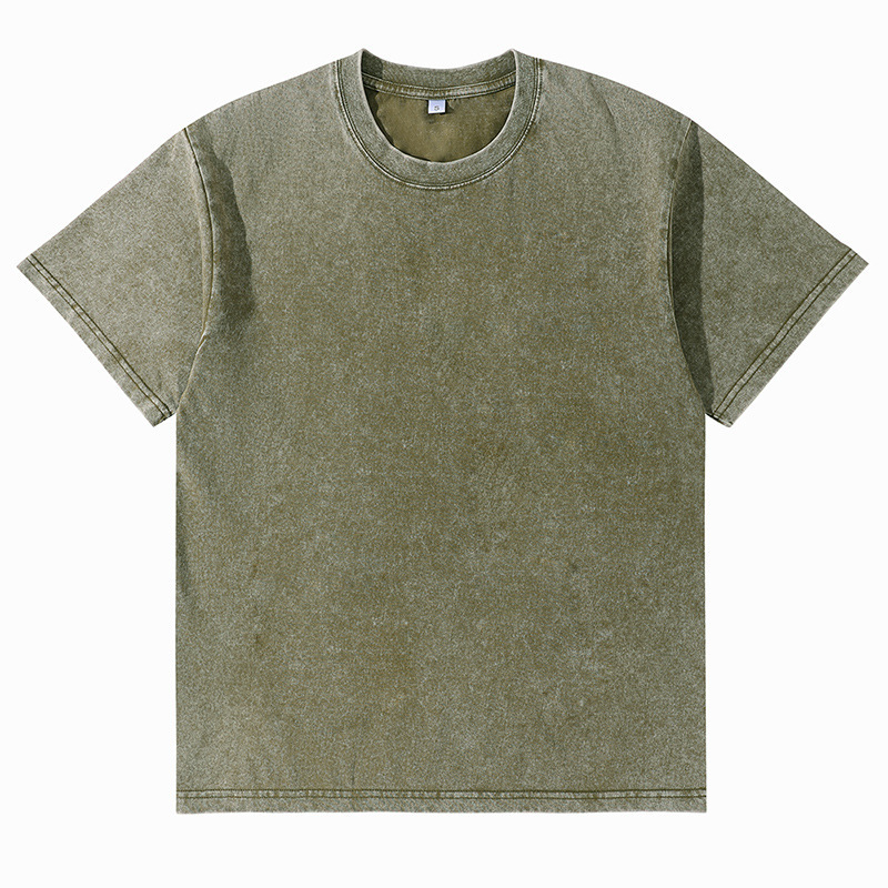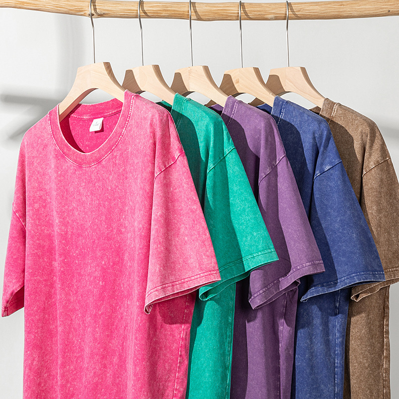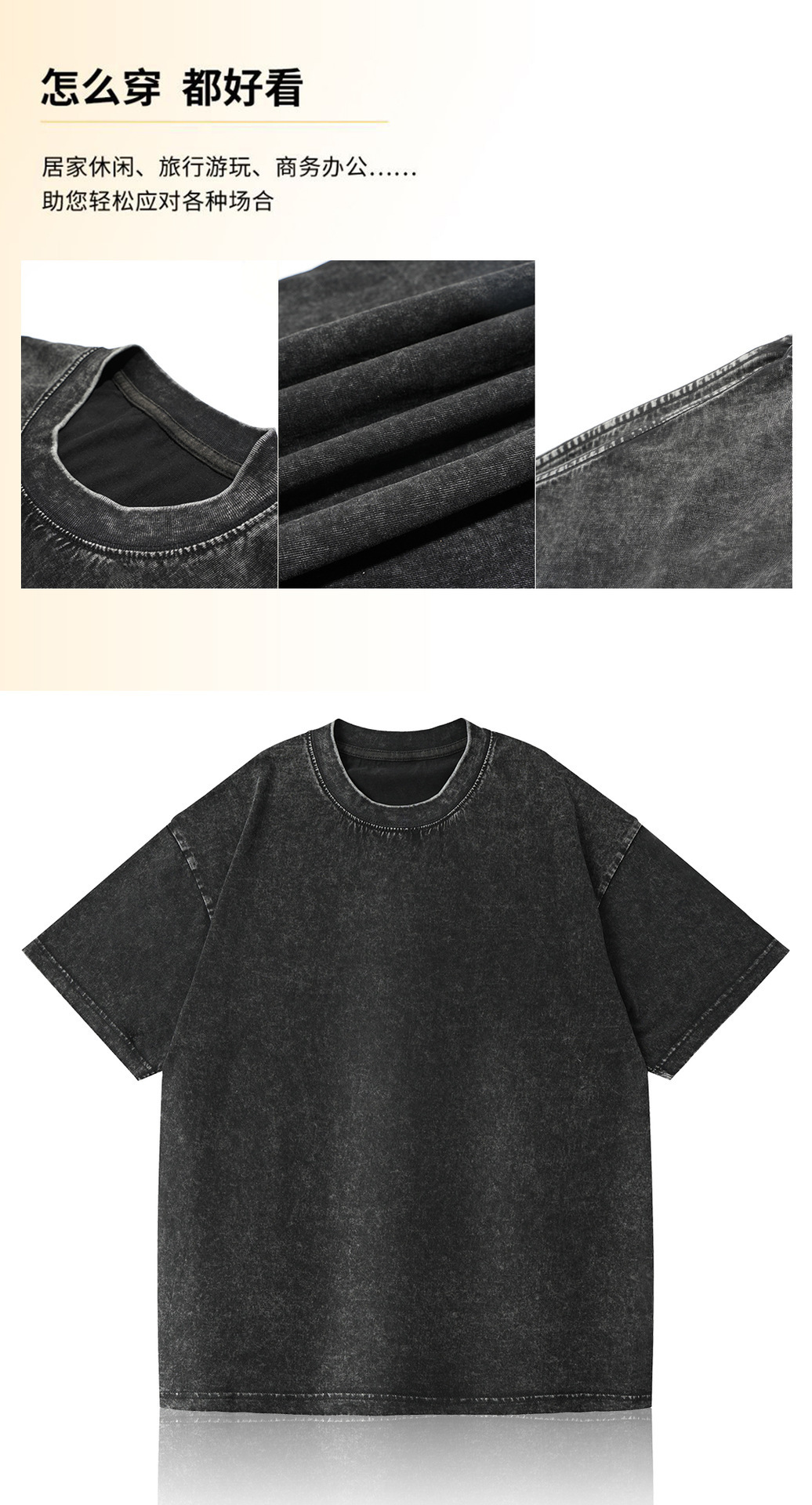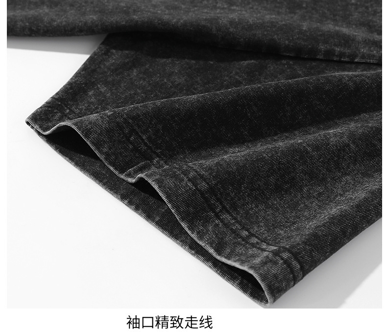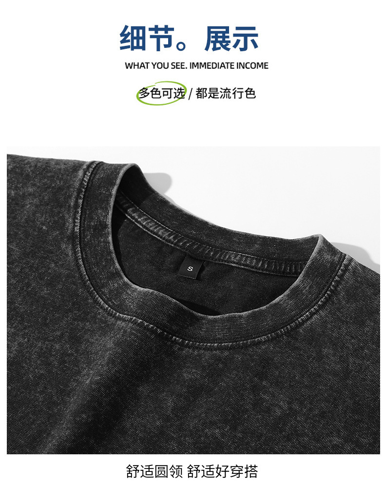 纯棉水洗做旧t恤衫跨境250克美码落肩潮牌美式复古宽松型圆领短袖