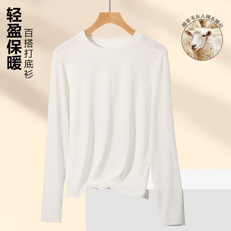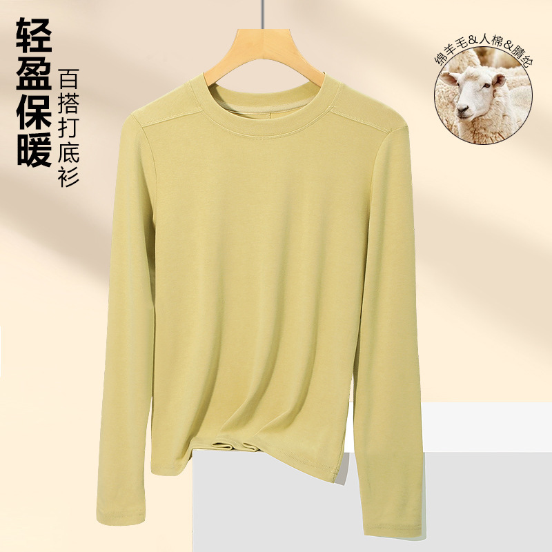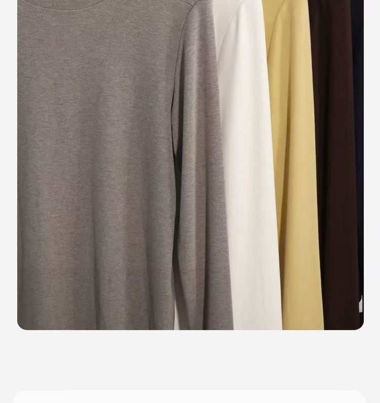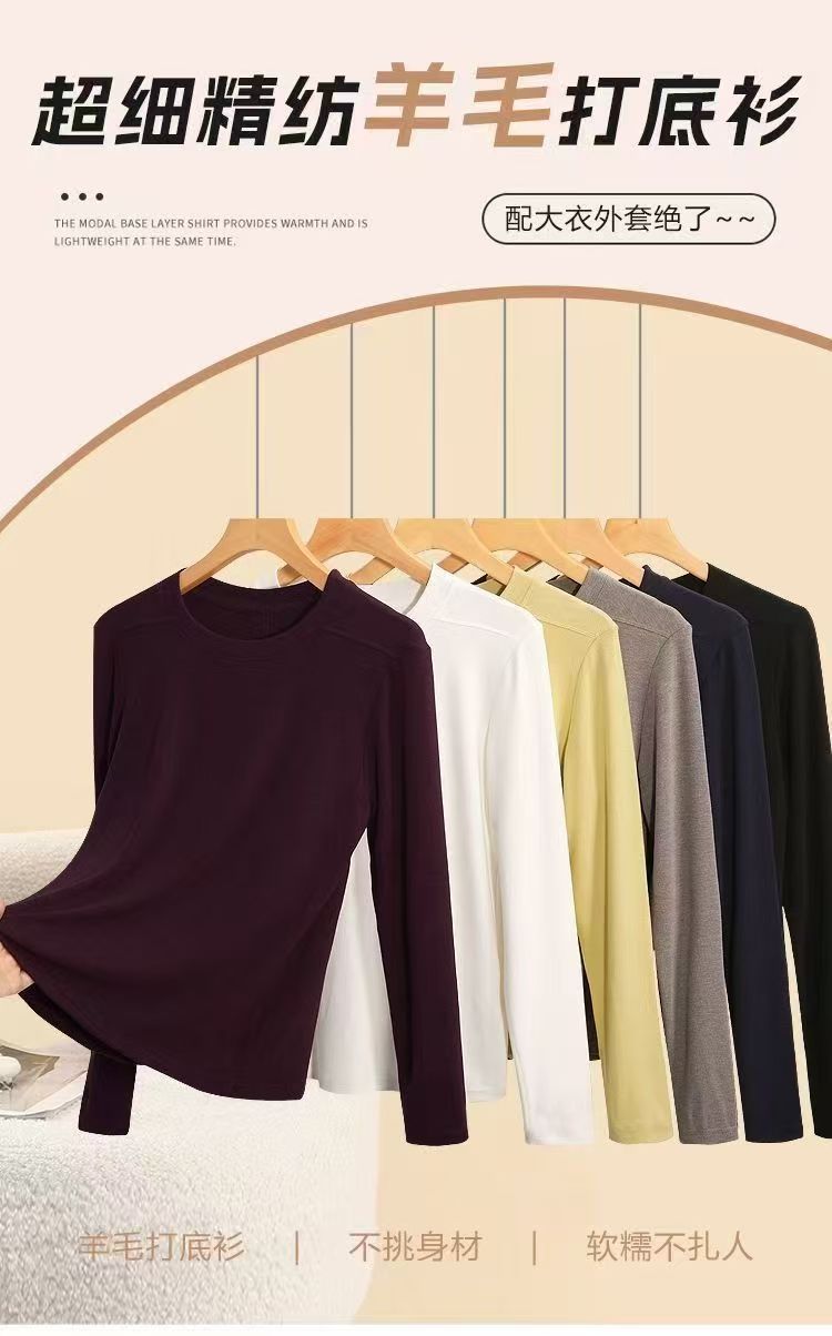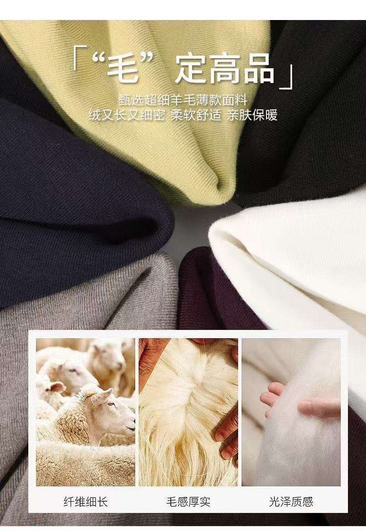 女款秋冬季舒柔轻薄修身透气羊毛打底衫简约时尚百搭纯色内搭长袖