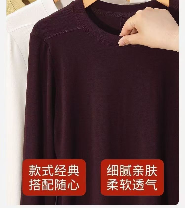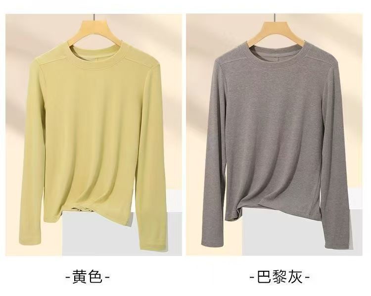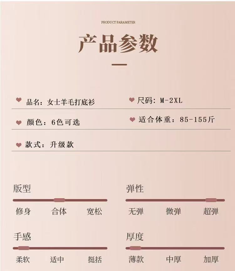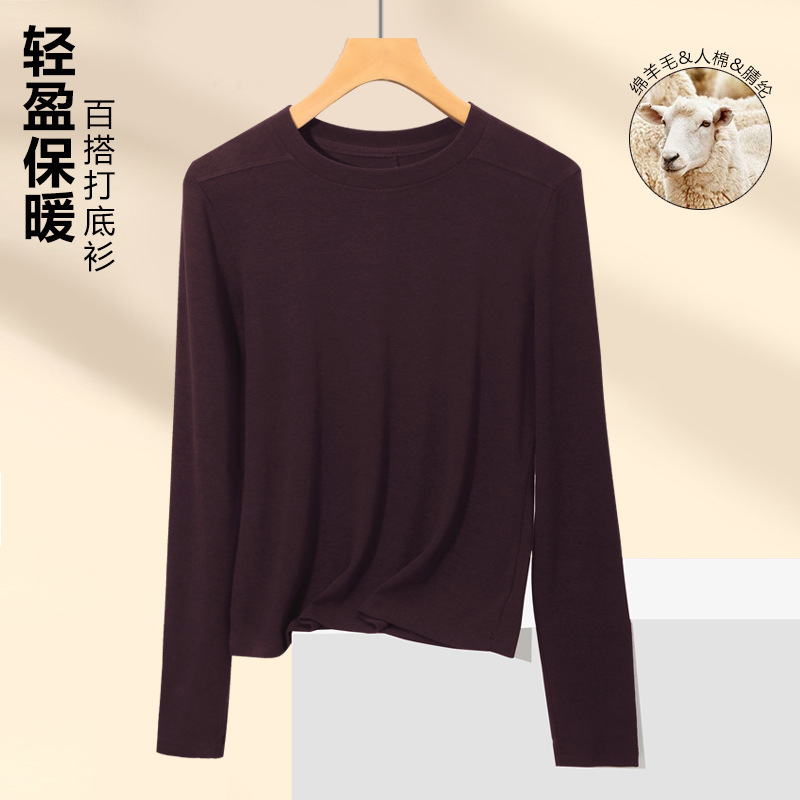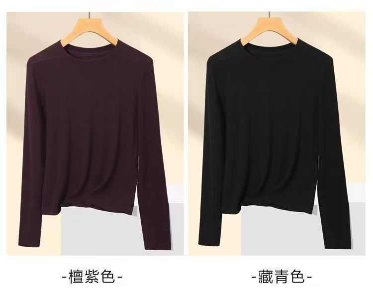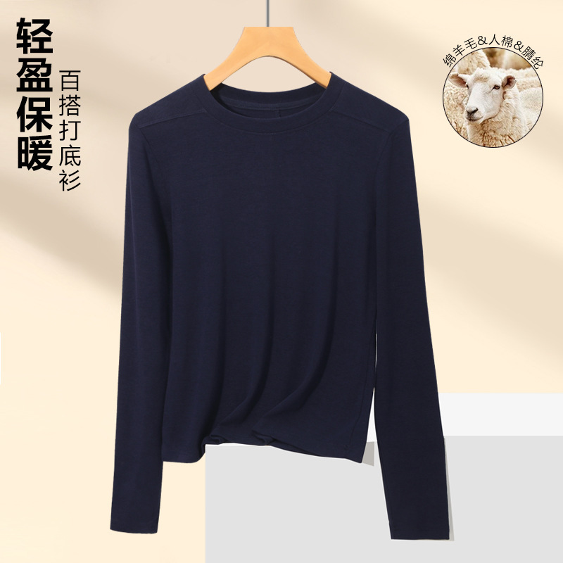 女款秋冬季舒柔轻薄修身透气羊毛打底衫简约时尚百搭纯色内搭长袖
