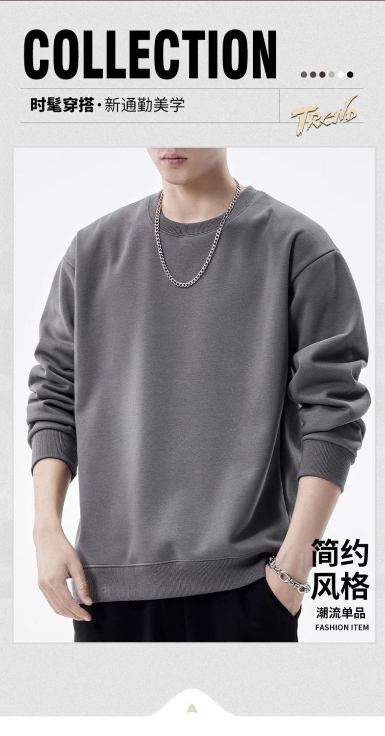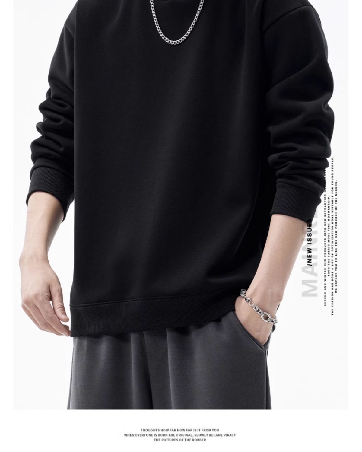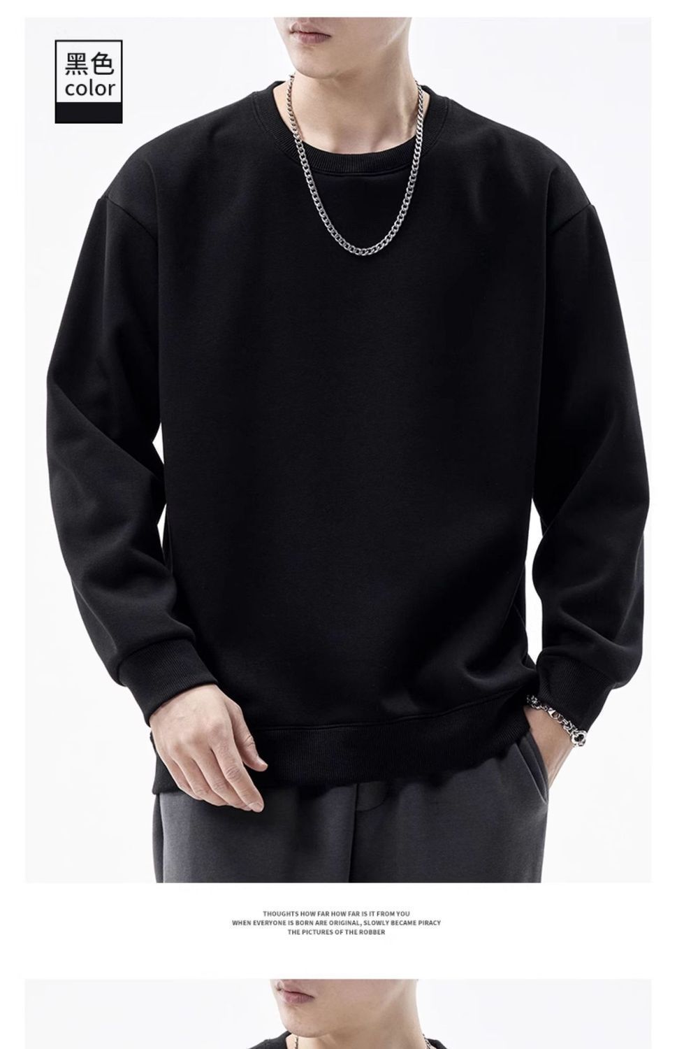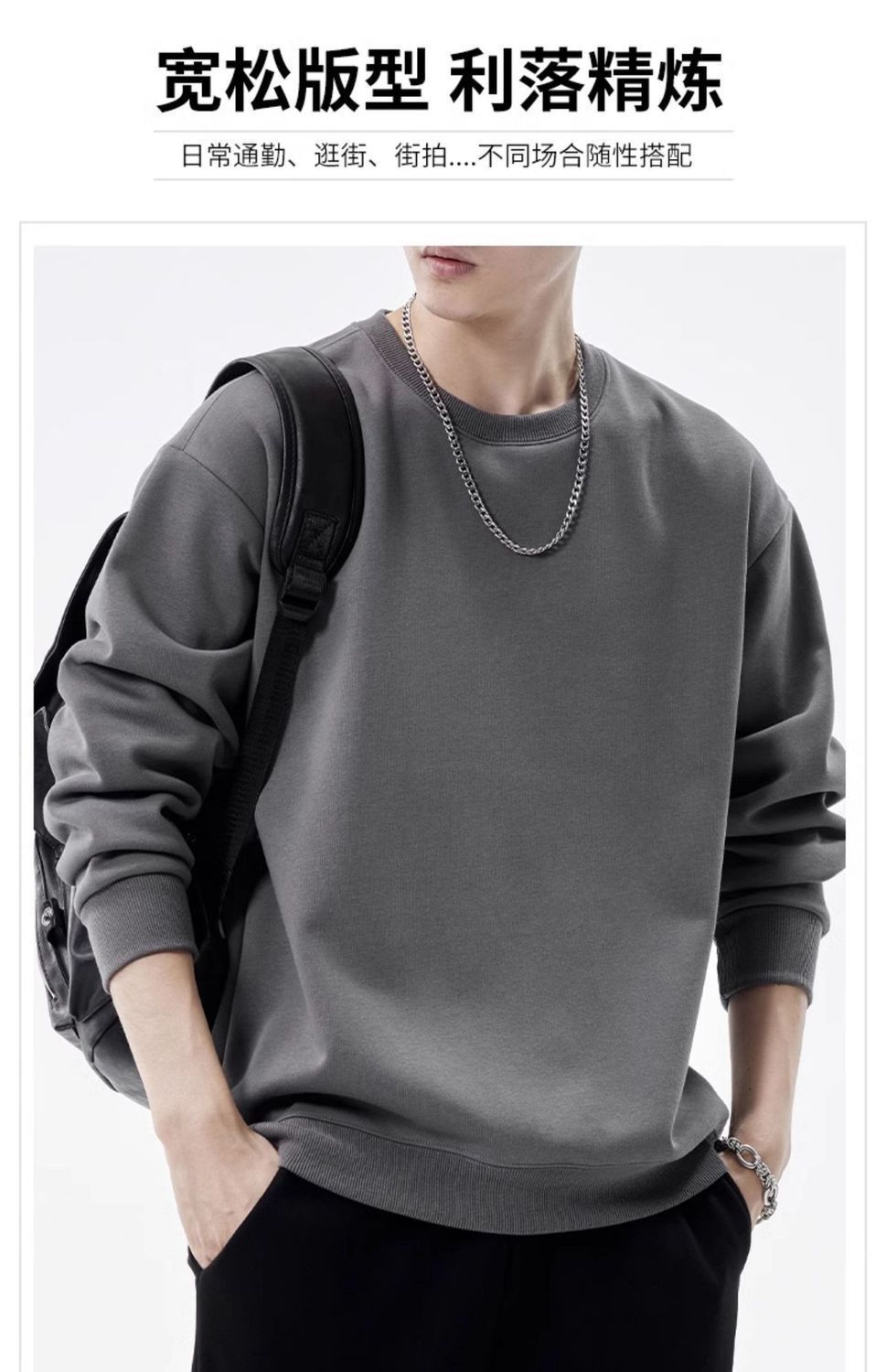 2025春秋新款休闲秋冬加绒卫衣纯色百搭男士圆领长袖上衣宽松外套