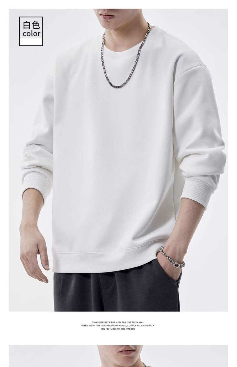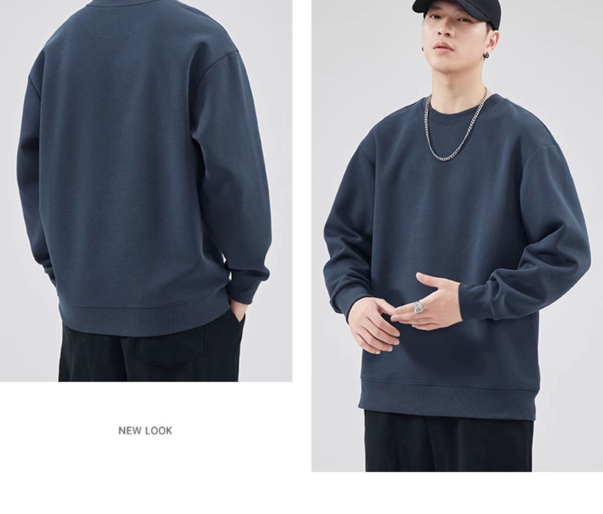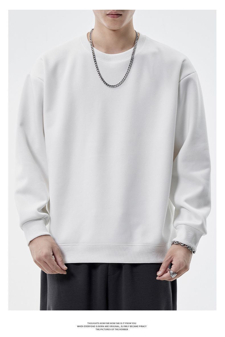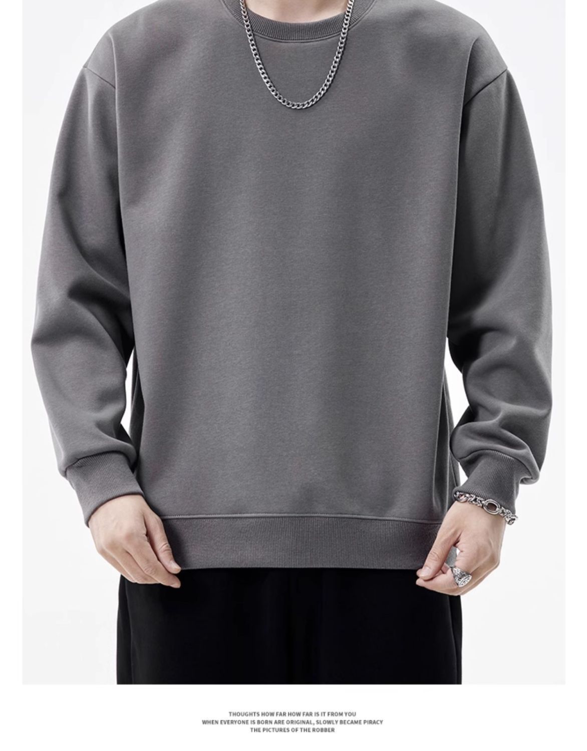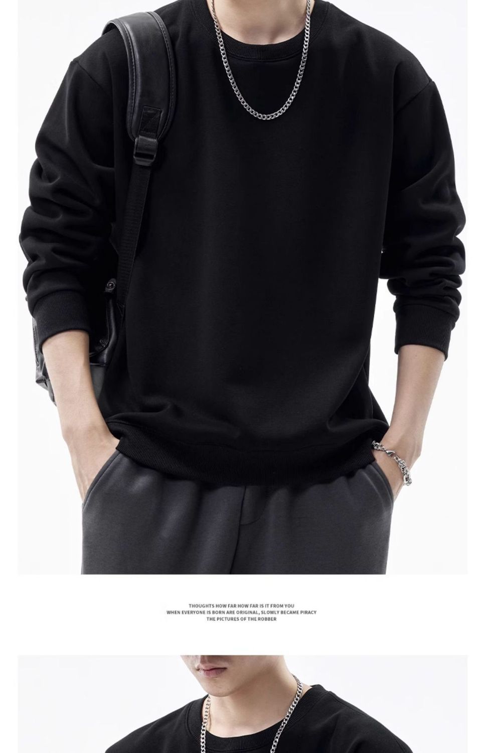 2025春秋新款休闲秋冬加绒卫衣纯色百搭男士圆领长袖上衣宽松外套