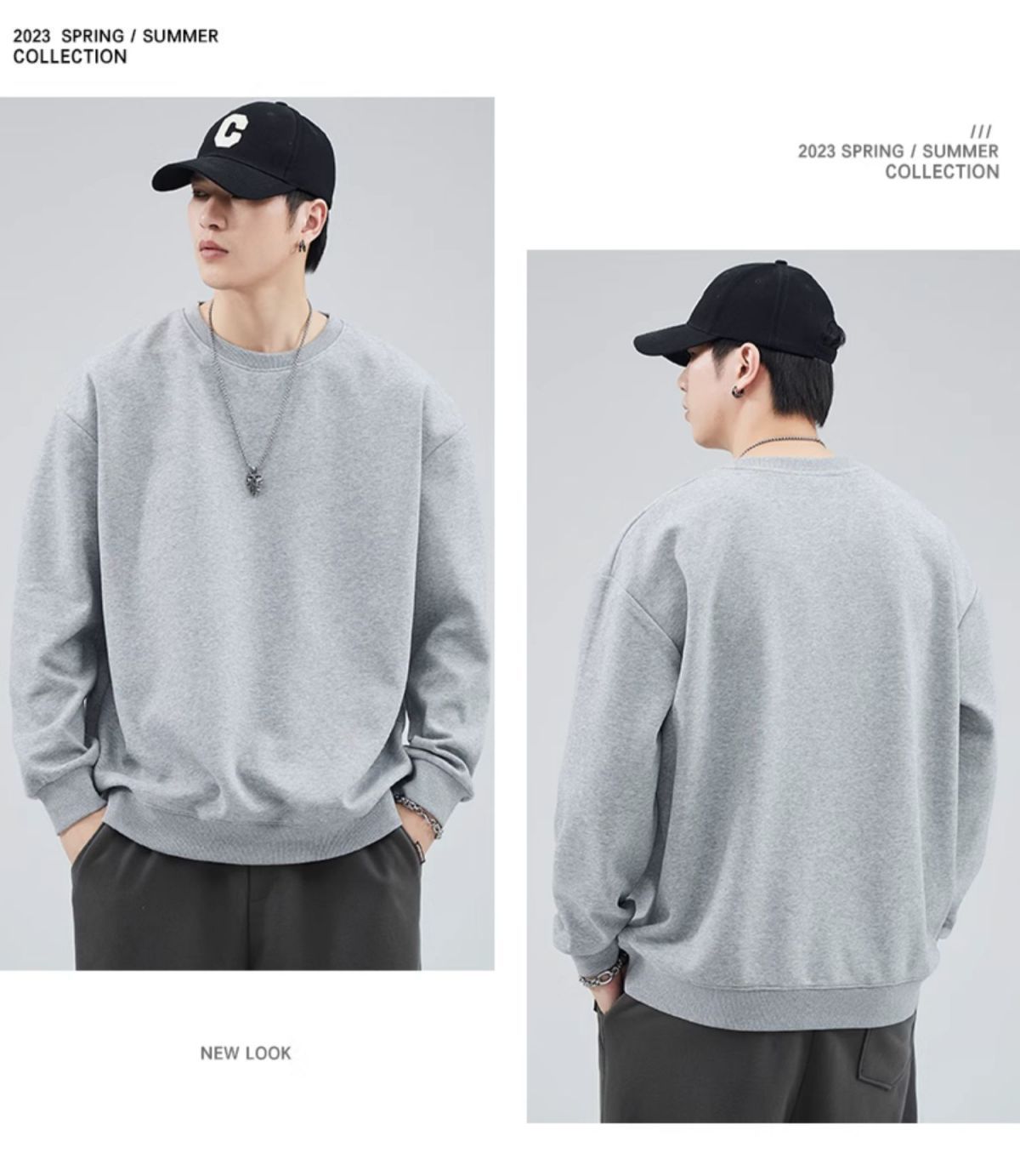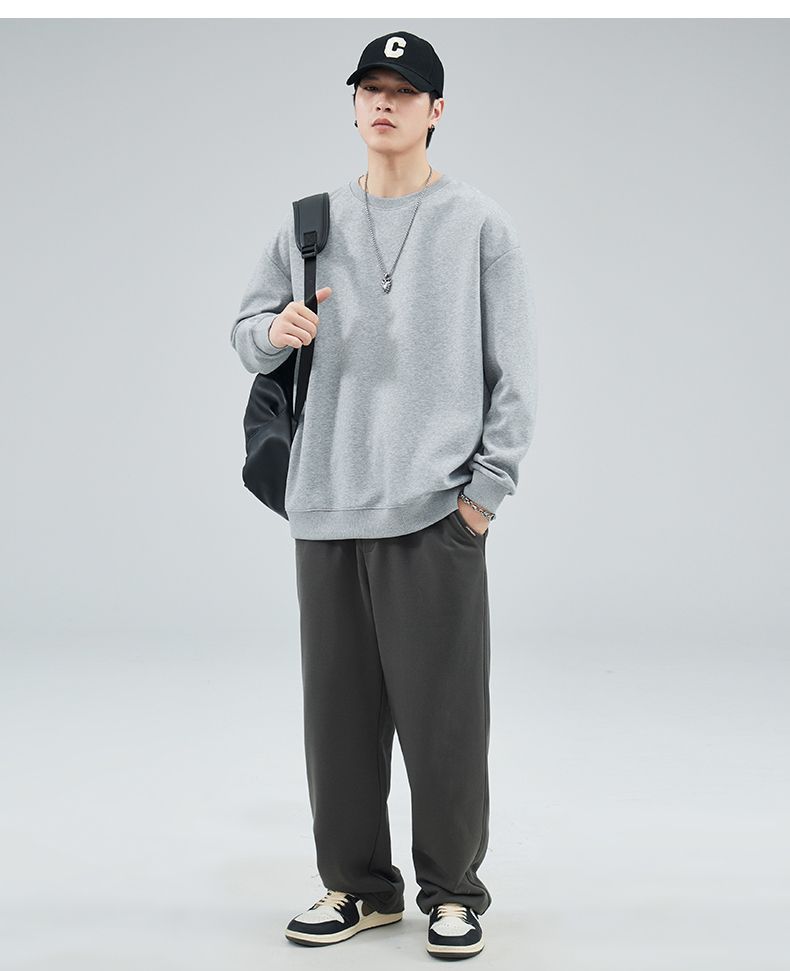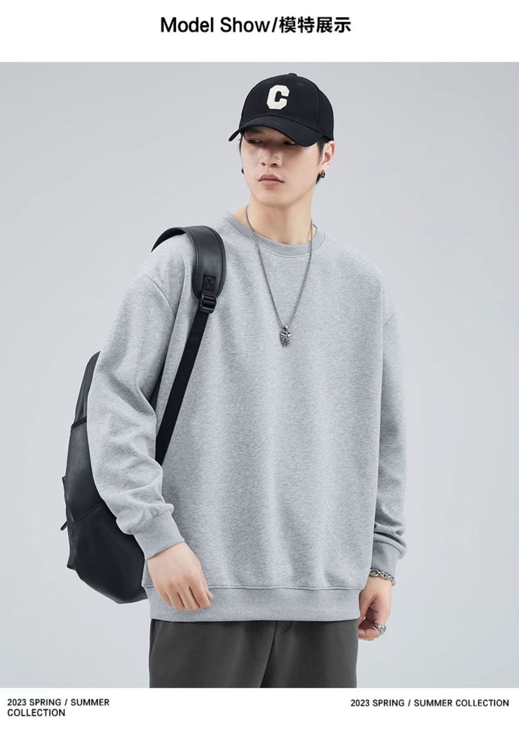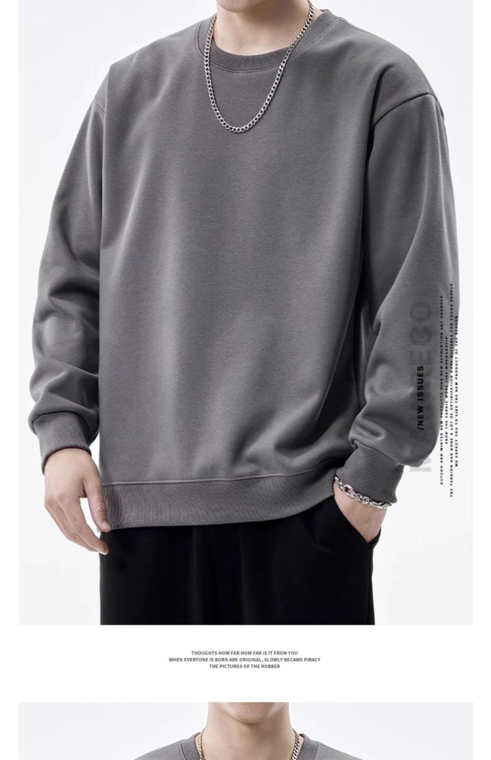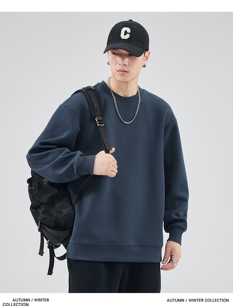 2025春秋新款休闲秋冬加绒卫衣纯色百搭男士圆领长袖上衣宽松外套