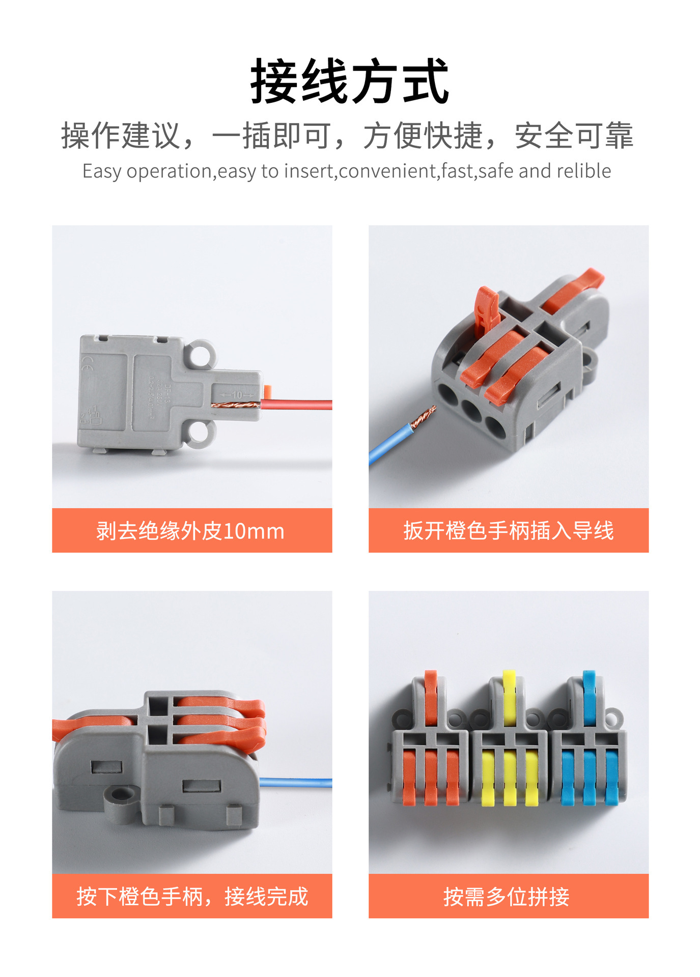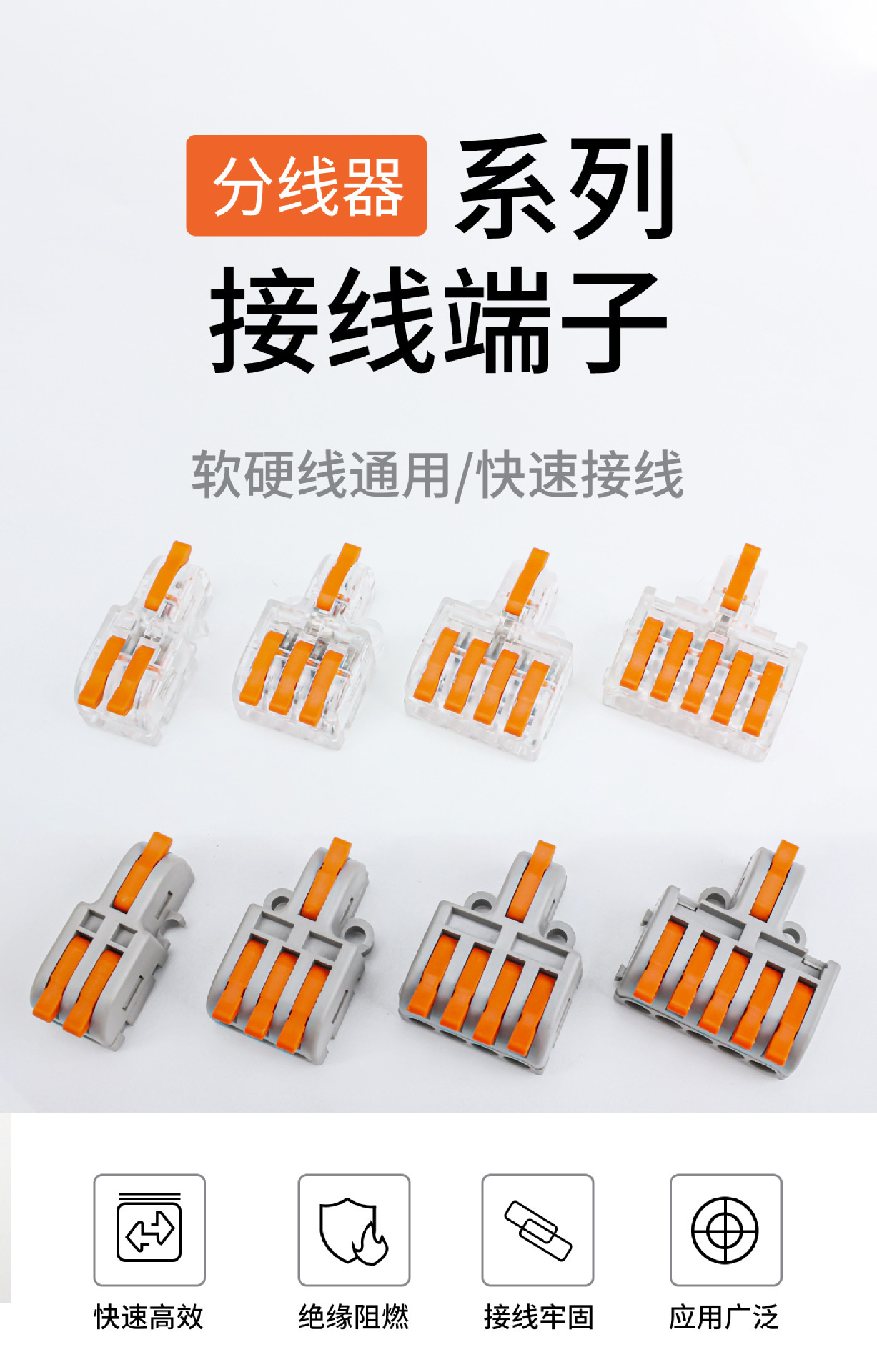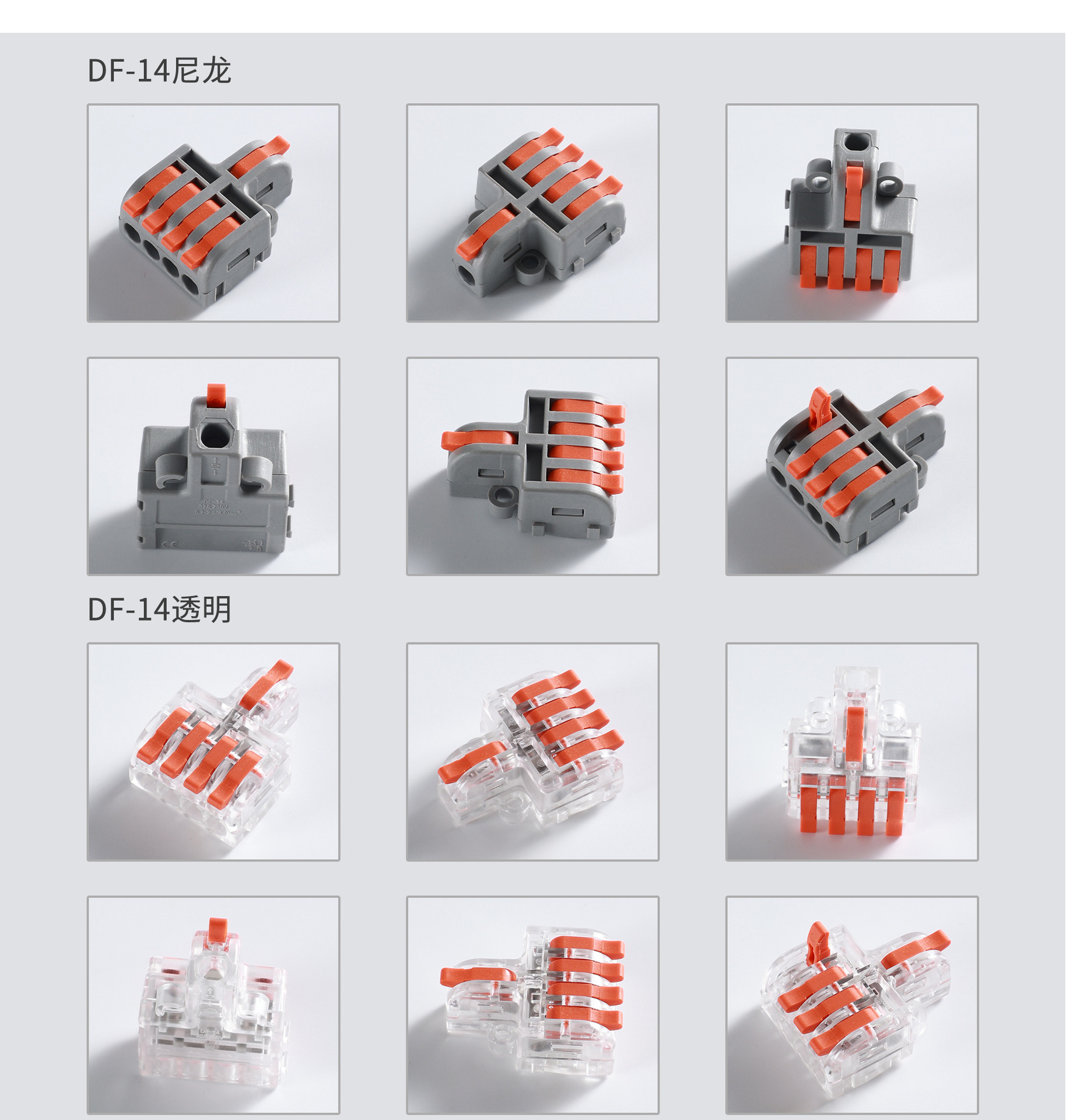 快速接线端子DF-12/DF-13/DF-14/DF-15分线器可拼接式一进二三出