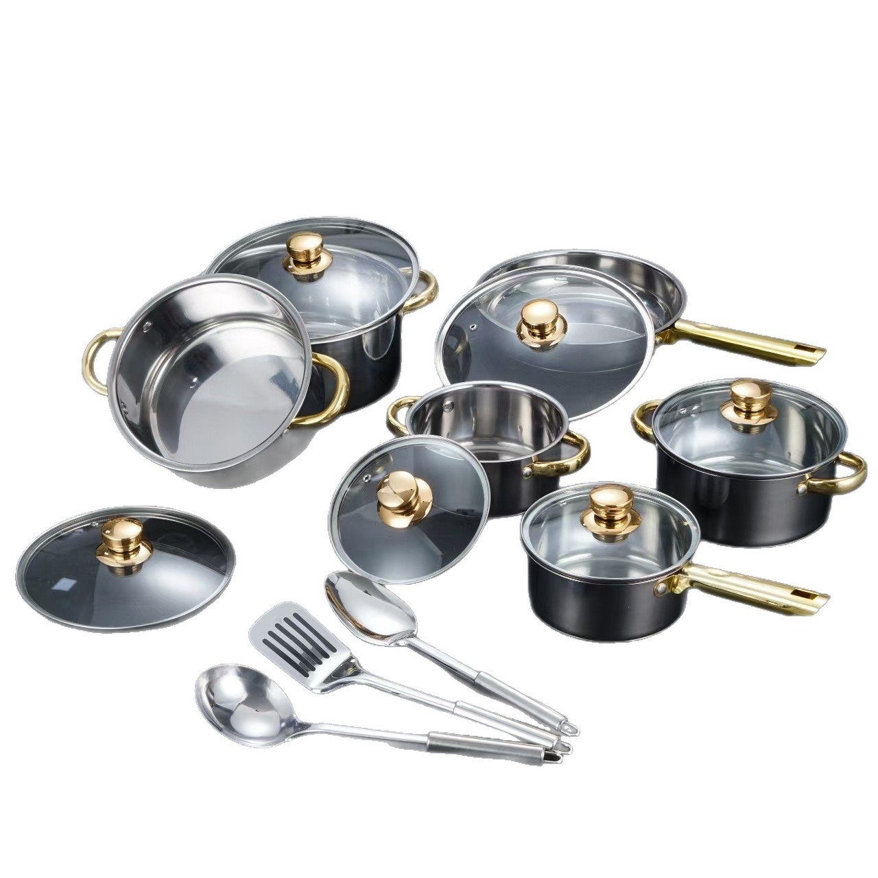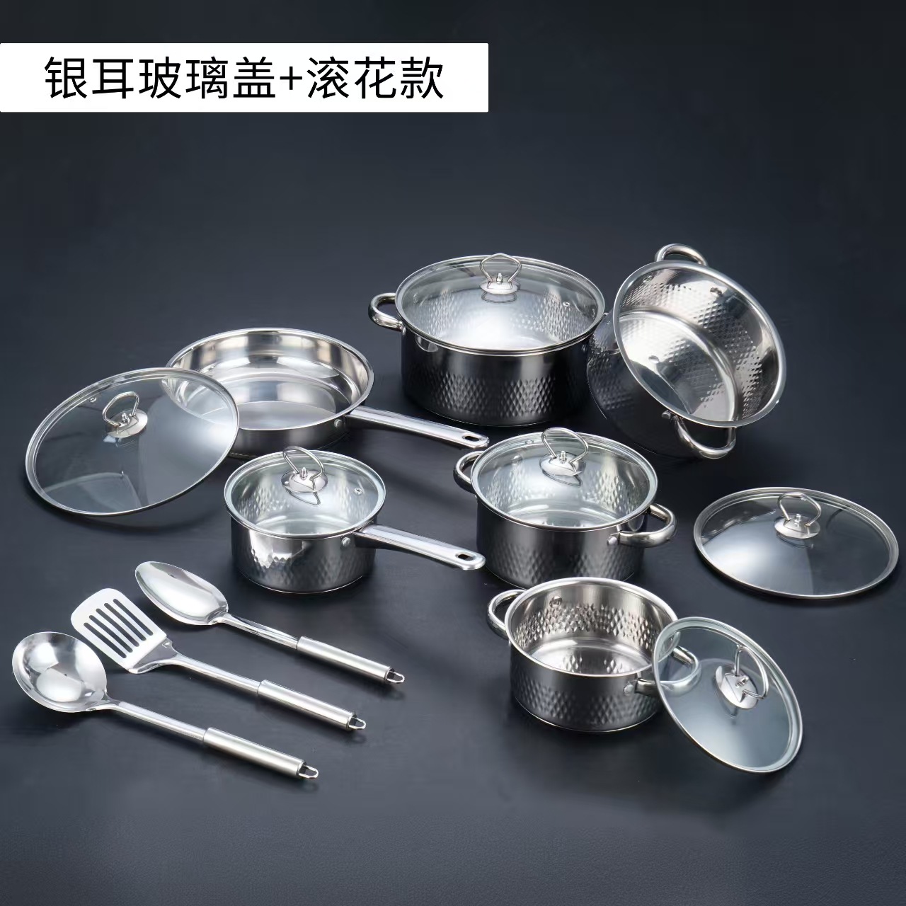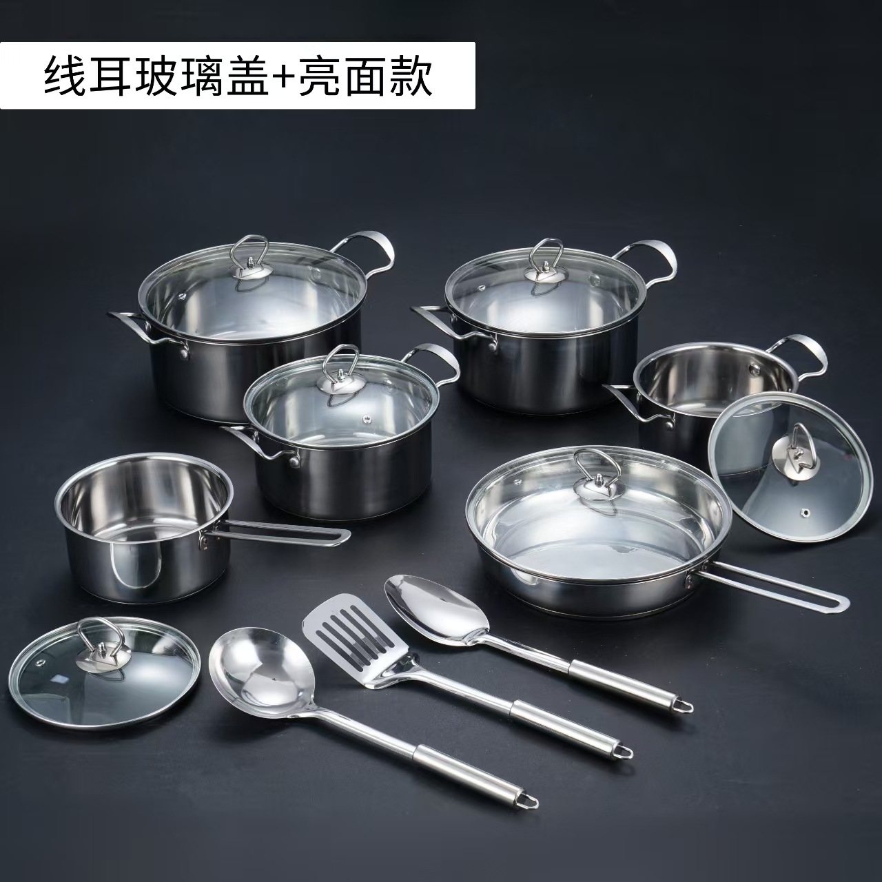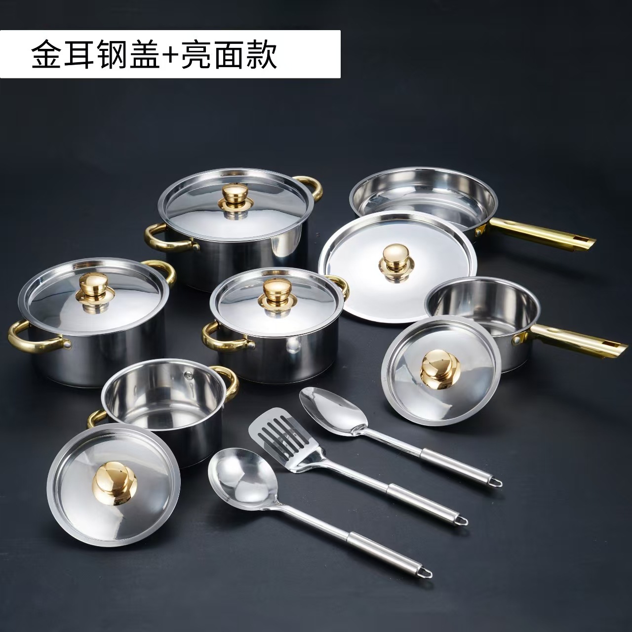 汤锅奶锅煎锅双耳跨境不锈钢锅酒店厨房锅具15pcs套装cooking pot