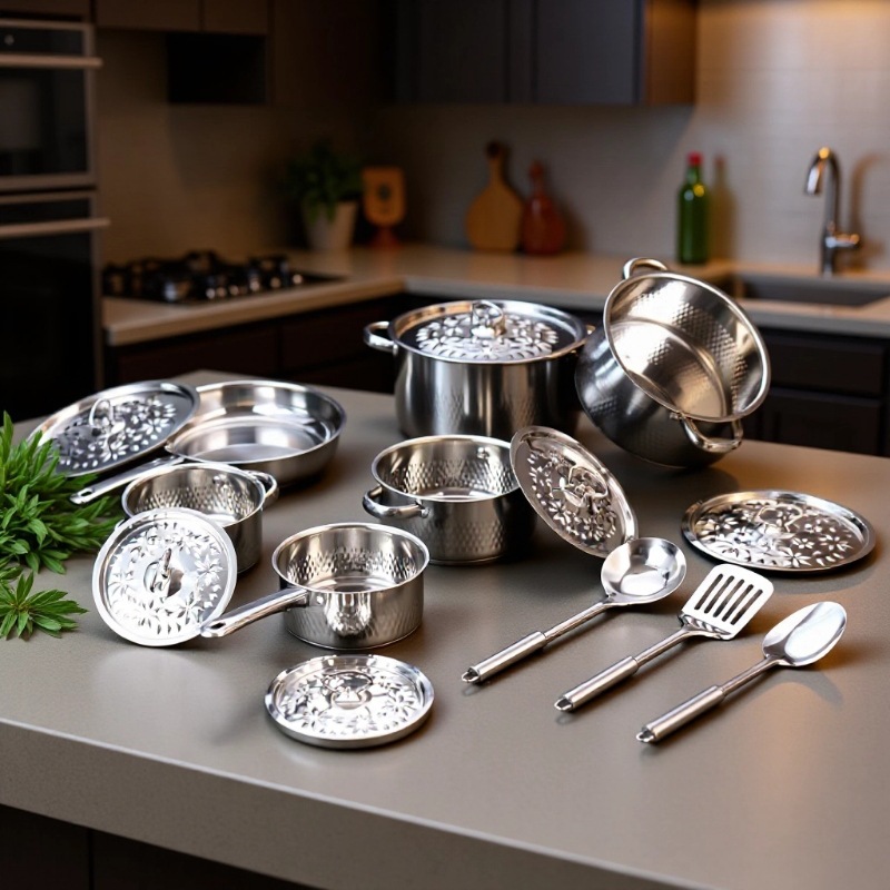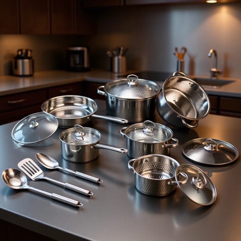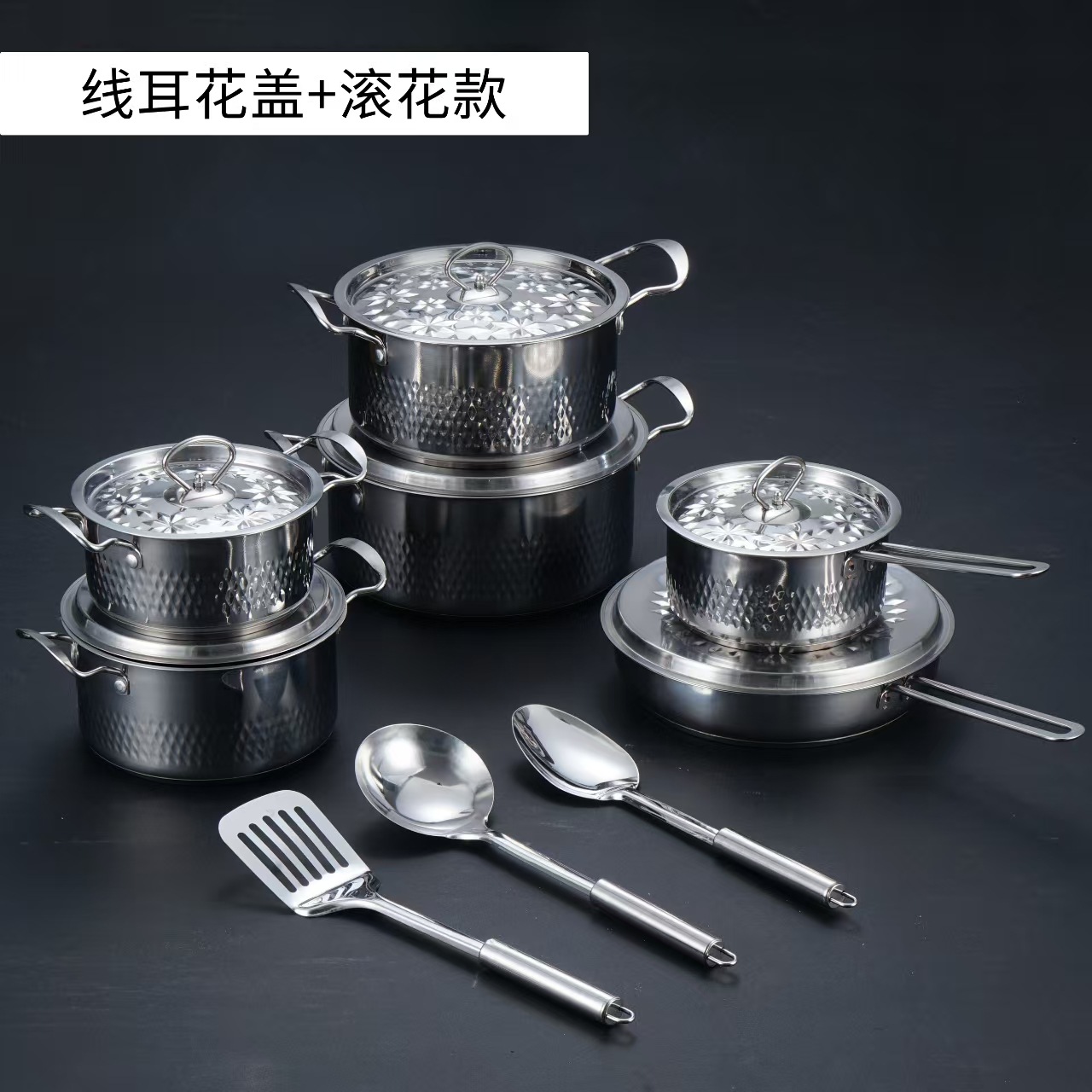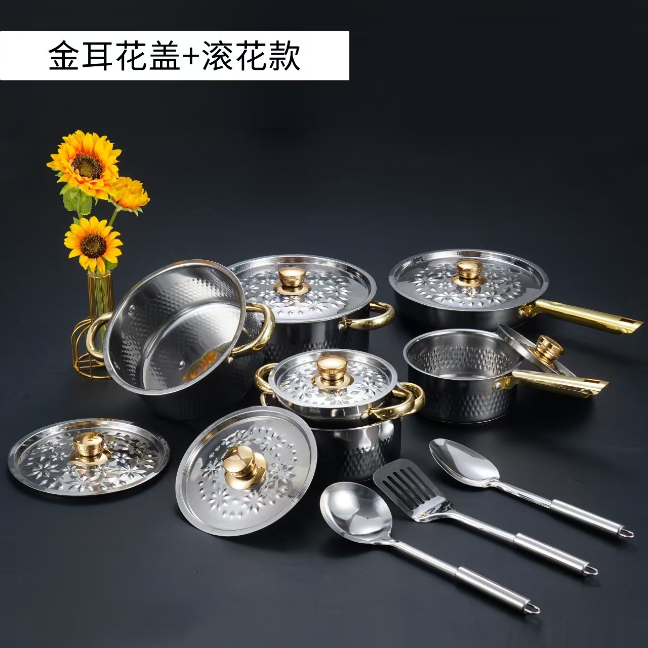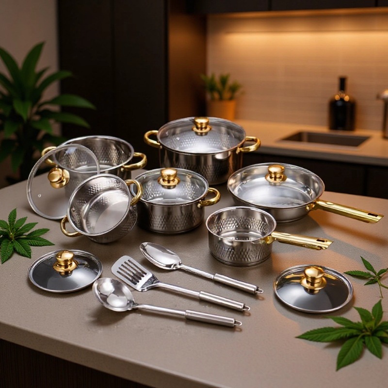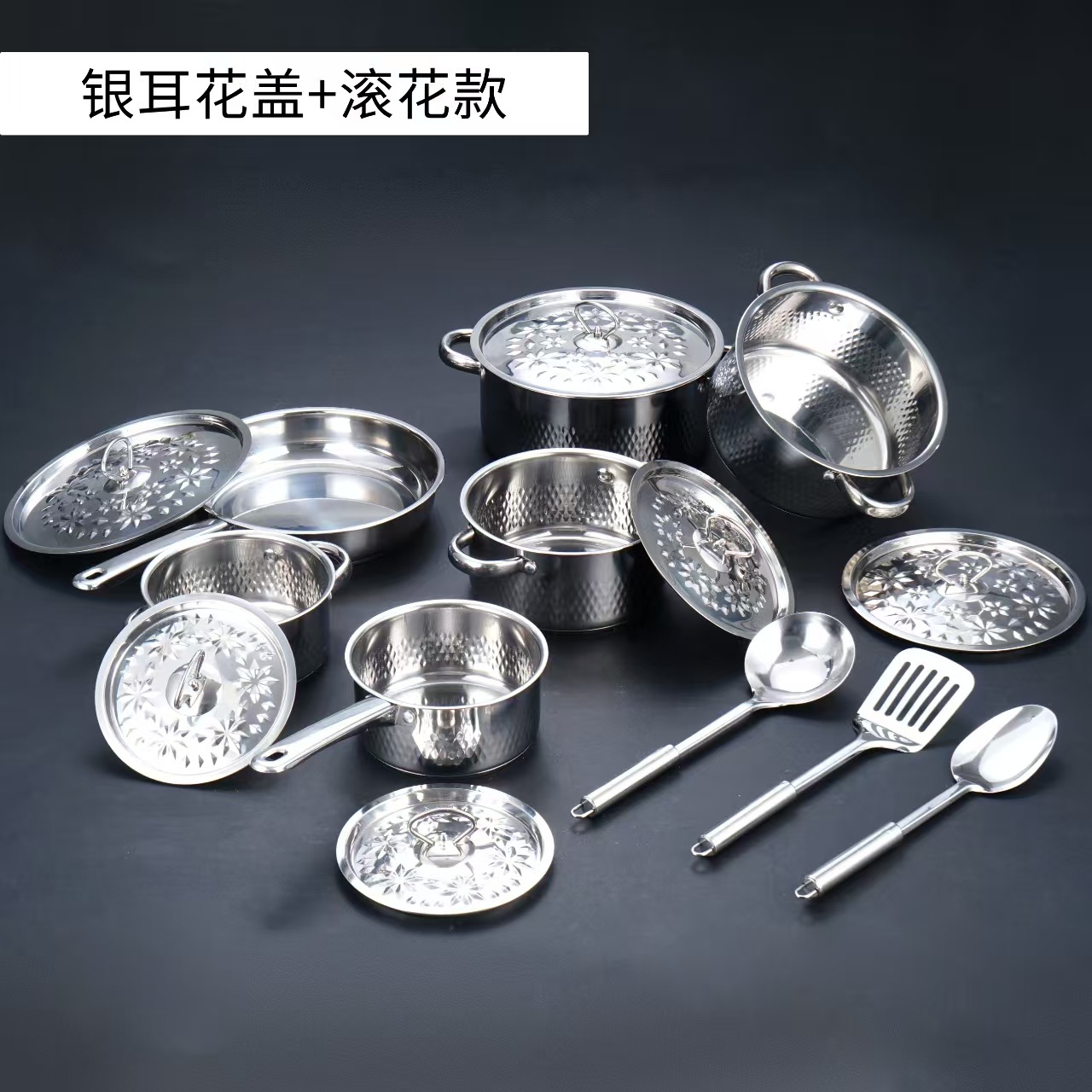 汤锅奶锅煎锅双耳跨境不锈钢锅酒店厨房锅具15pcs套装cooking pot