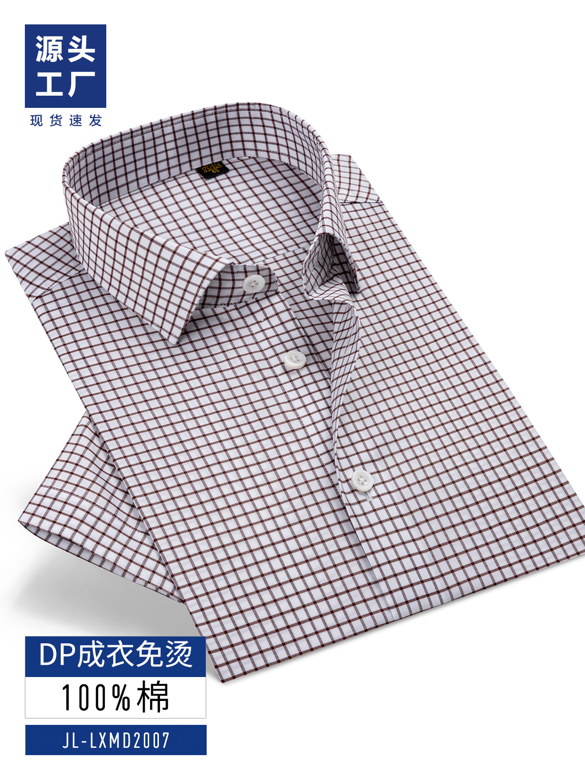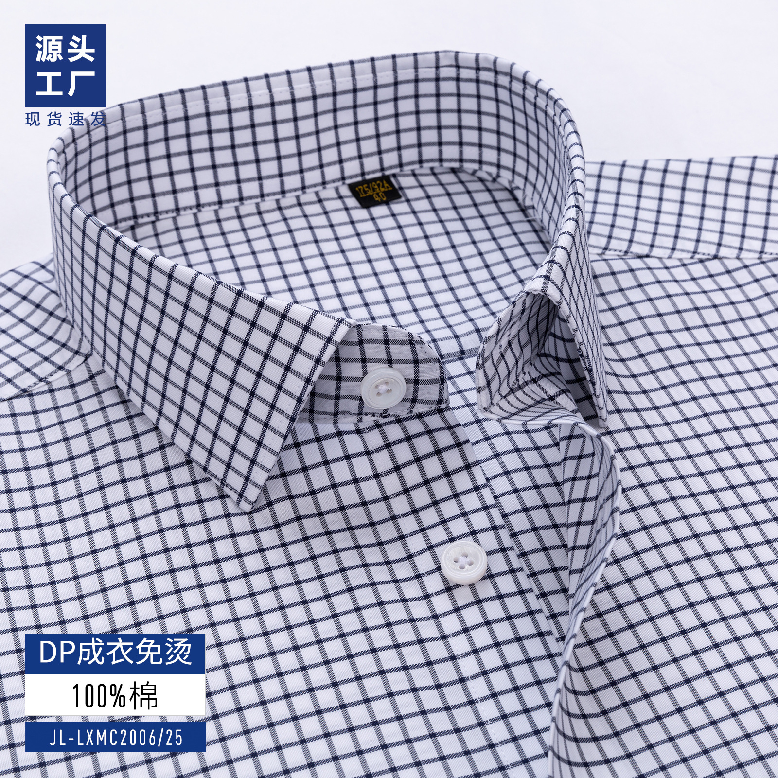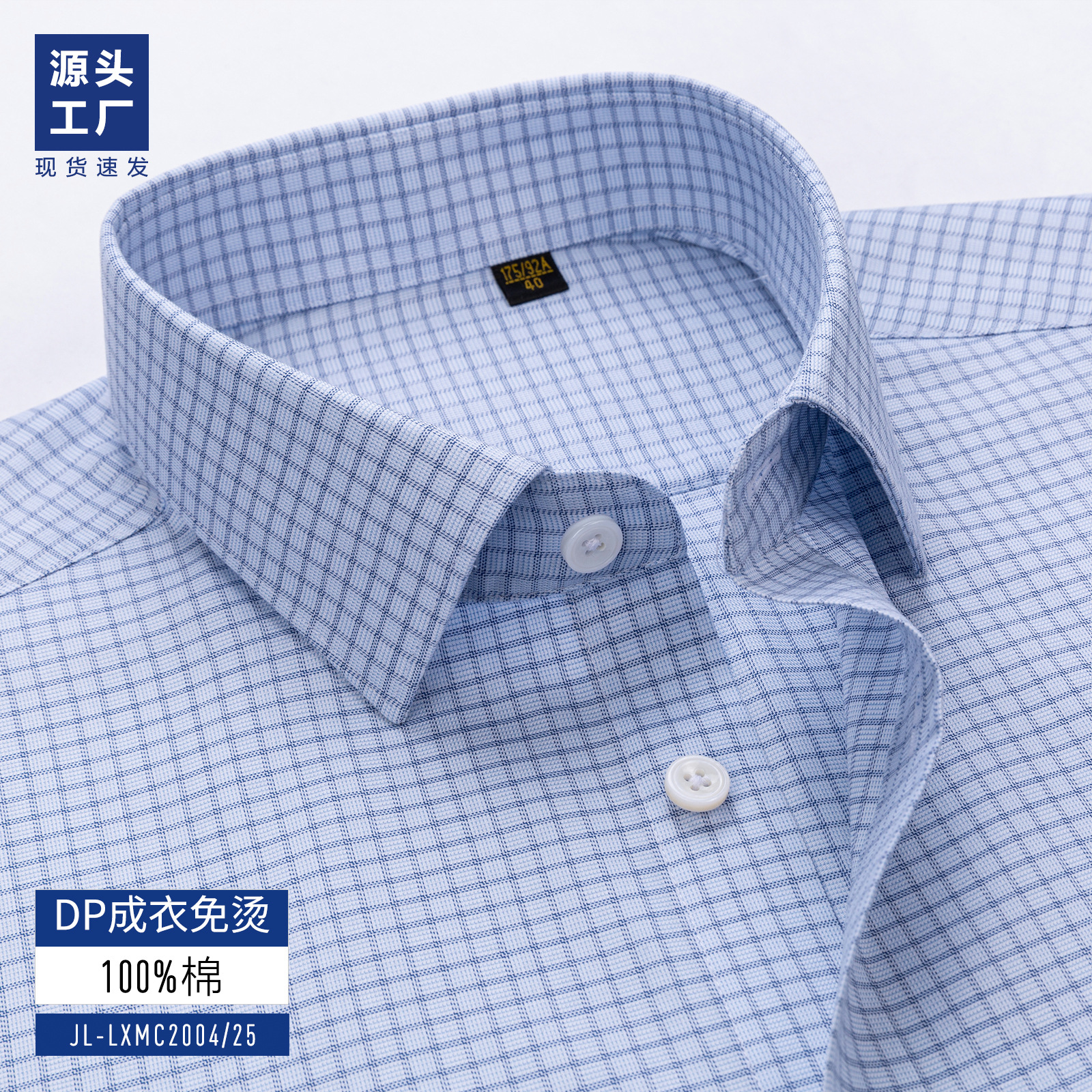 高端男士休闲衬衫男200支4股全纯棉格子DP免烫衬衣长袖高级感短袖