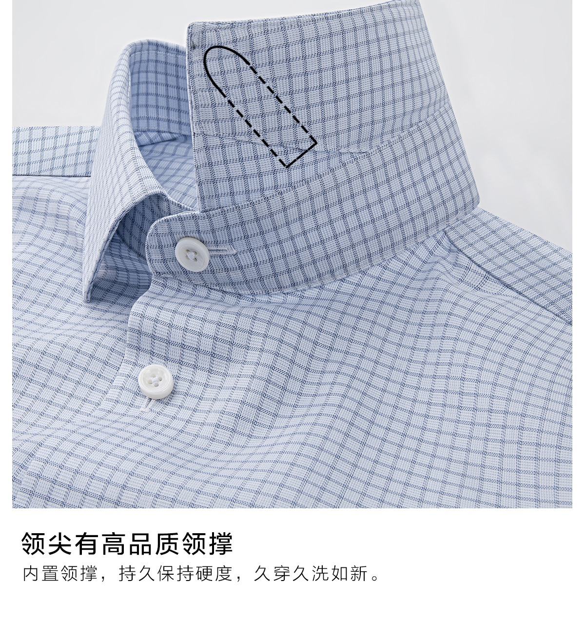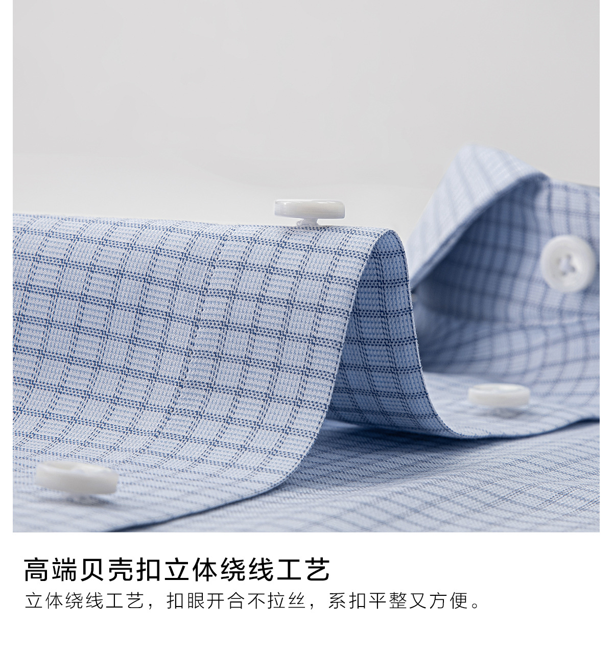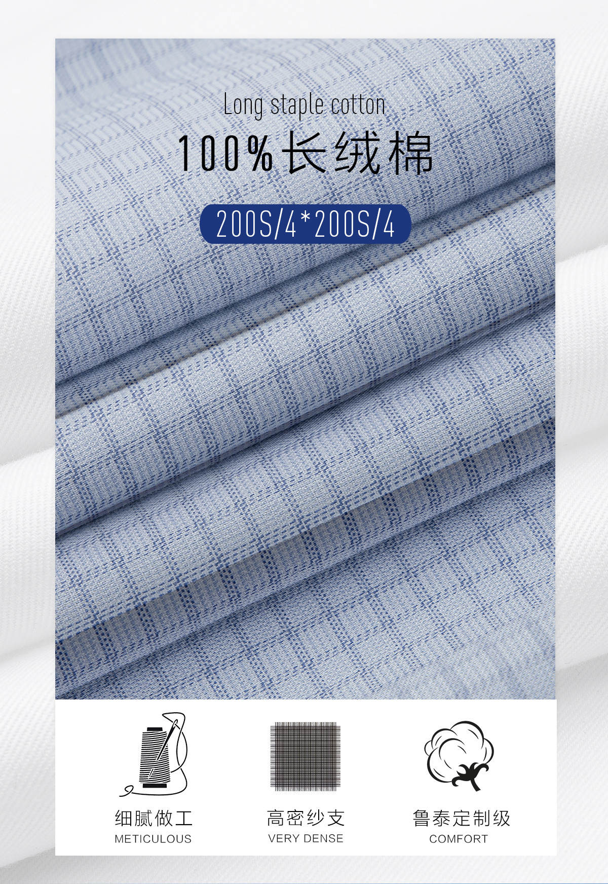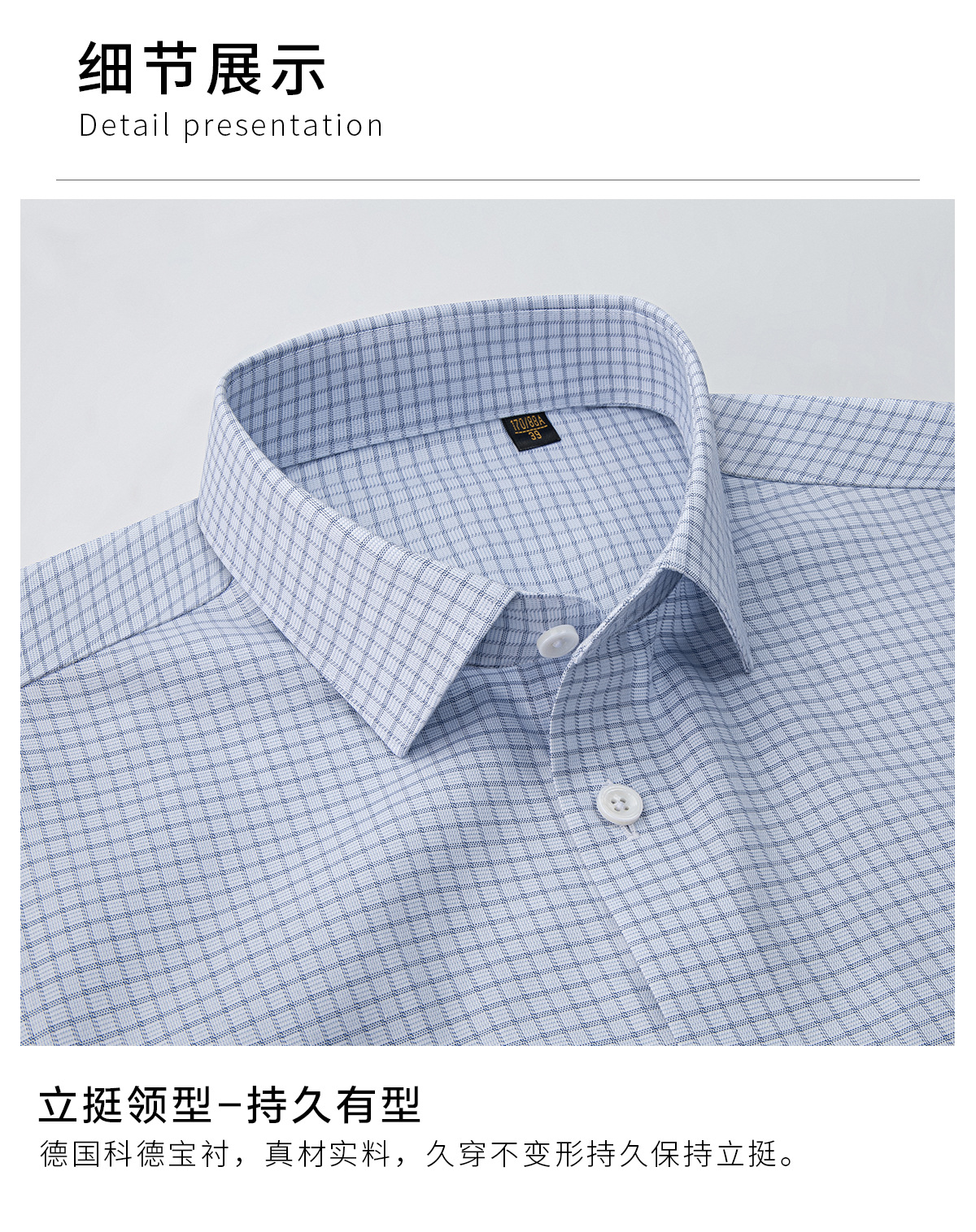 高端男士休闲衬衫男200支4股全纯棉格子DP免烫衬衣长袖高级感短袖
