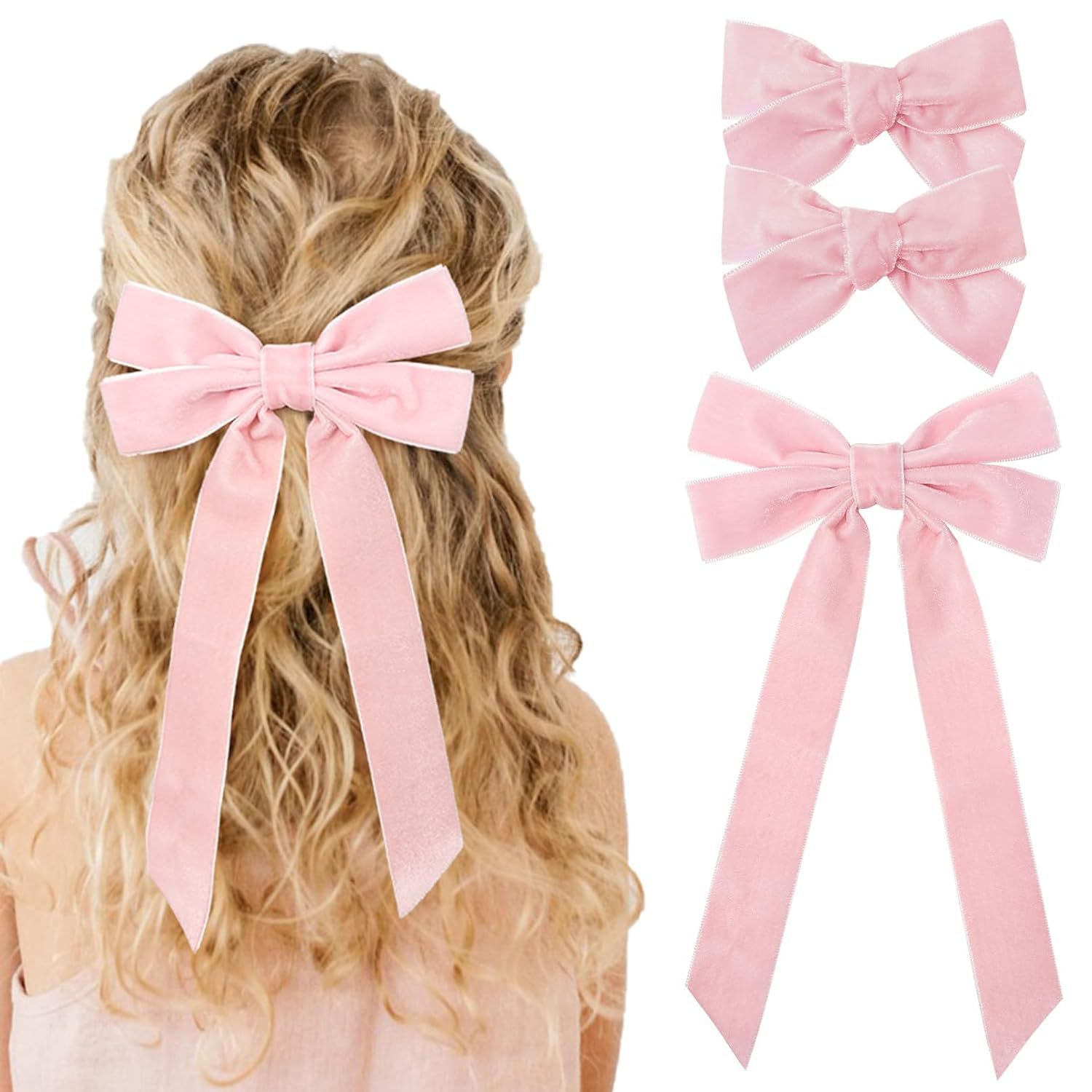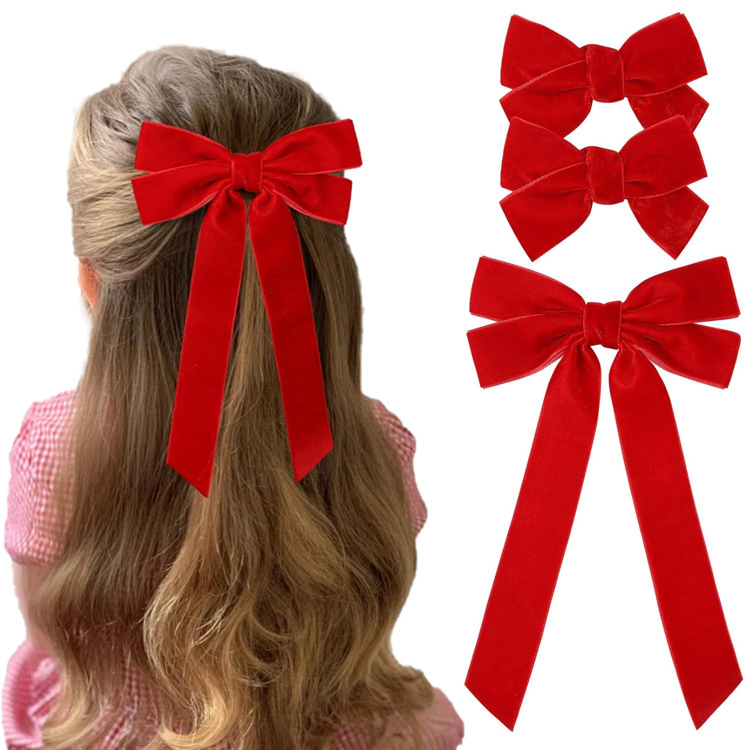 (3件套)新款跨境天鹅绒女士发夹丝带配饰马尾辫头饰亚马逊TEMU