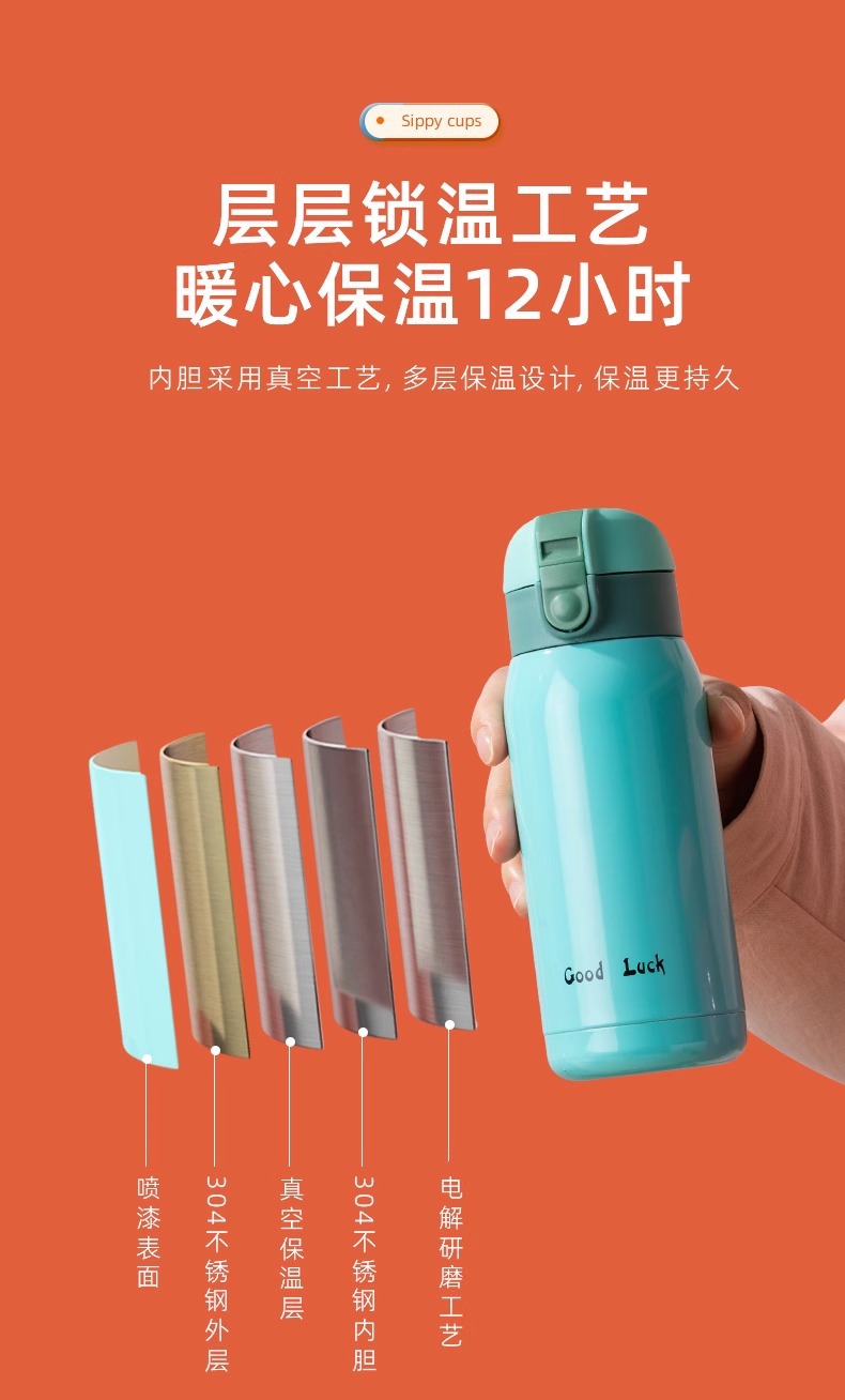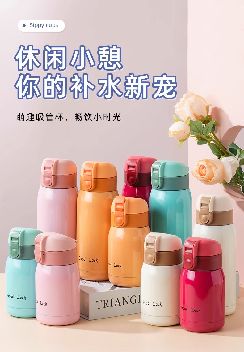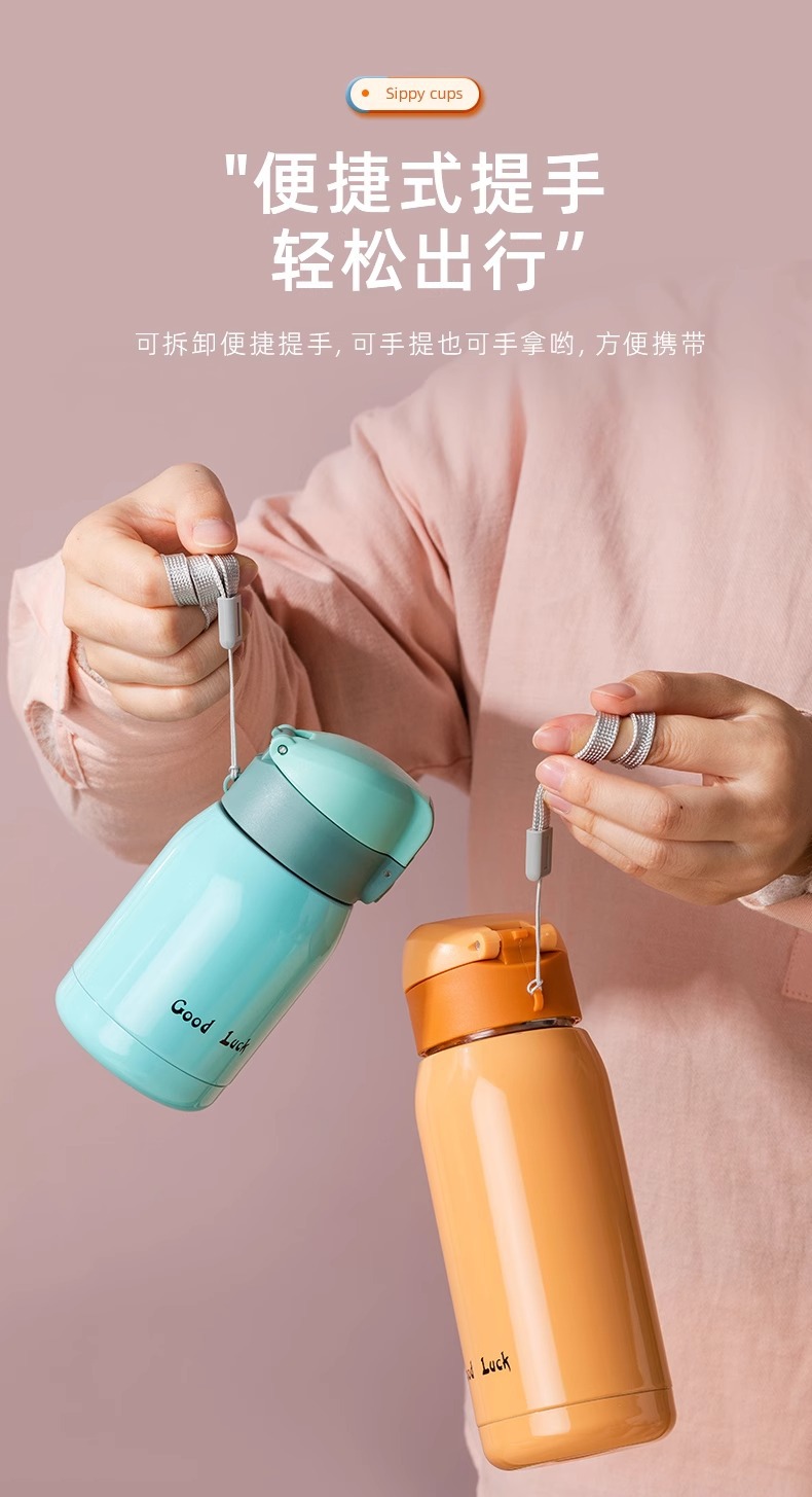 伴手礼保温杯带提绳弹跳杯学生情侣儿童水杯304不锈钢真空口袋杯