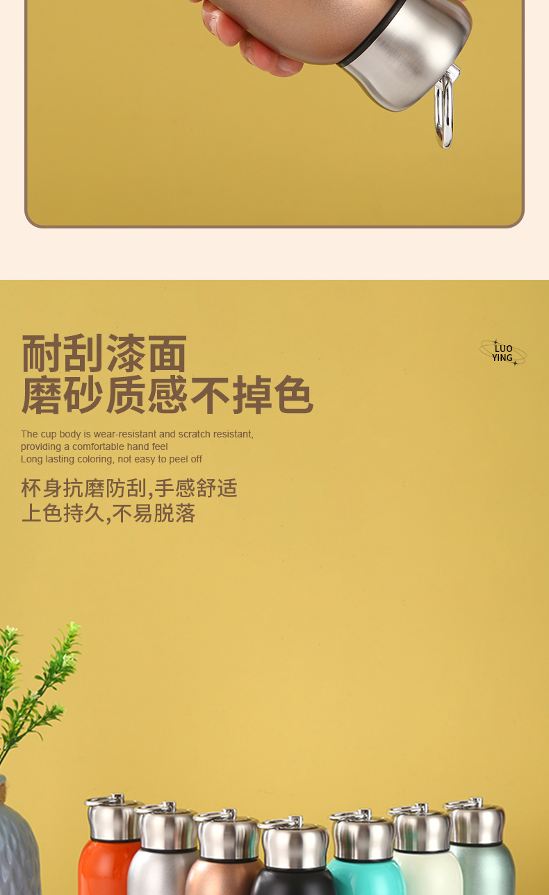 304不锈钢迷你保温杯 户外便携提环小口瓶口袋杯礼品可定LOGO批发
