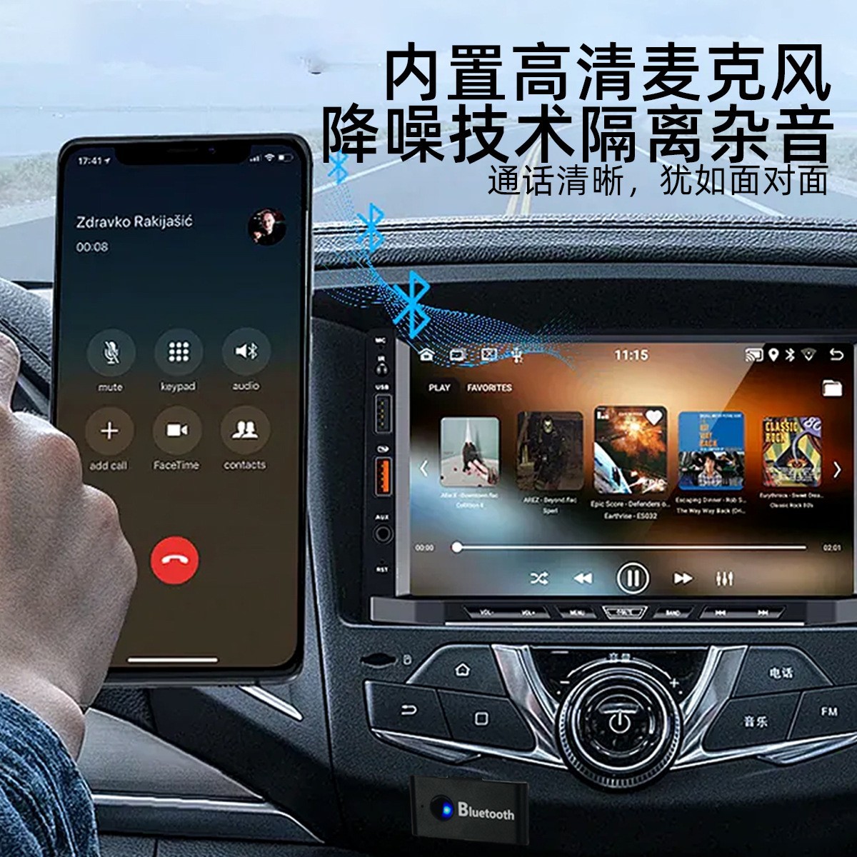 V5.3蓝牙发射器接收器二合一内置麦克风来电免提汽车音箱电脑通用