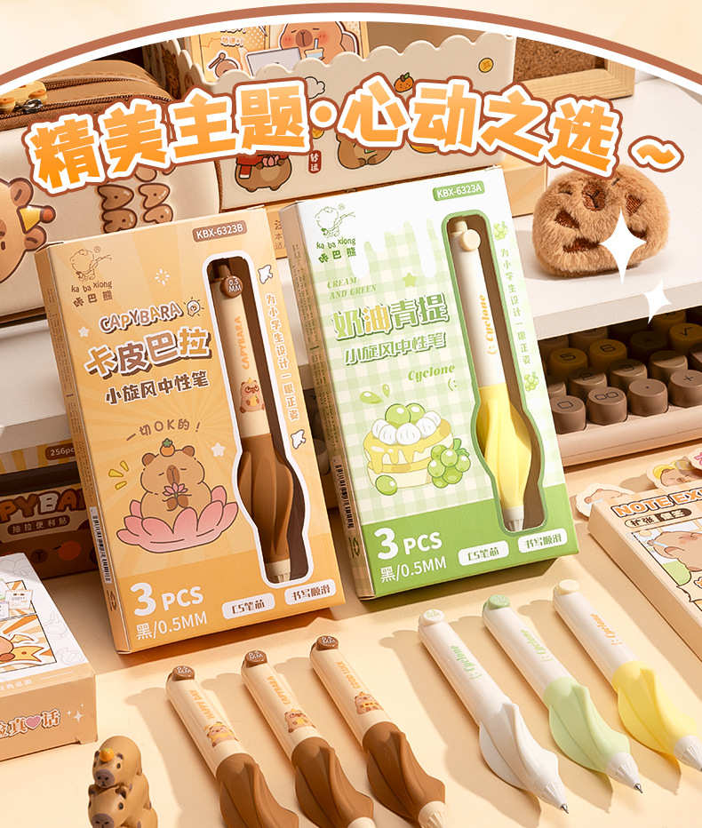 咔巴熊创意小旋风按动中性笔新款小学生正姿刷题笔速干作业考试笔