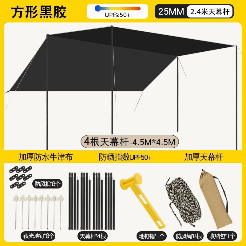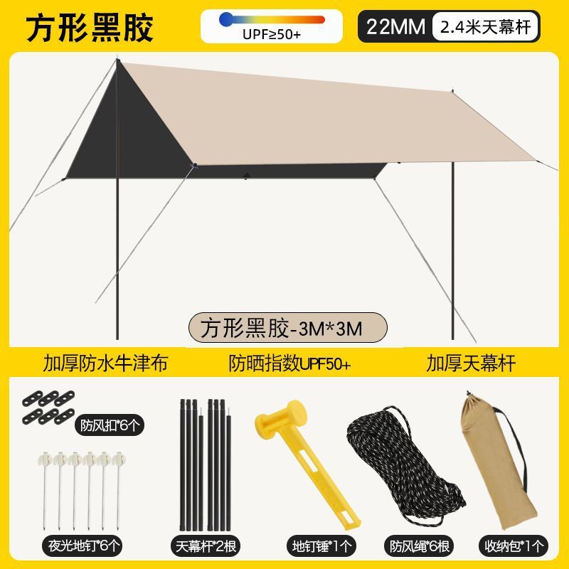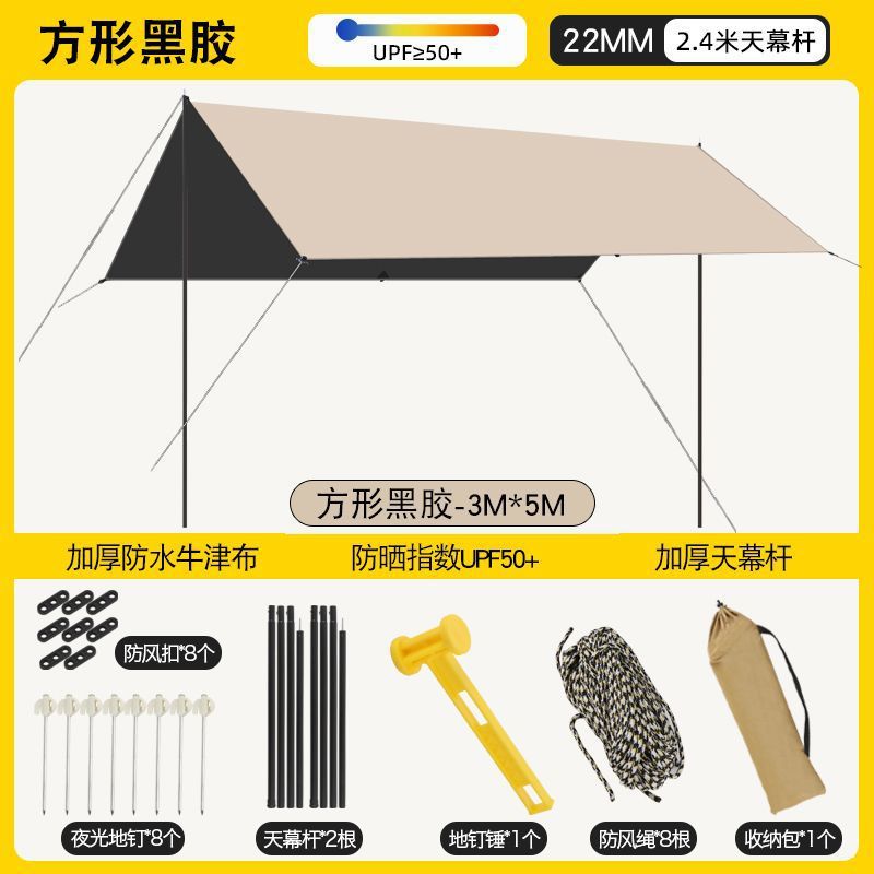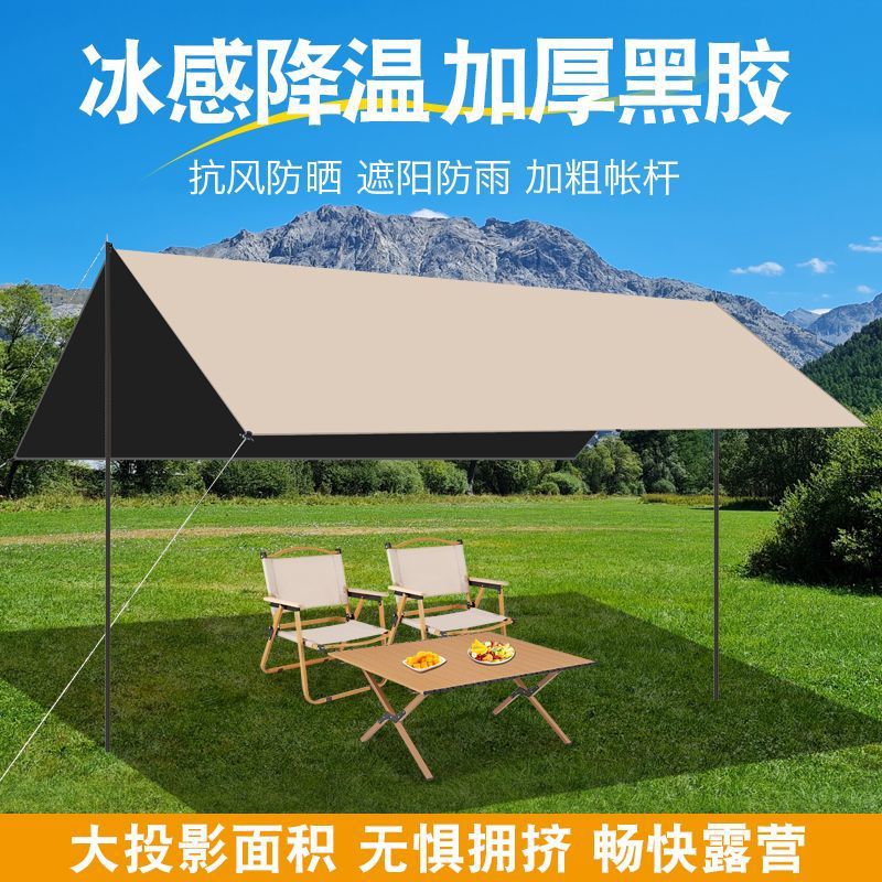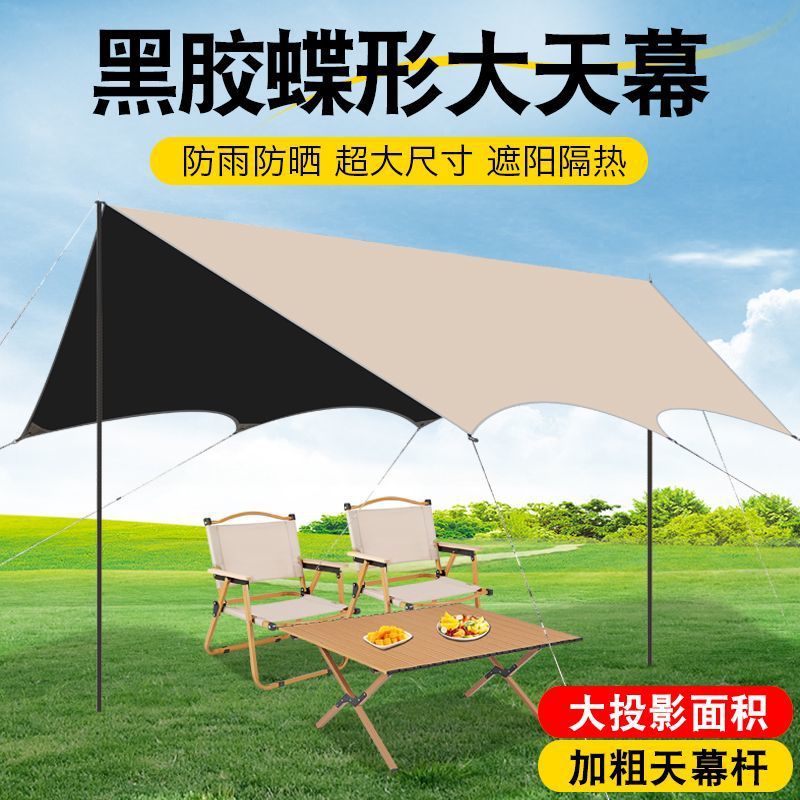 加厚黑胶天幕防水帐篷户外防雨防晒野营便携式露营八角蝶形遮阳棚