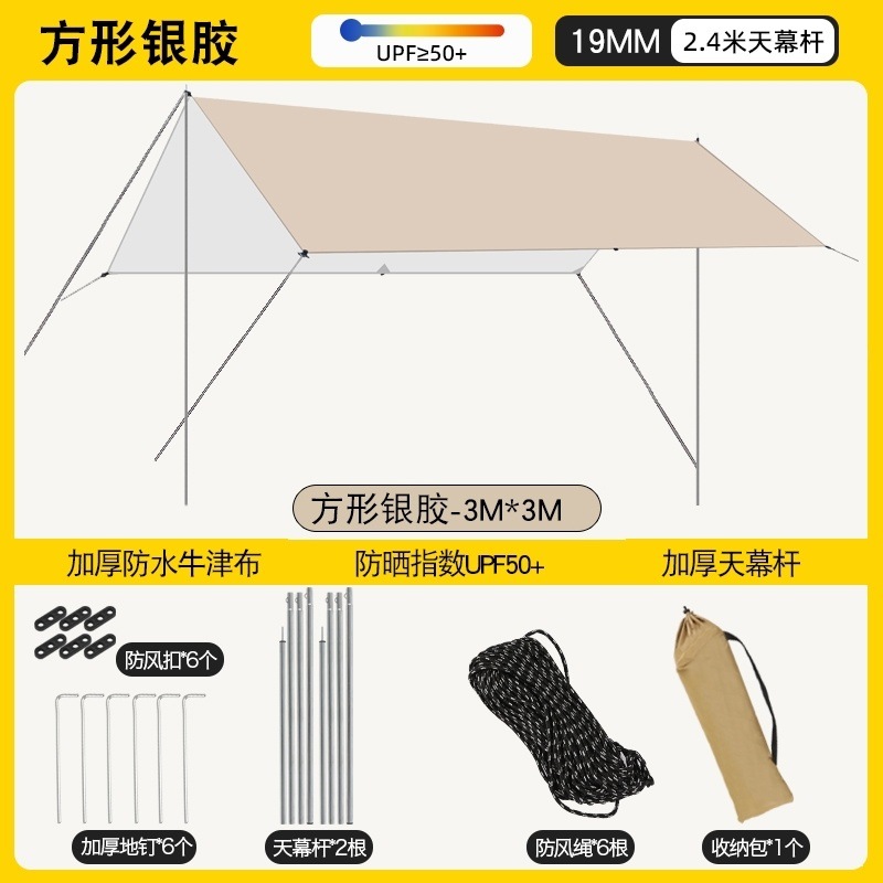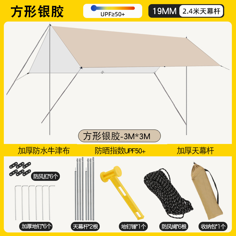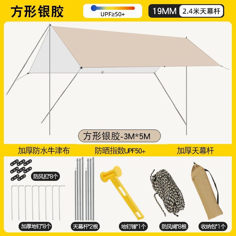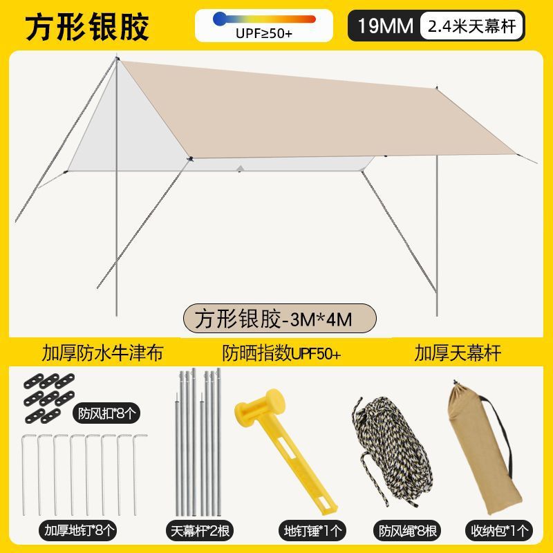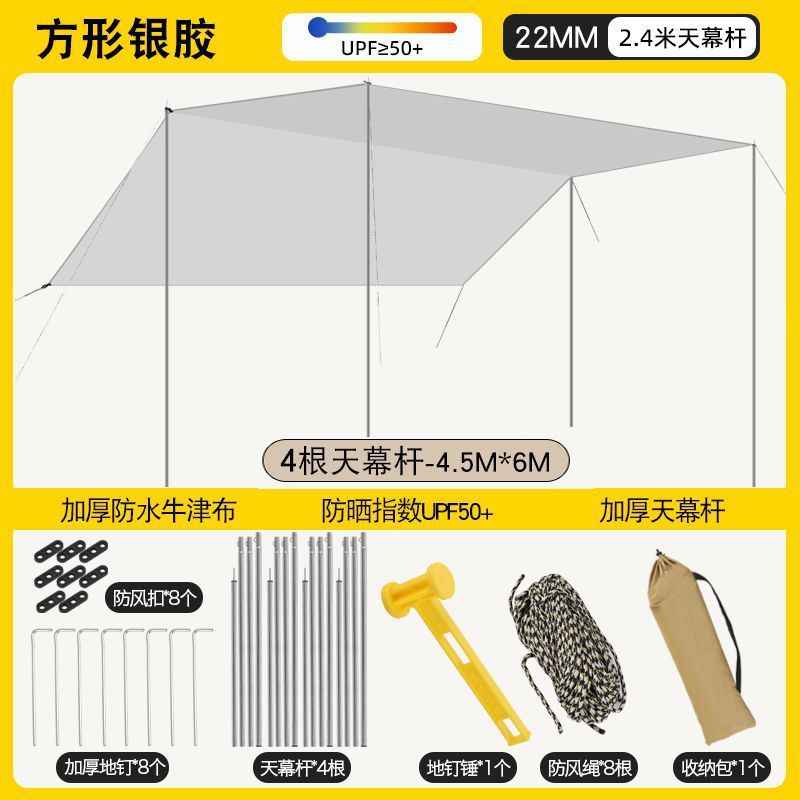 加厚黑胶天幕防水帐篷户外防雨防晒野营便携式露营八角蝶形遮阳棚