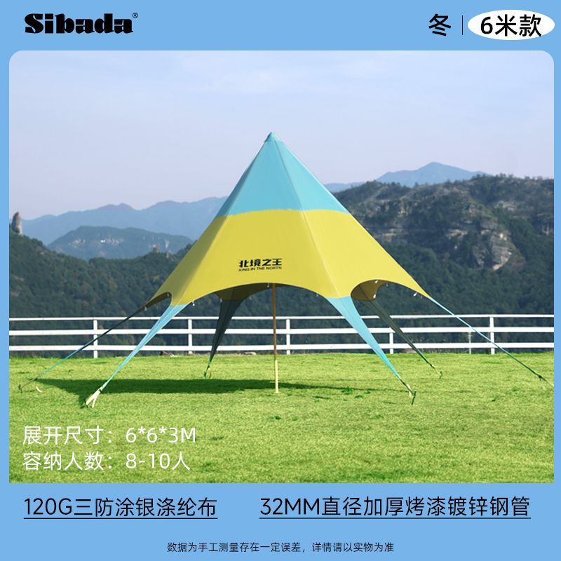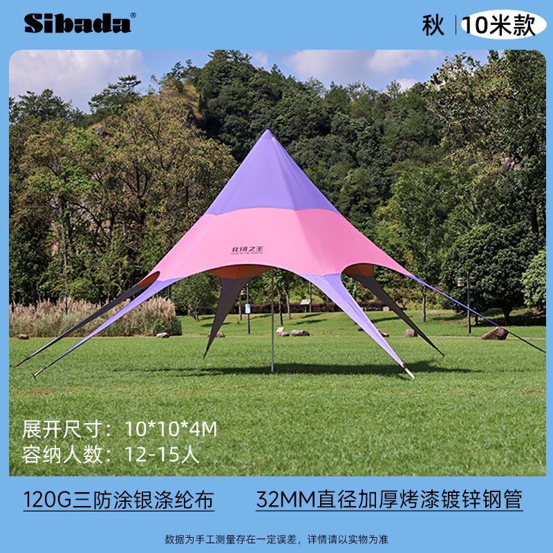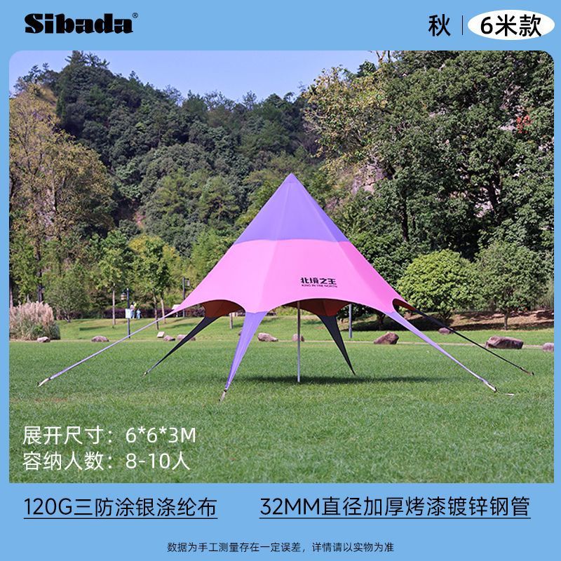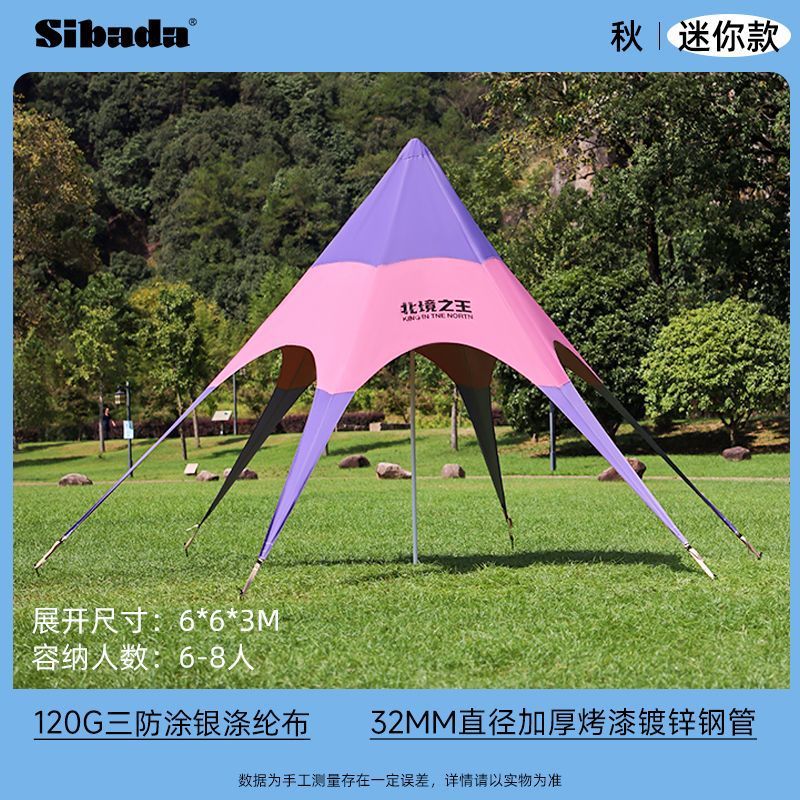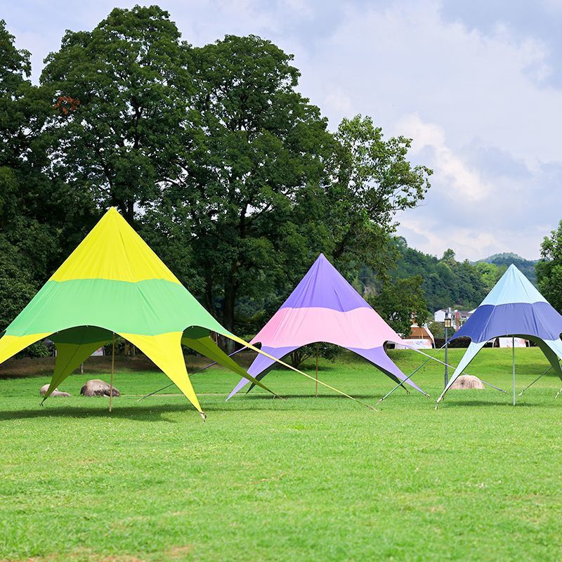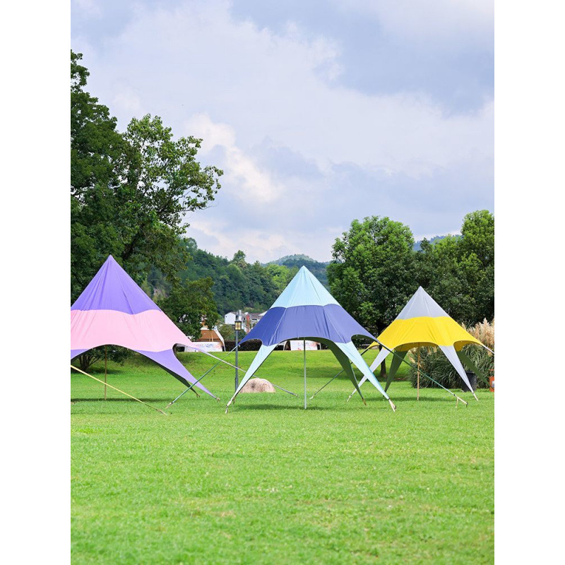 户外天幕六角彩虹帐篷网红遮阳棚营地秋游防晒单峰室外三角星星棚