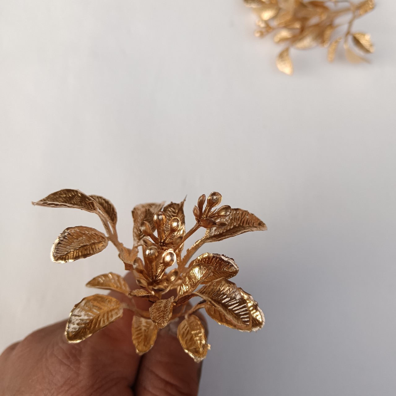 总长7.6厘米金色塑料仿真花 合金电镀配件 展示支架家居装饰摆件