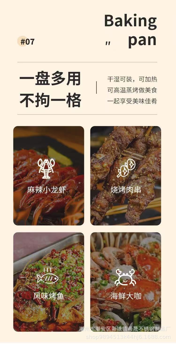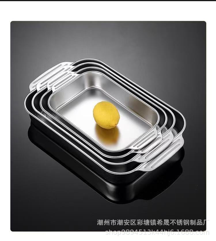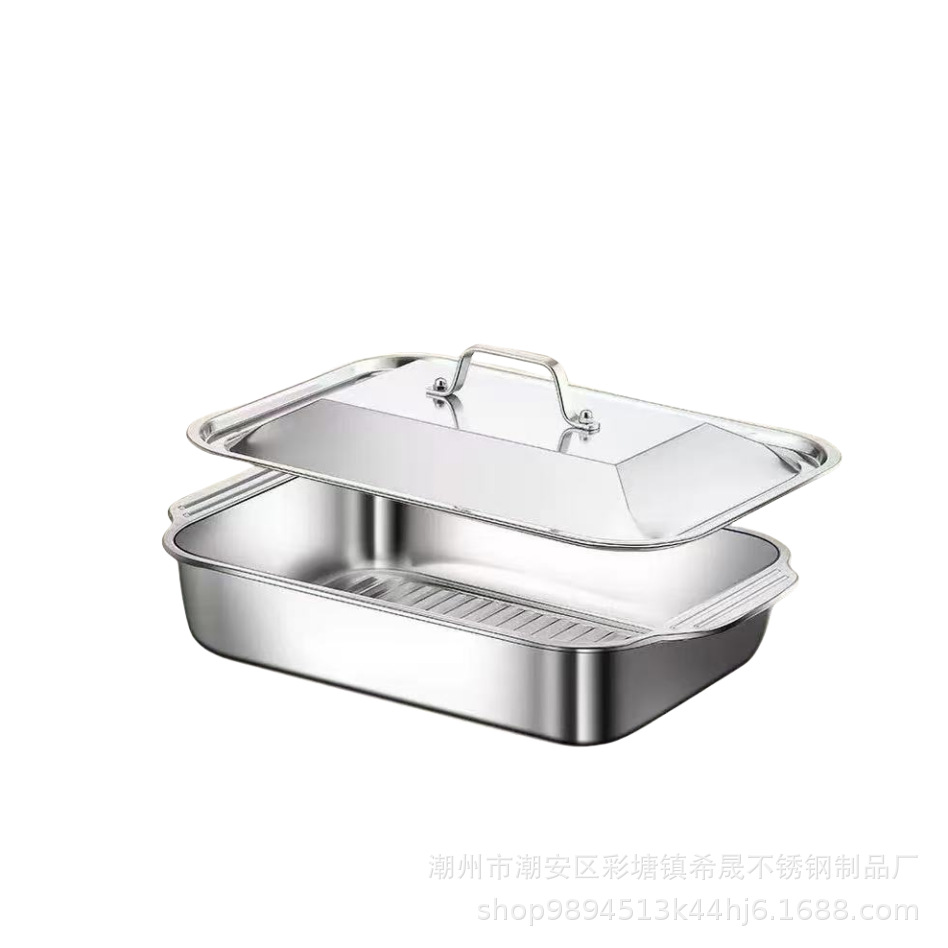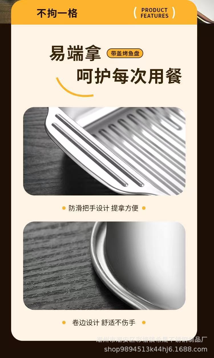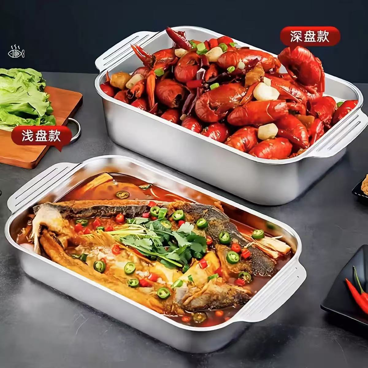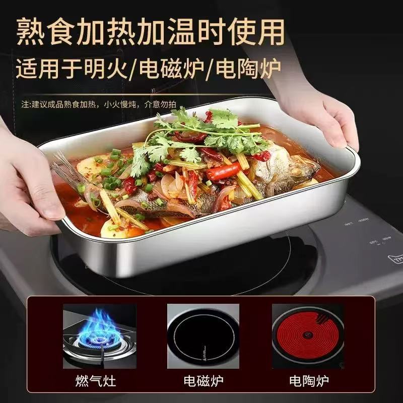 Temu跨境热销不锈钢烤鱼盘烘焙烤盘家用海鲜盘小龙虾盘带盖烤鱼盘