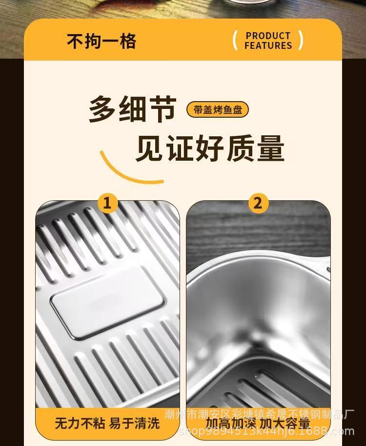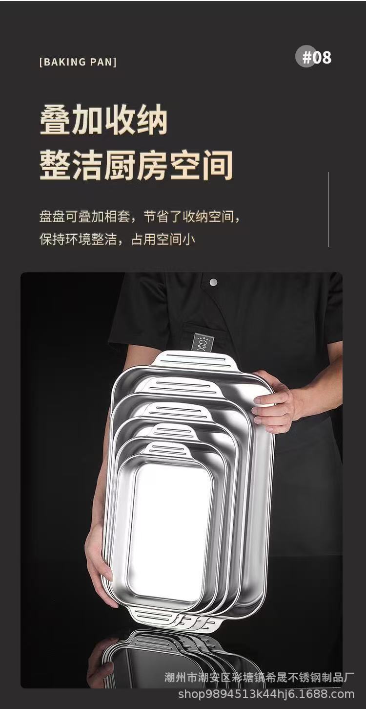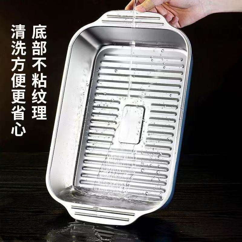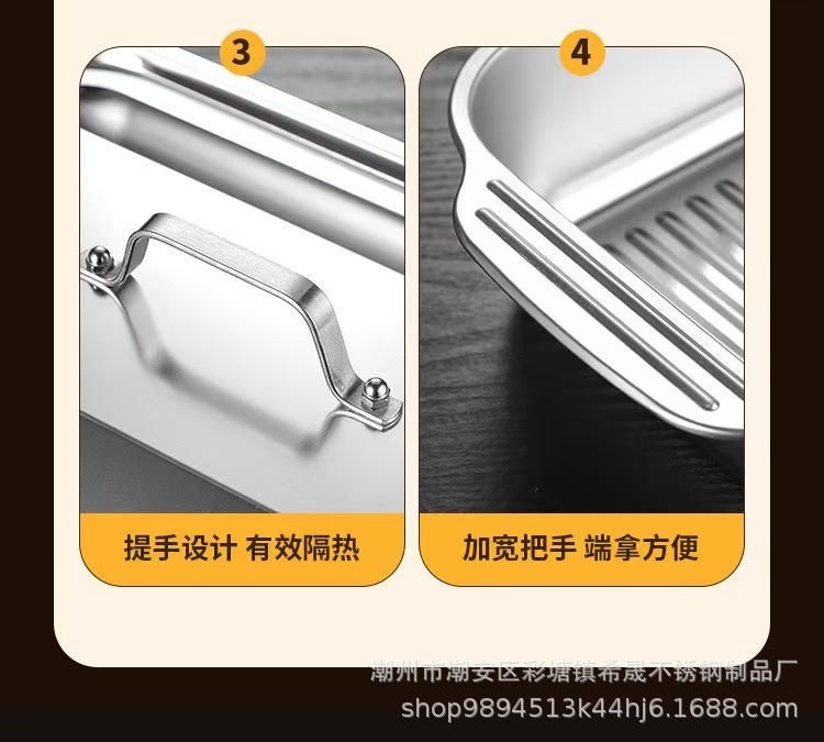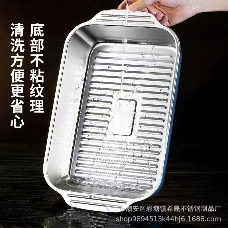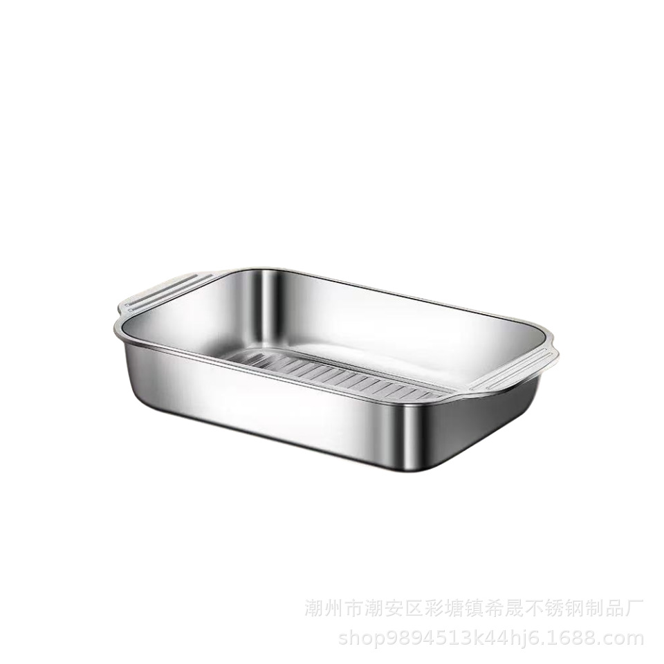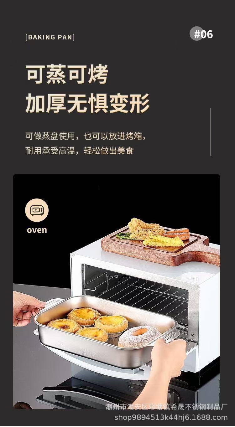 Temu跨境热销不锈钢烤鱼盘烘焙烤盘家用海鲜盘小龙虾盘带盖烤鱼盘