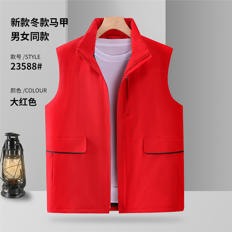 广告活动羽绒棉马甲冬季工作服宽松加绒背心加厚款团队印图印logo