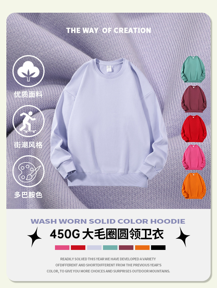 跨境重磅450G毛圈棉圆领卫衣男女款纯色上衣街头美式潮牌时尚卫衣
