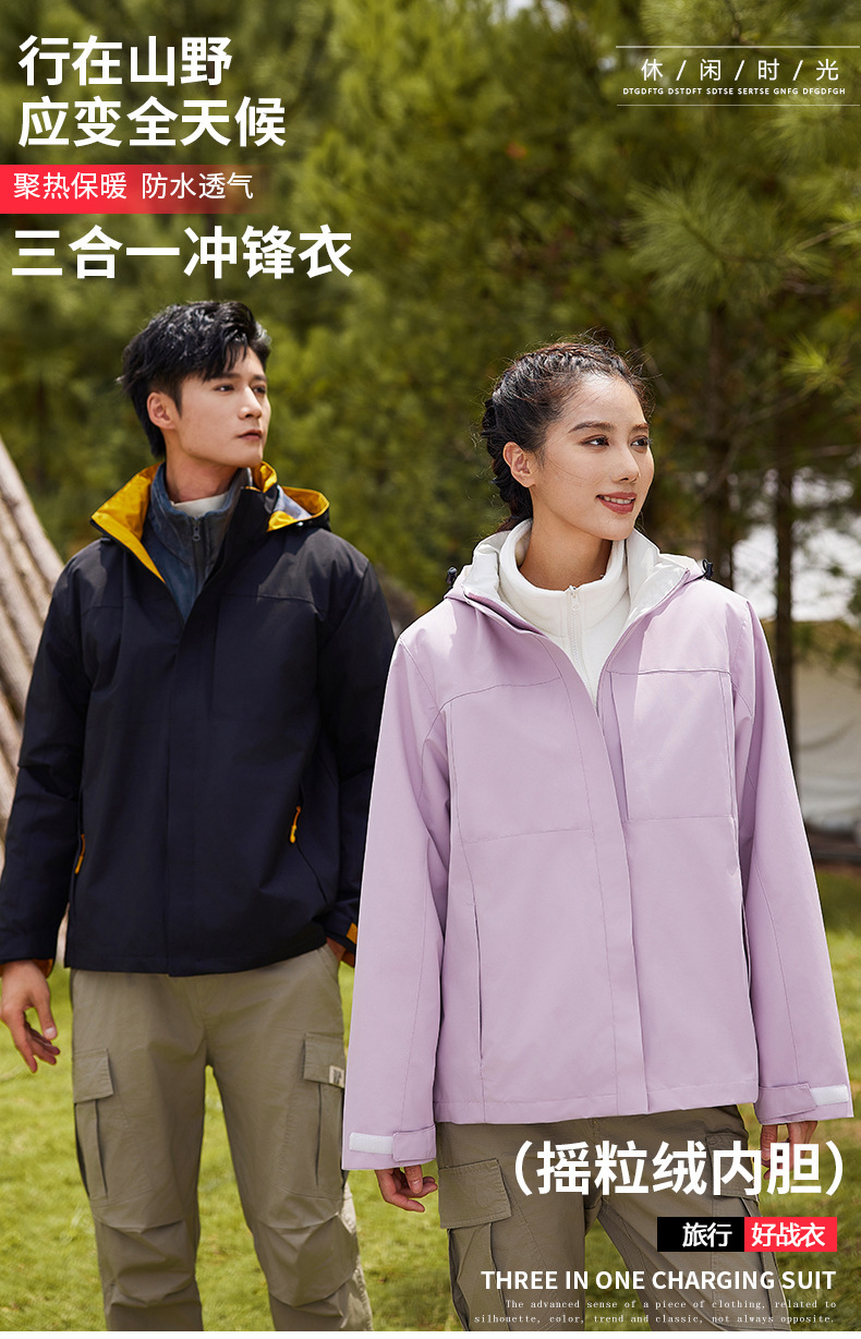 秋冬情侣冲锋衣可拆卸三合一户外登山防水保暖防风外套上衣印logo