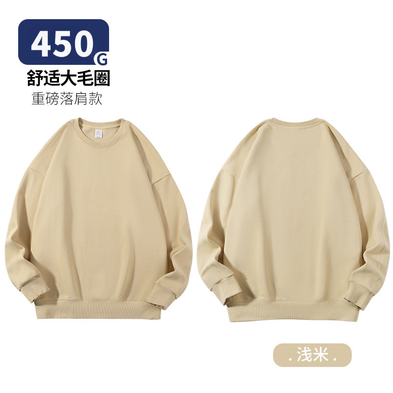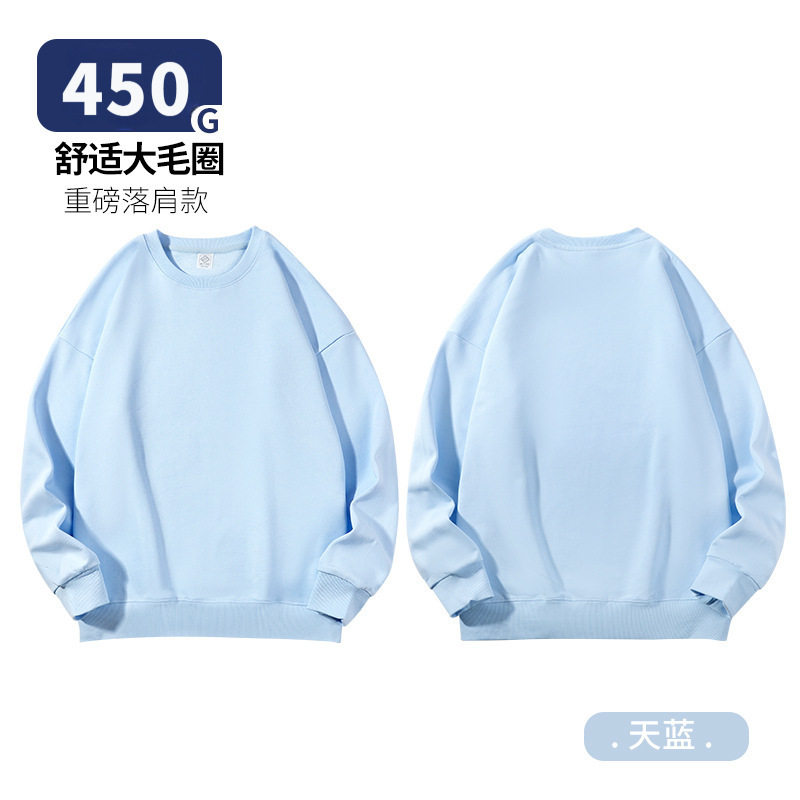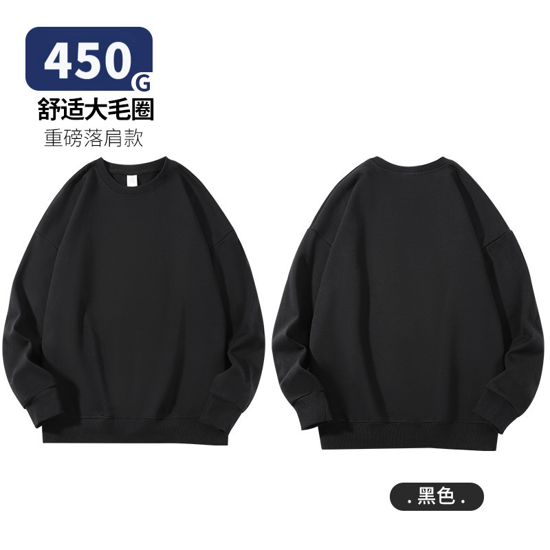春秋款纯色圆领毛圈卫衣男女印字logo工作服班服长袖套头卫衣批发