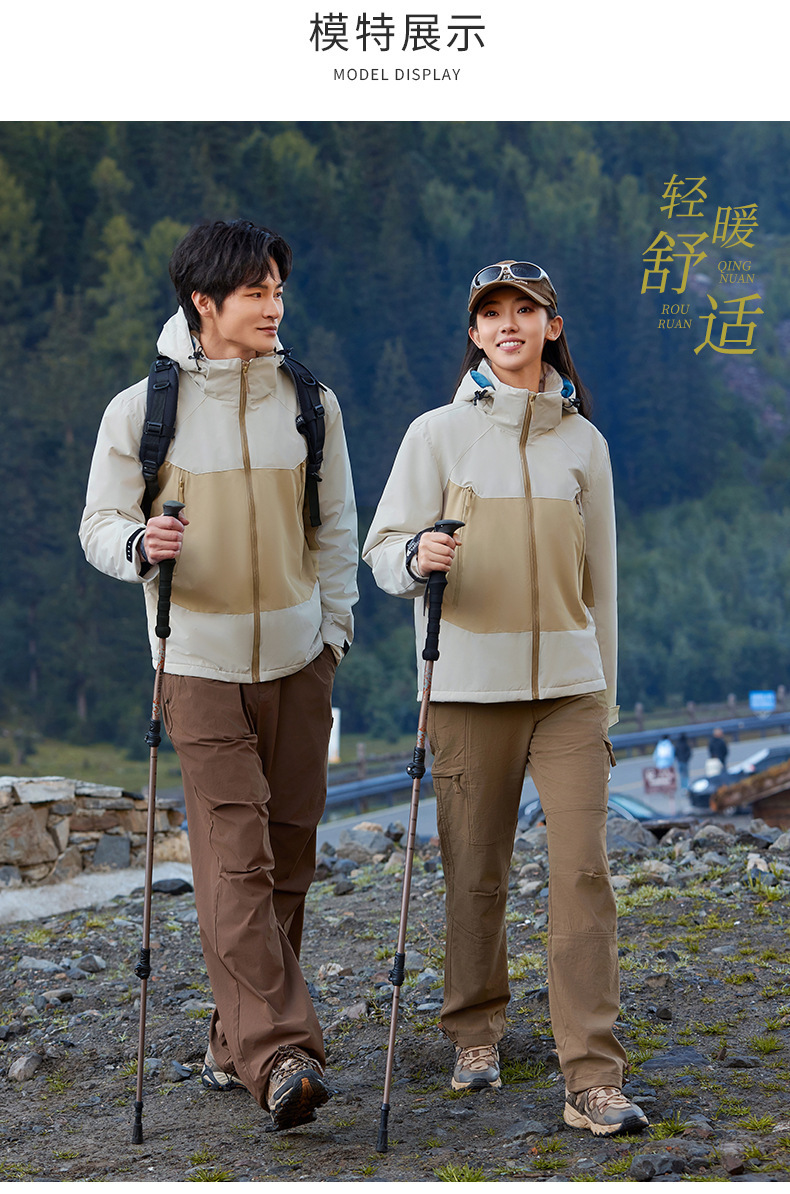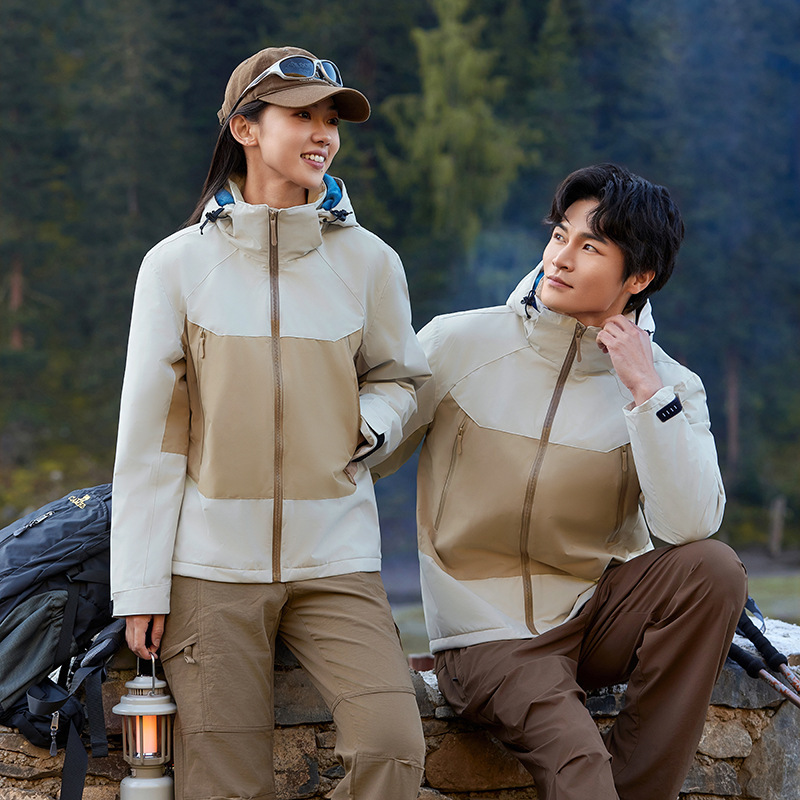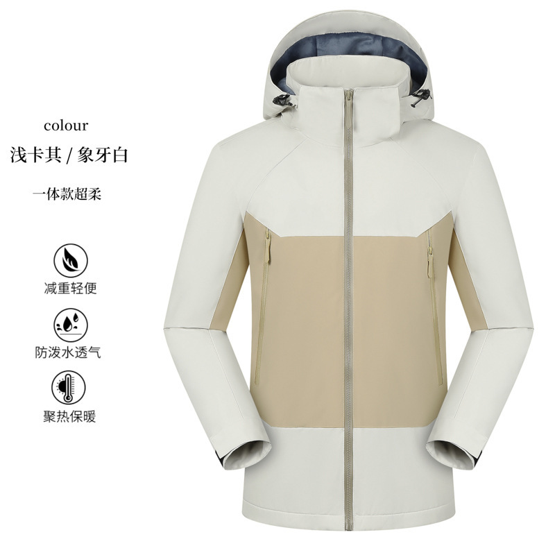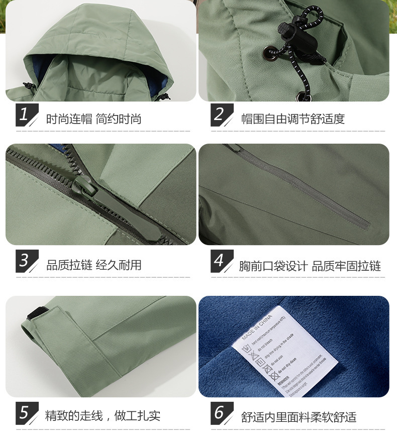跨境鸟家同款一体款秋冬季连帽防风防水软壳冲锋衣户外登山服外套