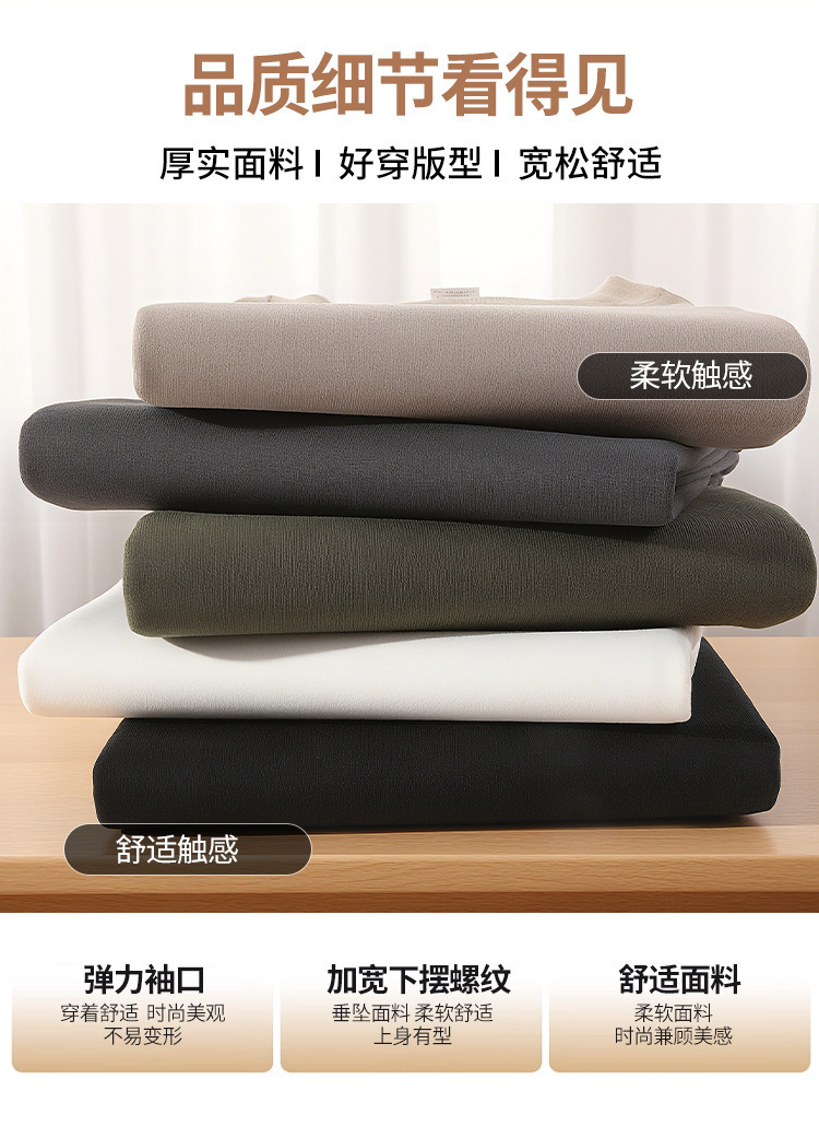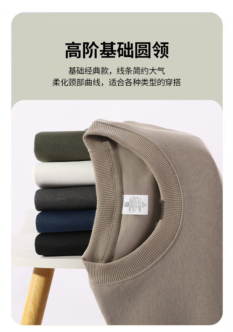 重磅男卫衣现货批发迪桑棉纯色圆领宽松卫衣螺纹袖口卫衣