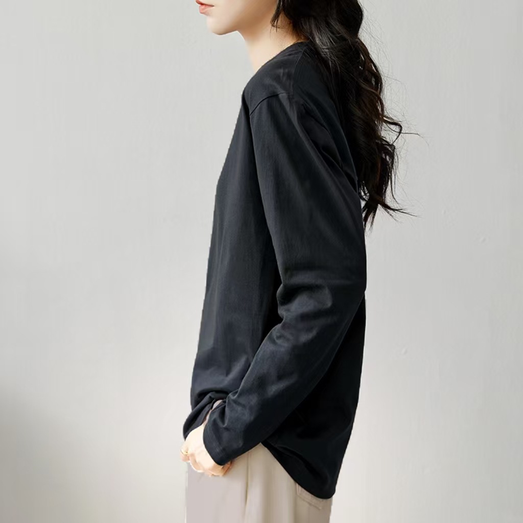 2025新款秋冬新疆长绒棉圆领男女长袖t恤情侣打底衫百搭潮流上衣