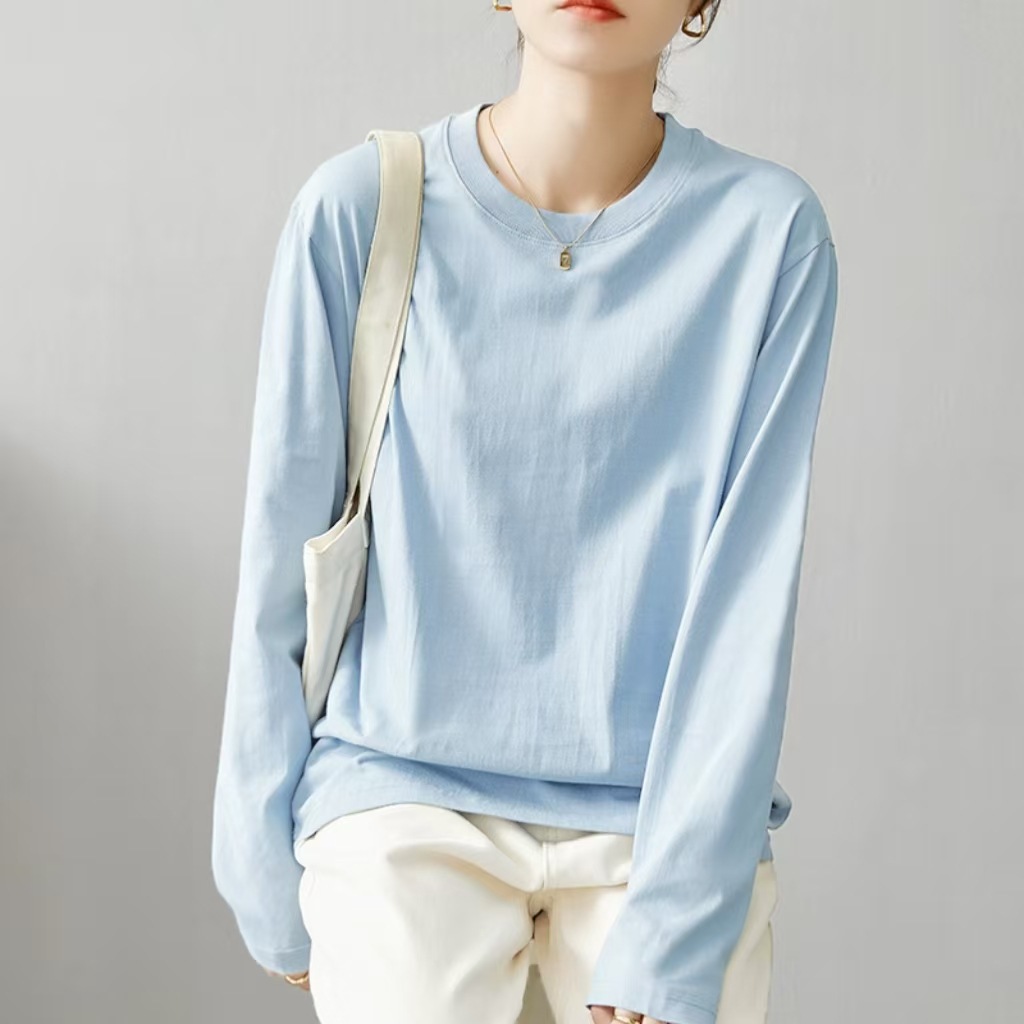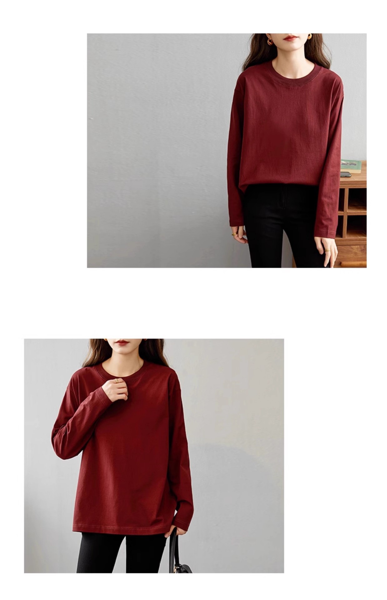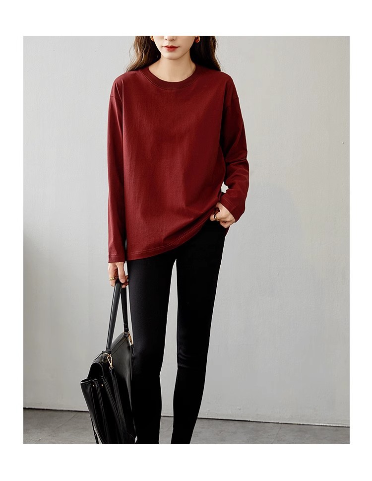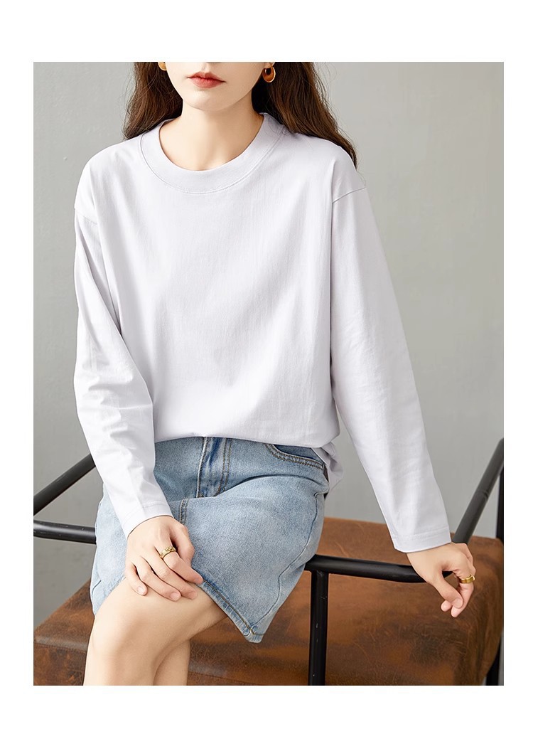 重磅纯棉圆领长袖t恤女宽松显瘦白色内搭打底衫春秋冬季ins上衣潮