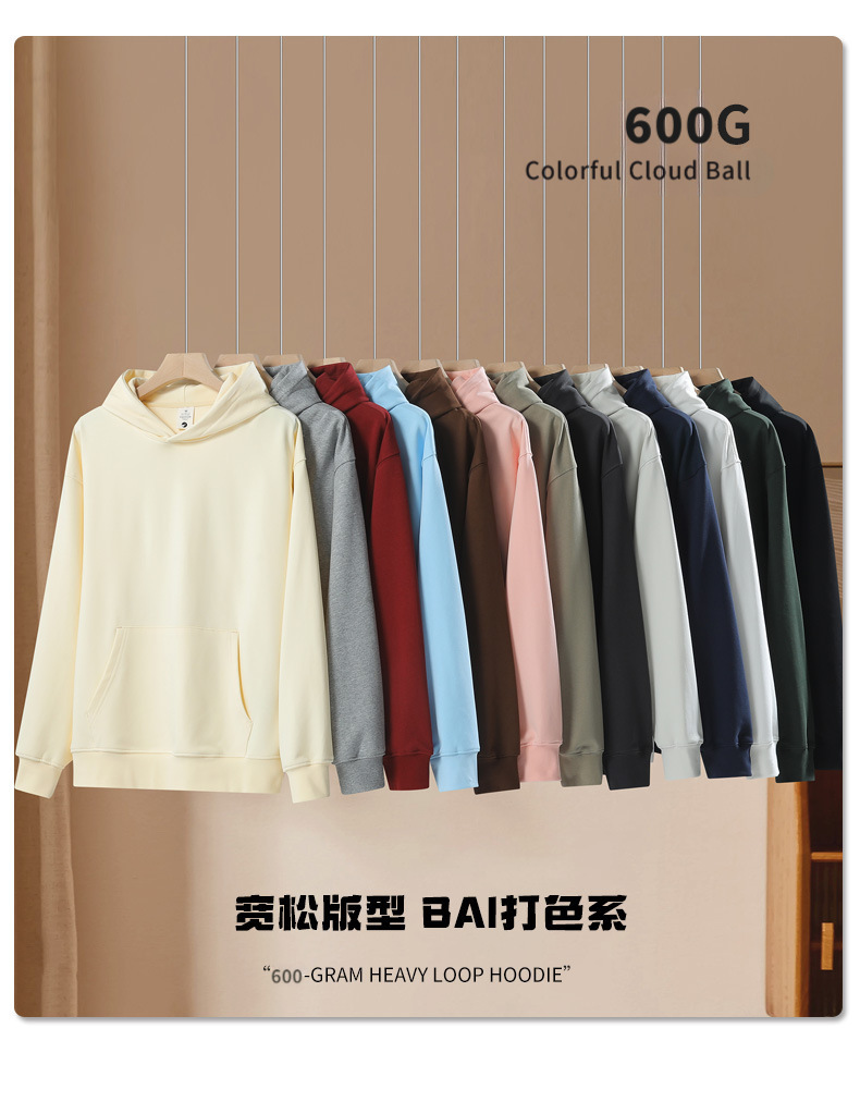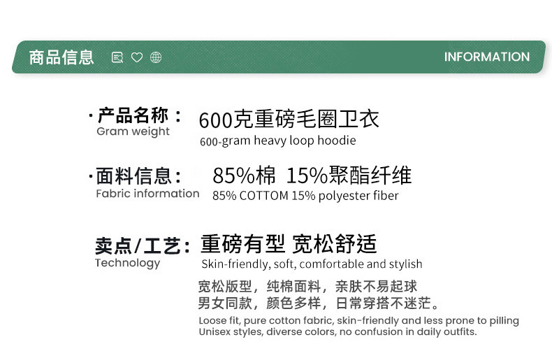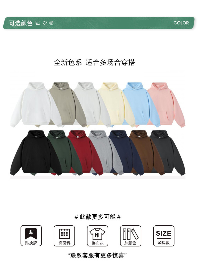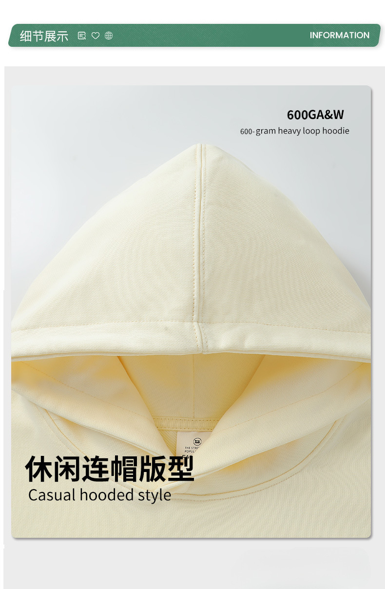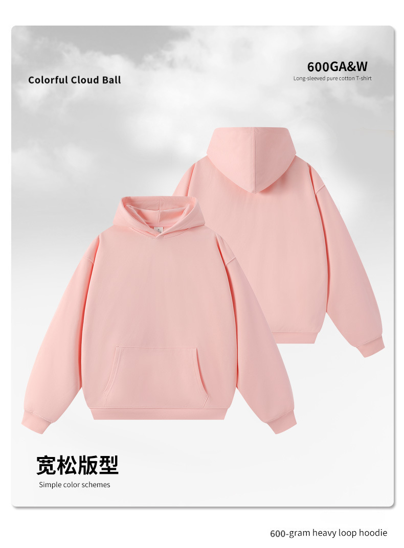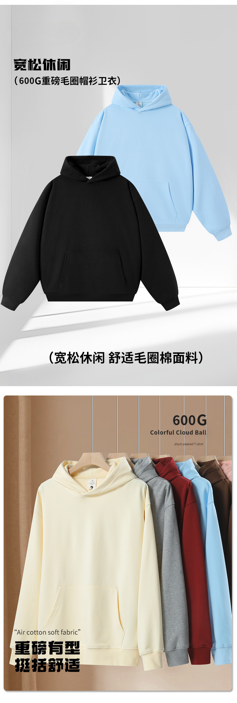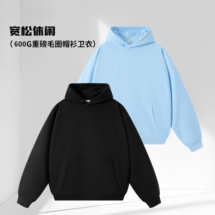 600克重磅连帽衫纯色秋冬卫衣欧美风男女同款宽松毛圈卫衣大版