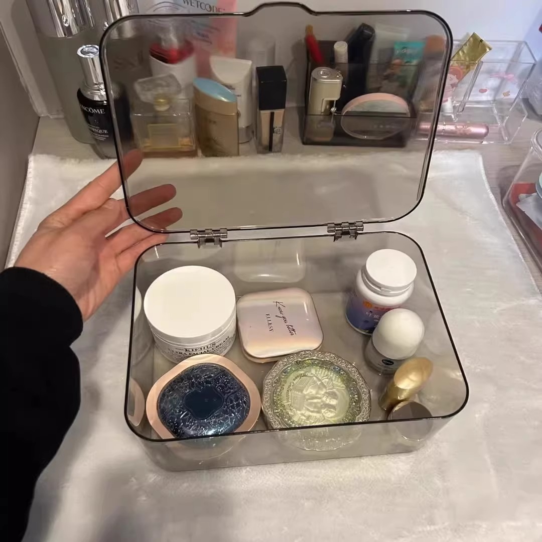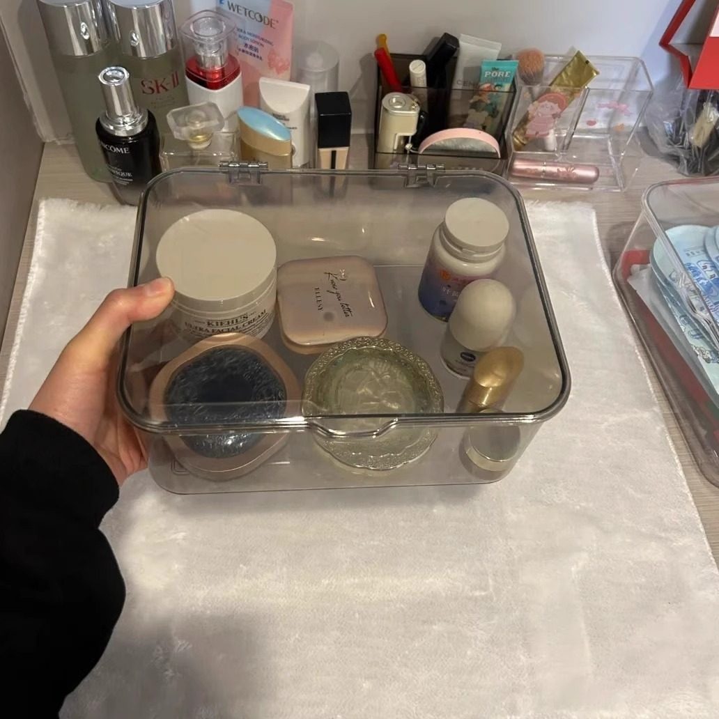 透明翻盖式收纳盒大号亚克力桌面防尘整理盒客厅茶几零食带盖收纳