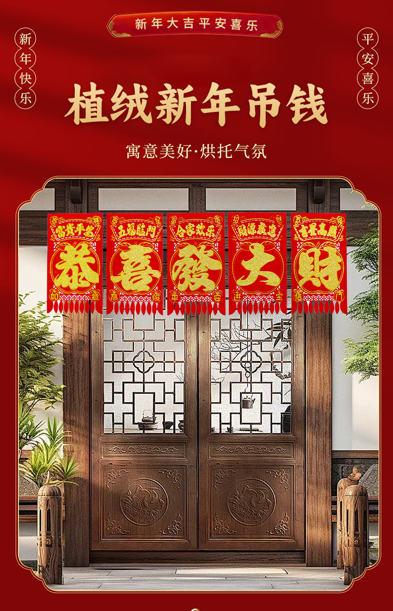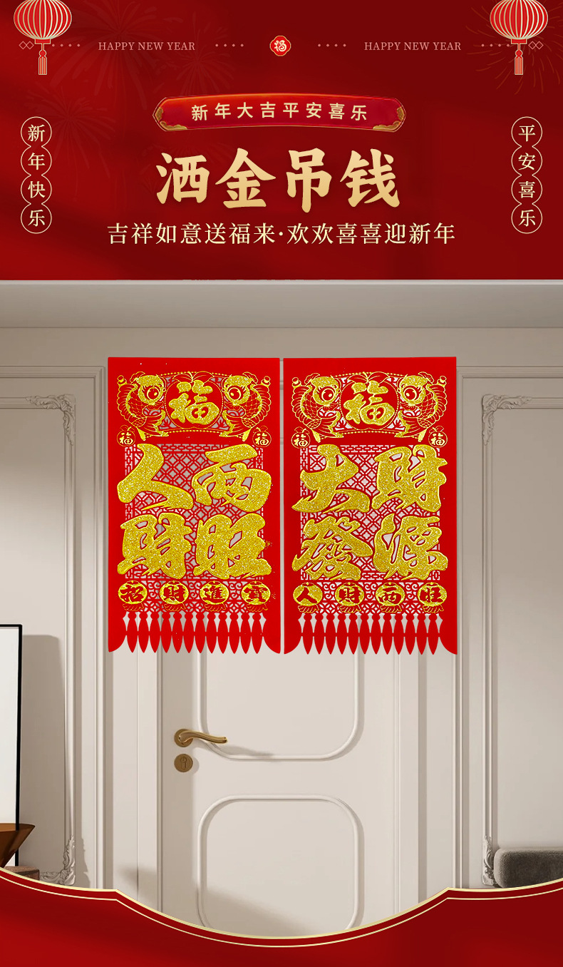 2026马新年植绒布洒金粉烫金吊钱挂钱掉钱春节过年挂钱过门钱多款
