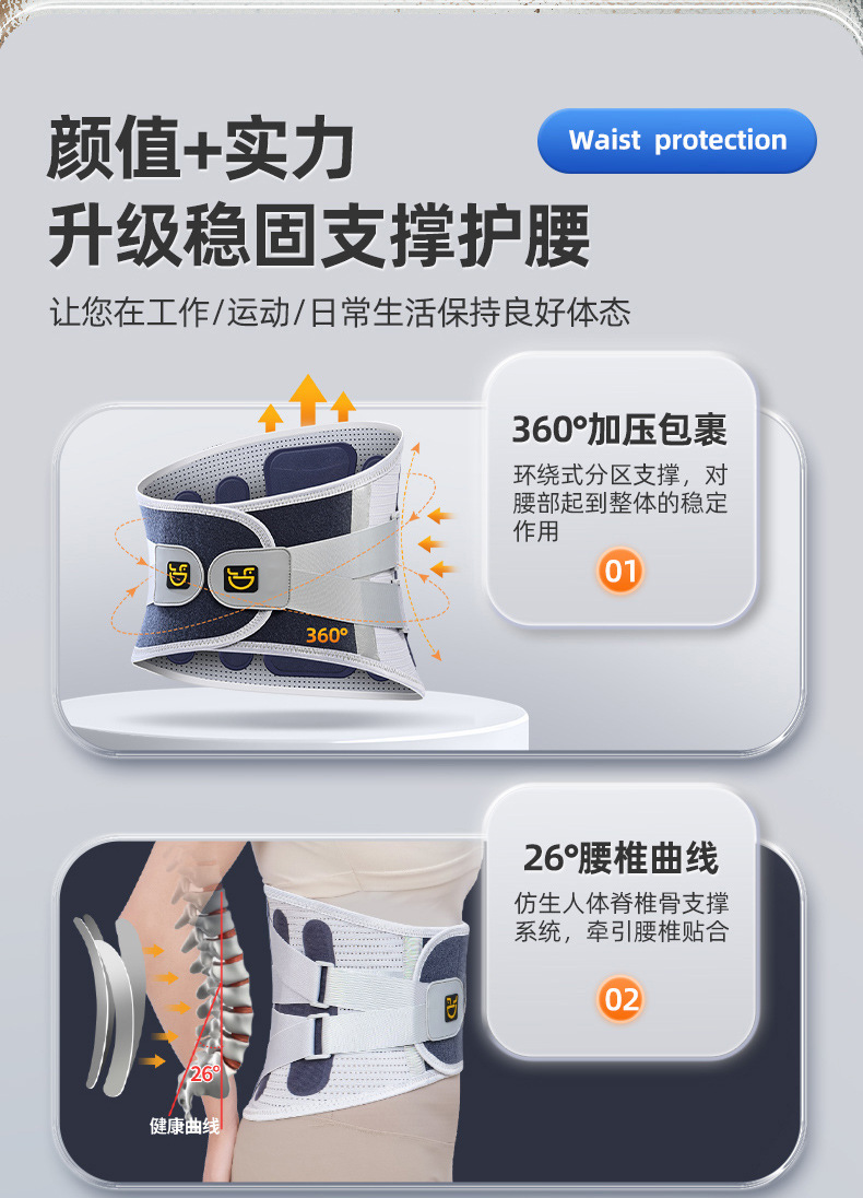 工厂新款透气护腰带钢板支撑腰椎间盘劳损突出腰间保暖收腹护腰带