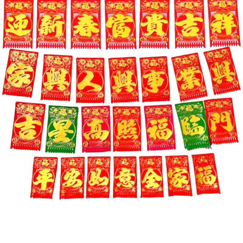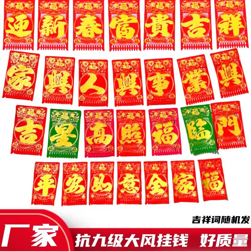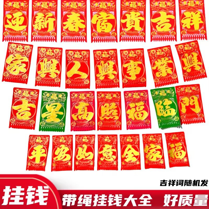 带绳吊钱新款三色拉旗五字七字九字植绒吊钱挂笺五福烫金洒金防水