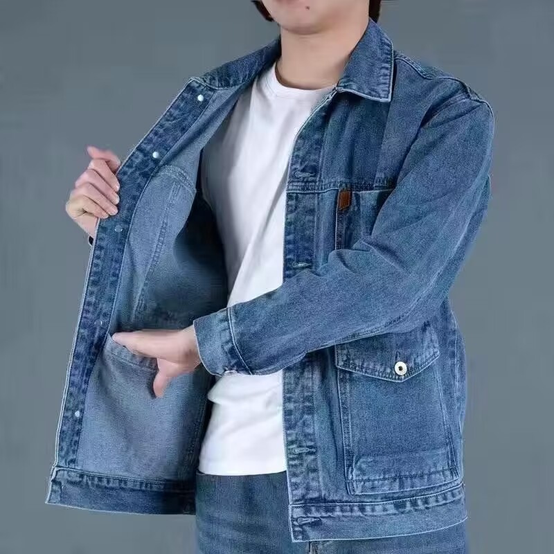 干活穿的牛仔外套秋冬季加绒加厚耐磨多口袋工装宽松大码男装夹克