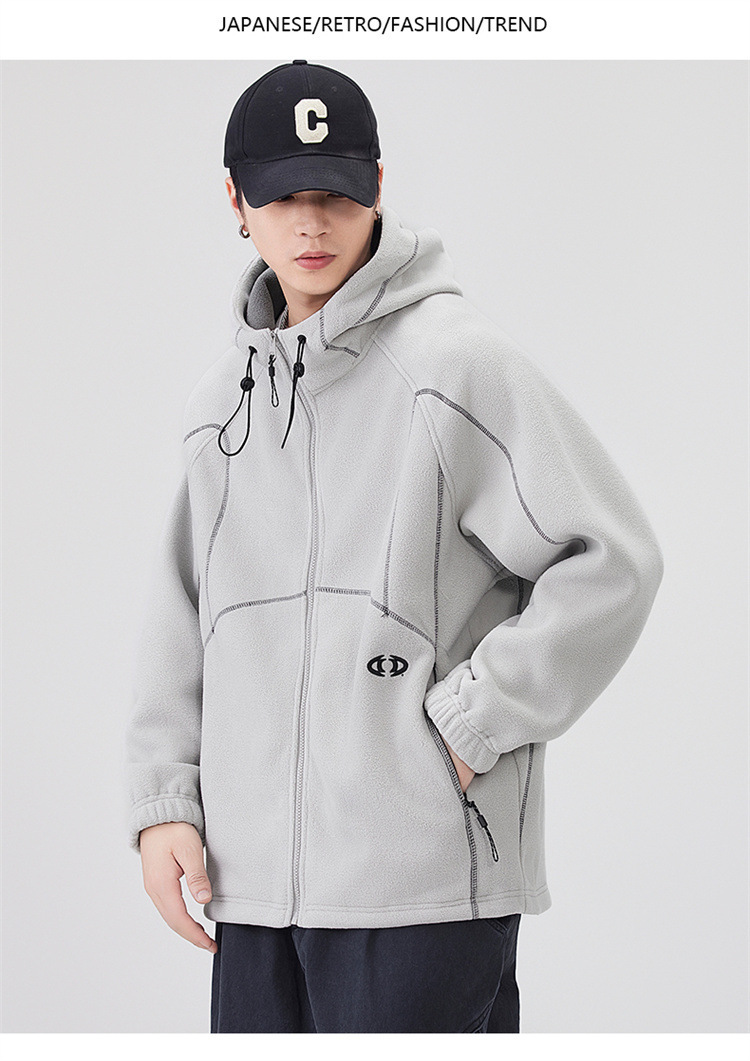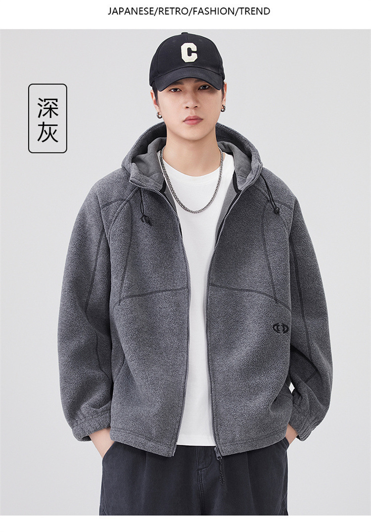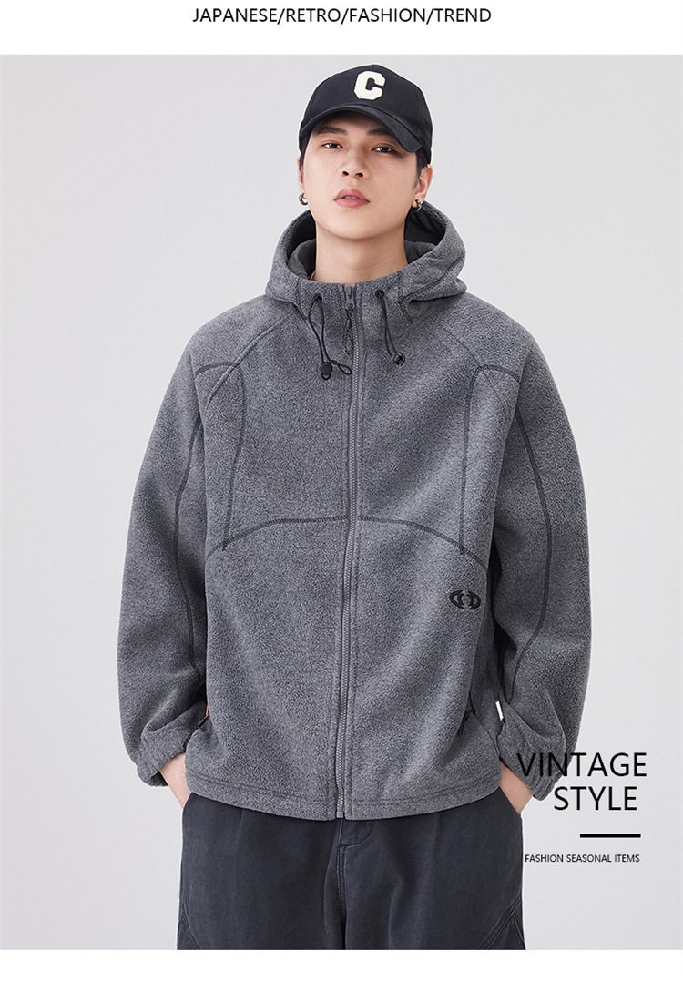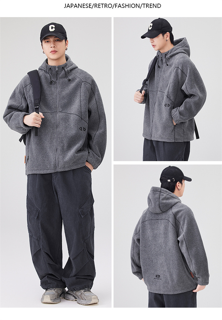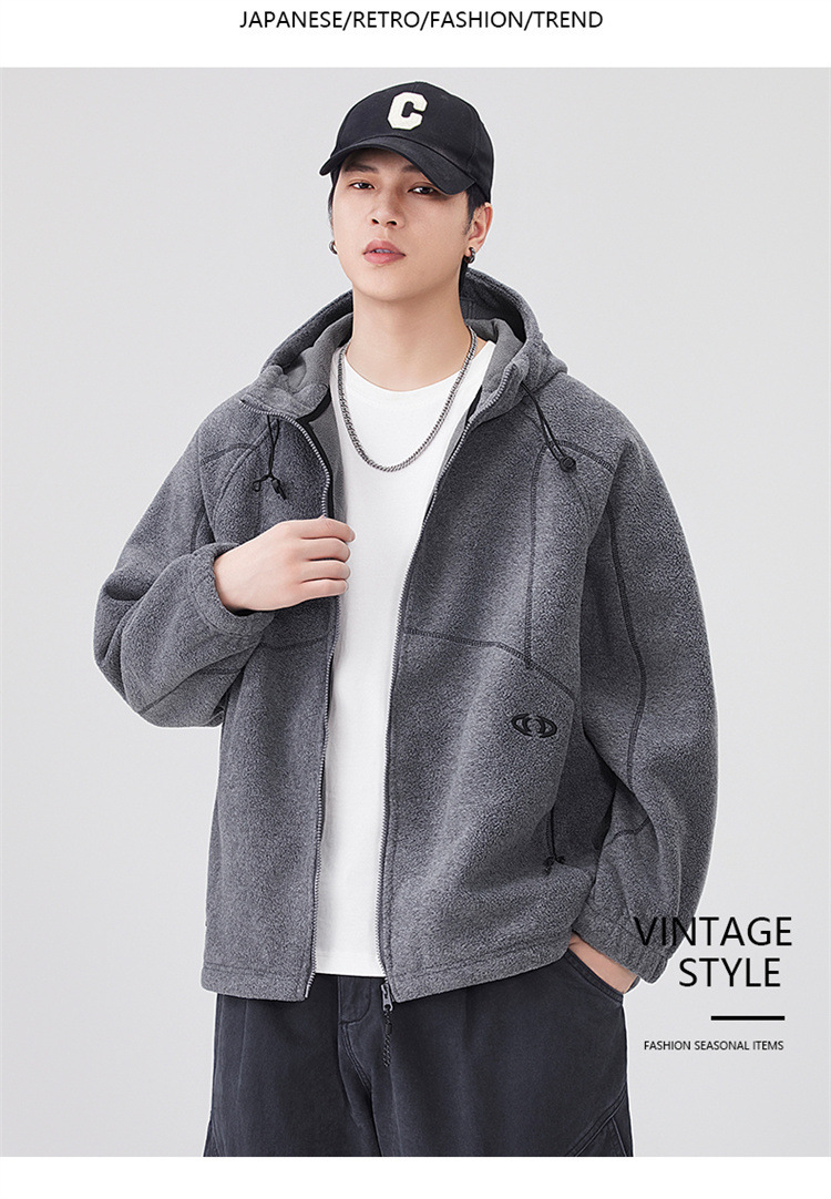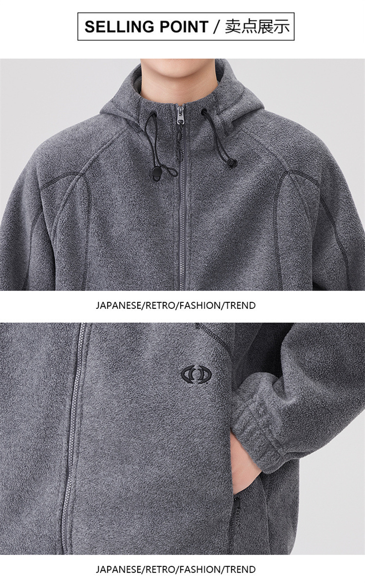 2025秋季新款摇粒绒连帽外套男宽松秋冬加绒保暖户外休闲外套上衣