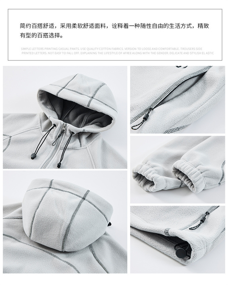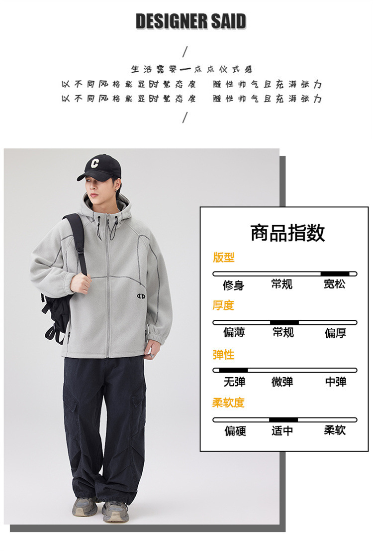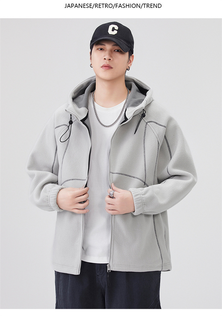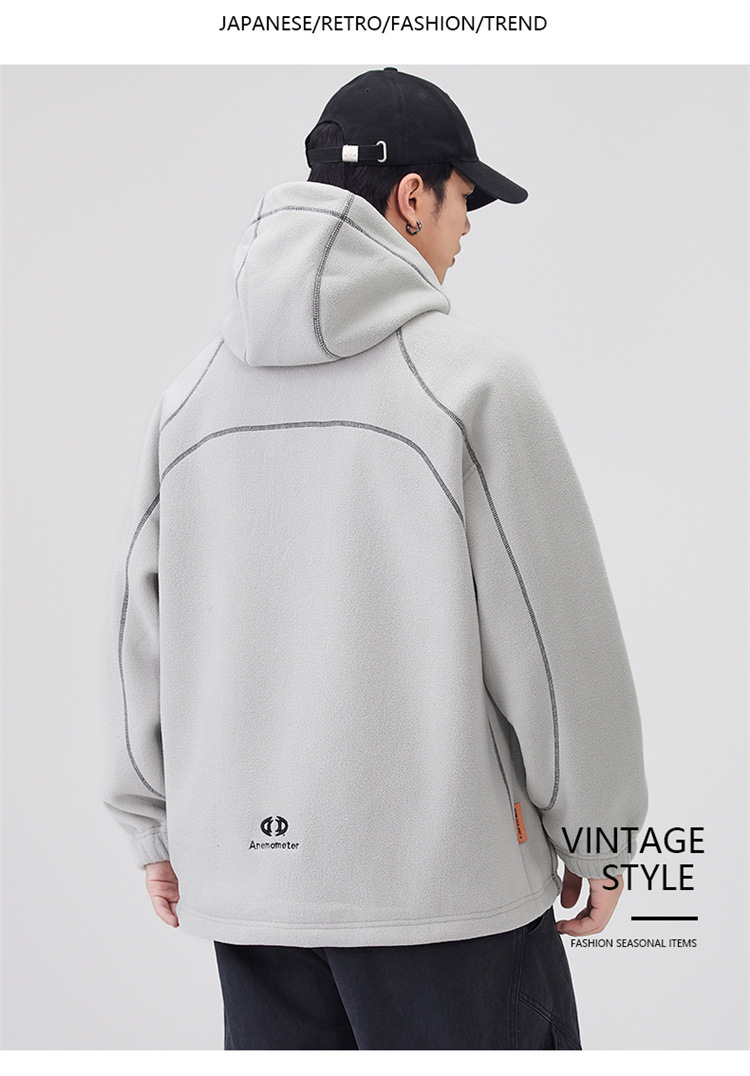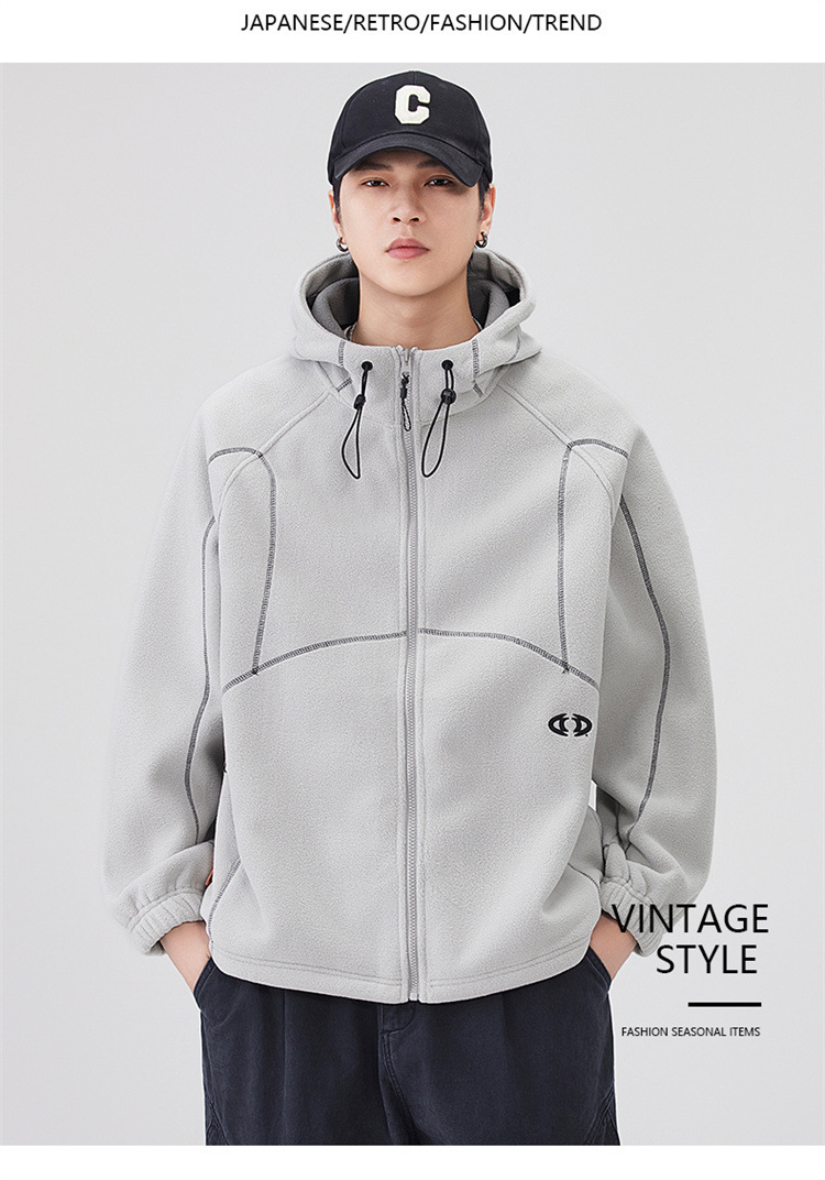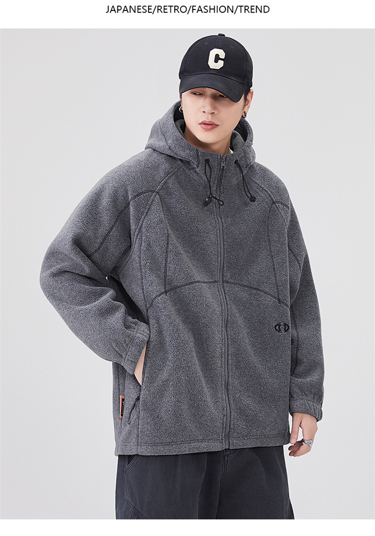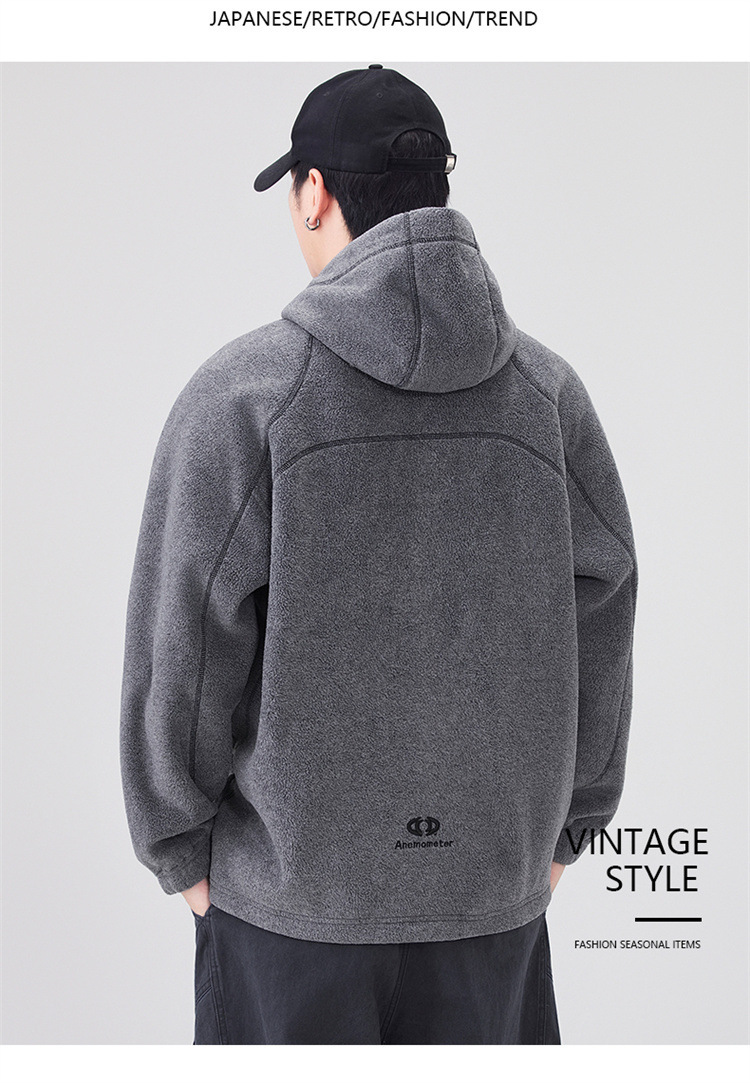 2025秋季新款摇粒绒连帽外套男宽松秋冬加绒保暖户外休闲外套上衣