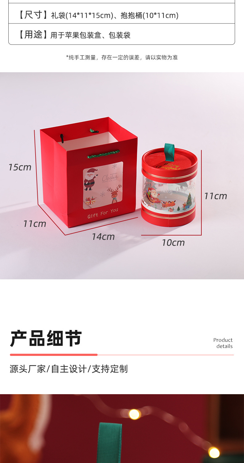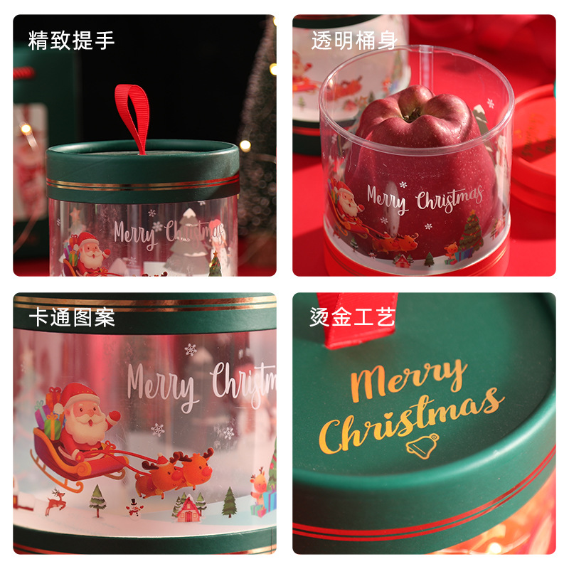 圣诞苹果盒透明平安果包装盒伴手礼抱抱桶平安夜苹果袋包装盒批发