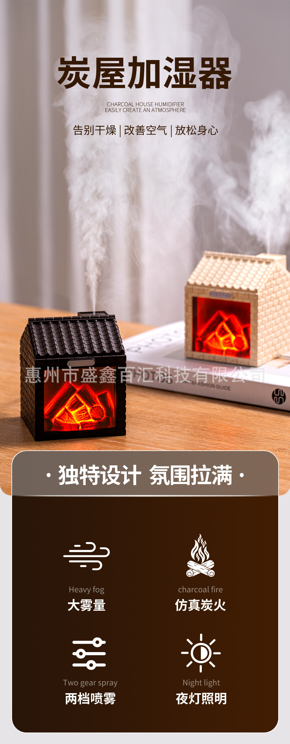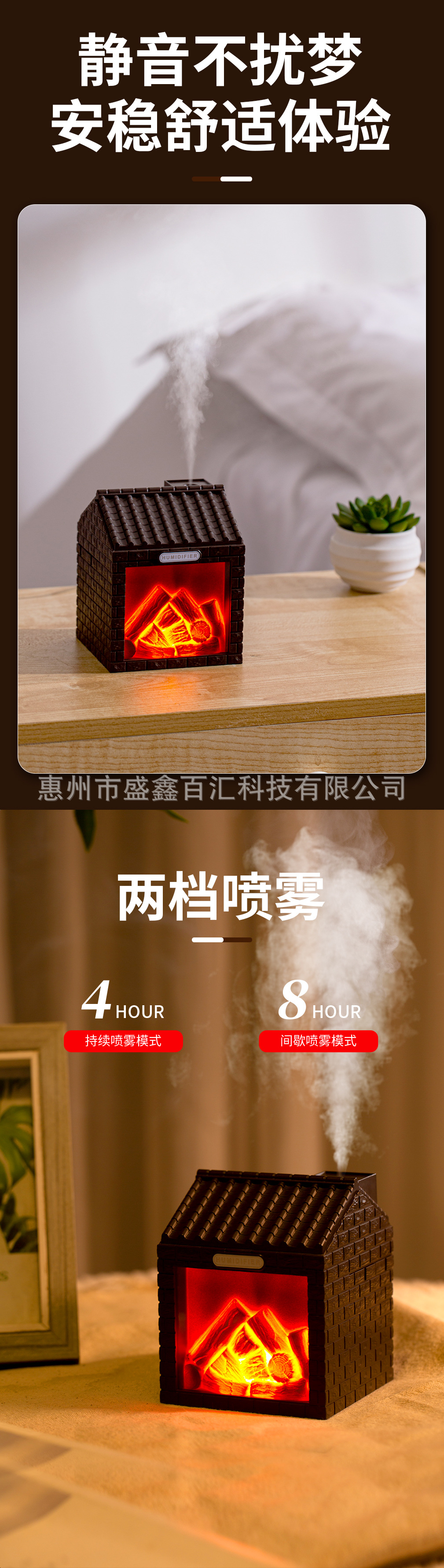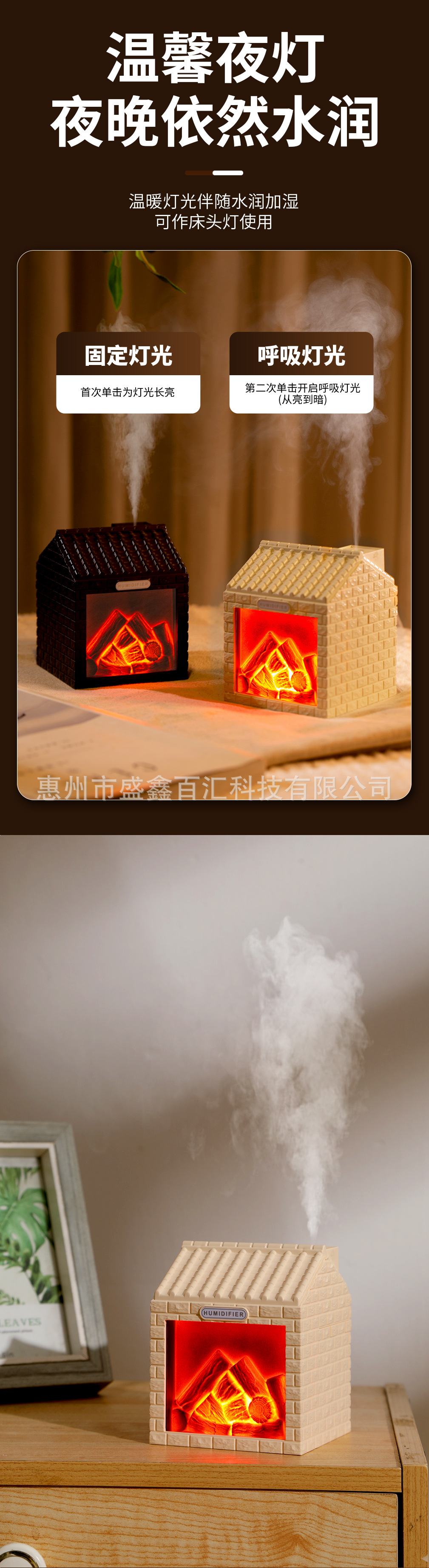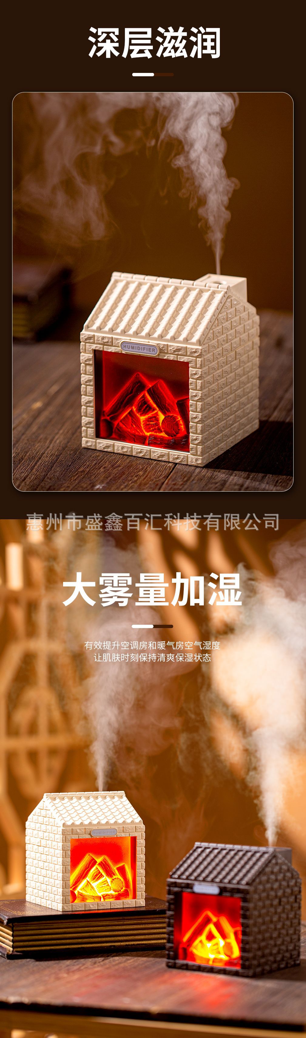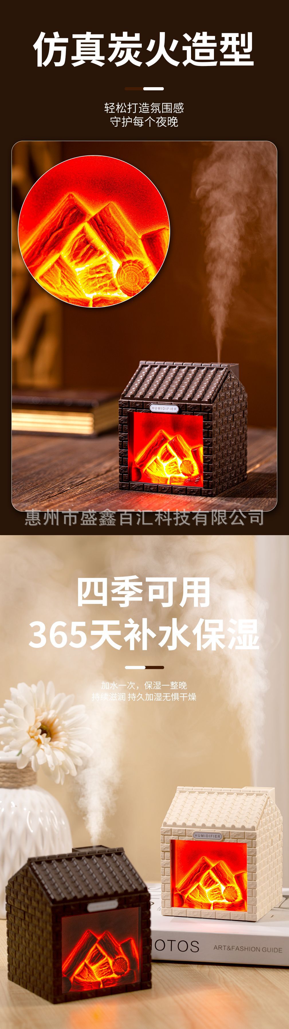 跨境2025年新品卧室暖灯炭屋加湿器家用桌面仿真壁炉火焰加湿器