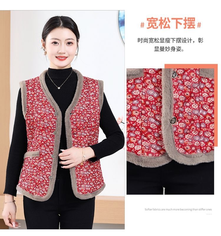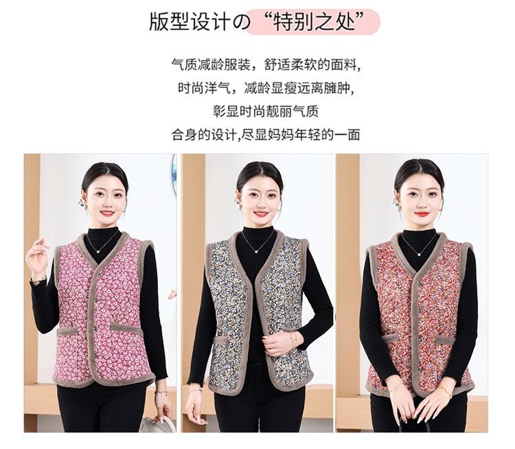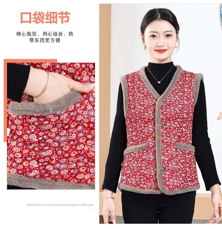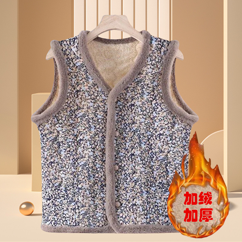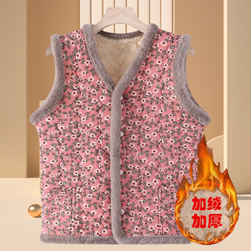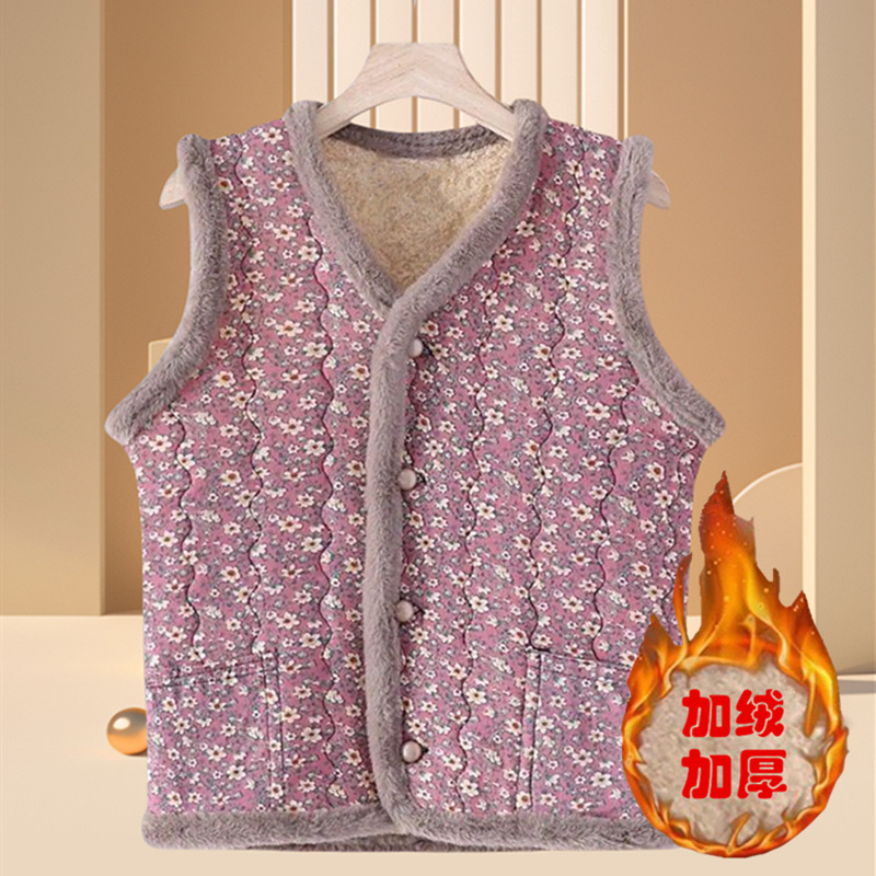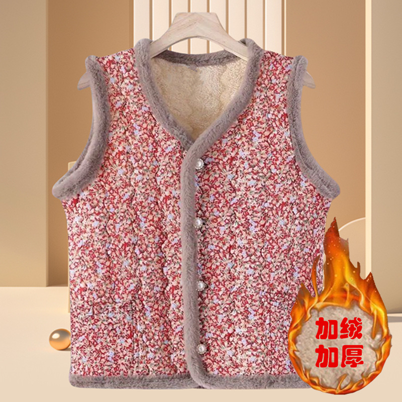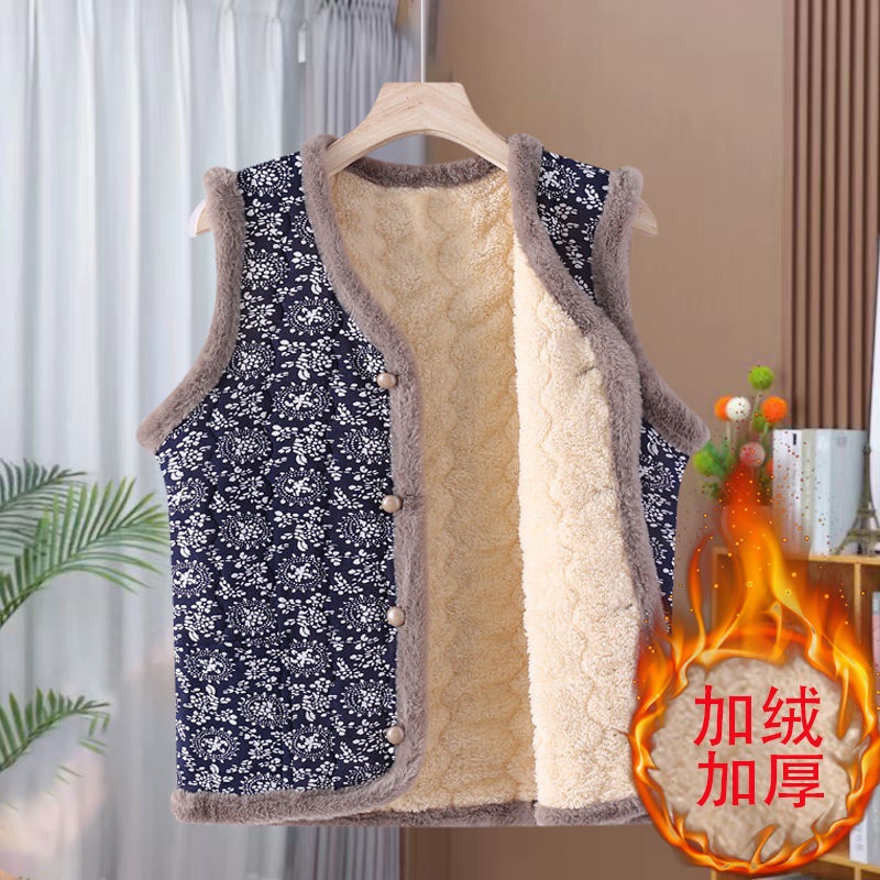 妈妈加绒棉马甲外套秋冬装新款内搭坎肩中老年女装奶奶复古棉马夹