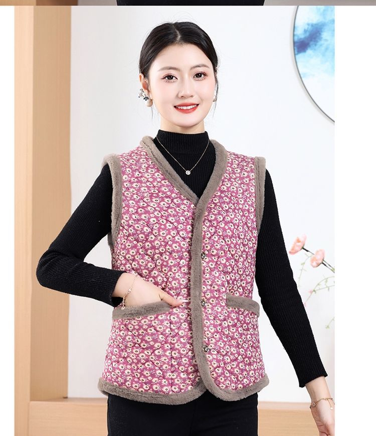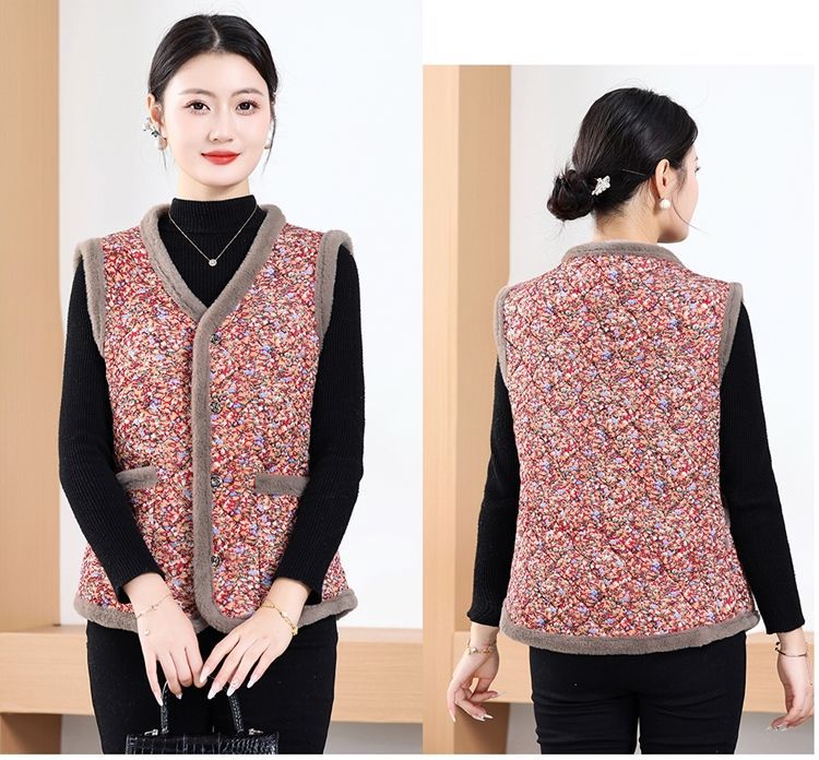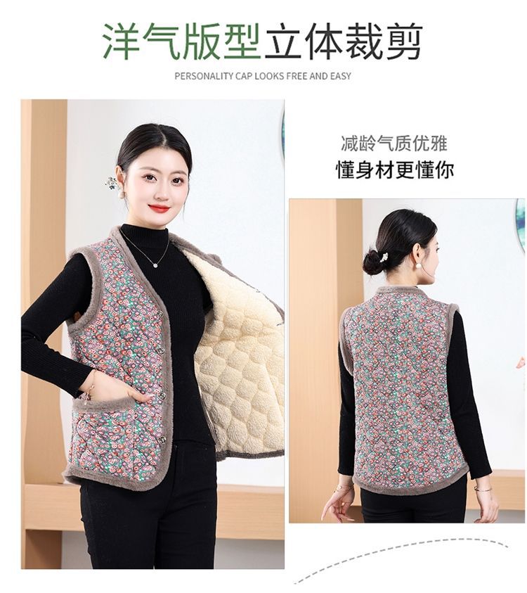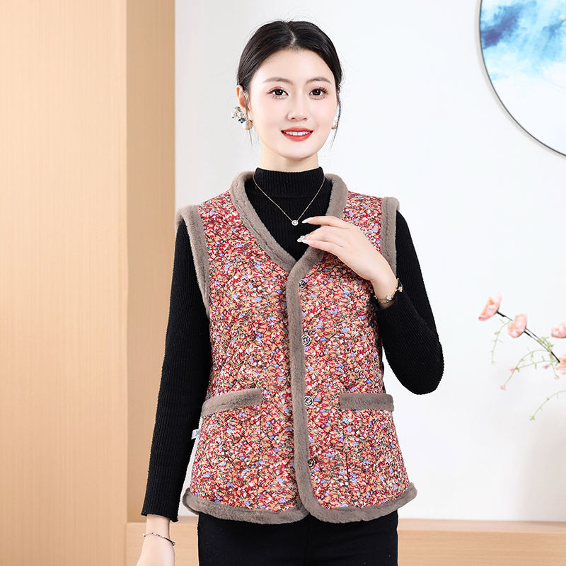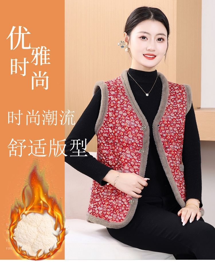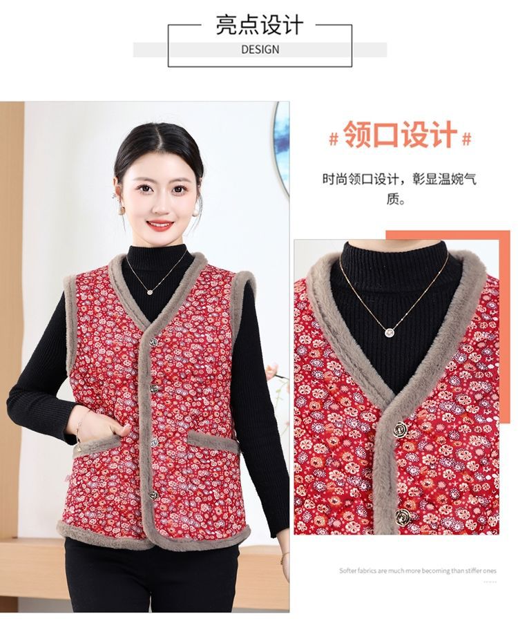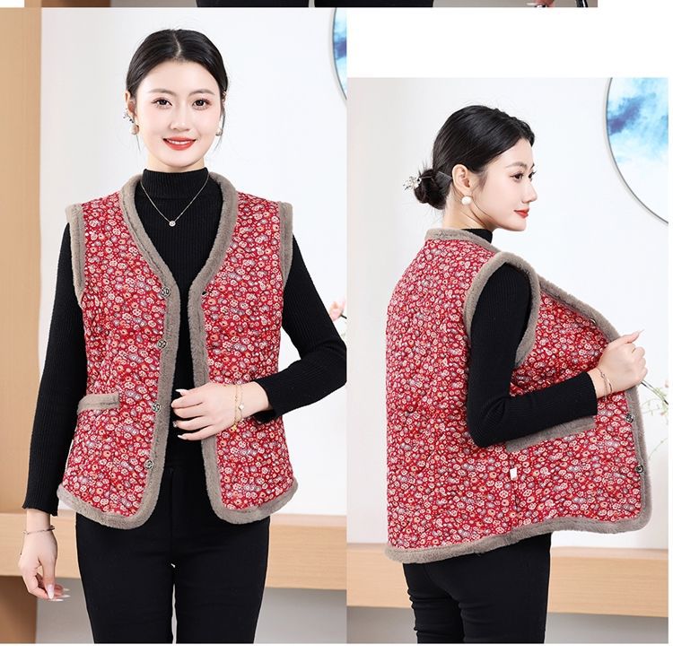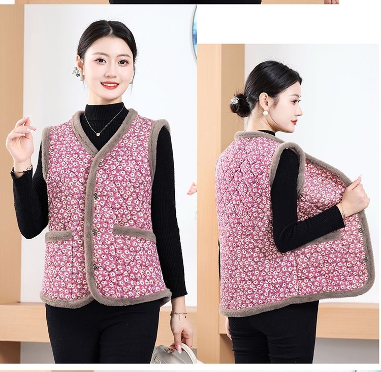 妈妈加绒棉马甲外套秋冬装新款内搭坎肩中老年女装奶奶复古棉马夹
