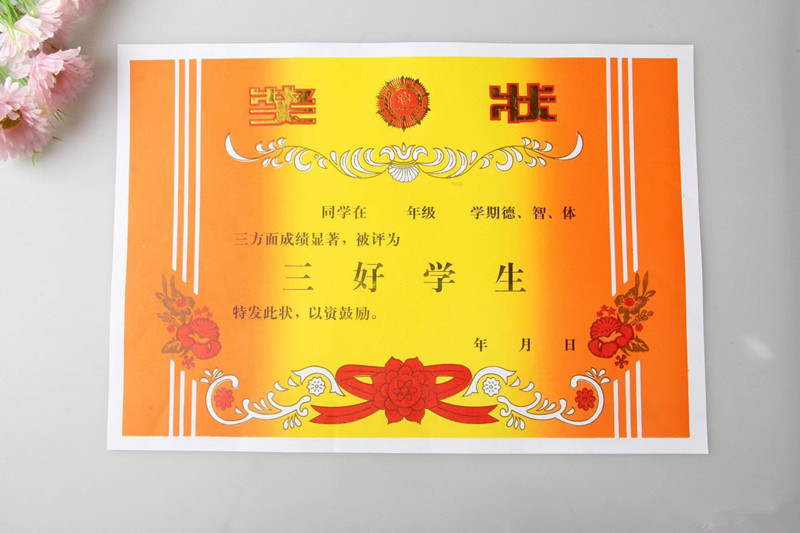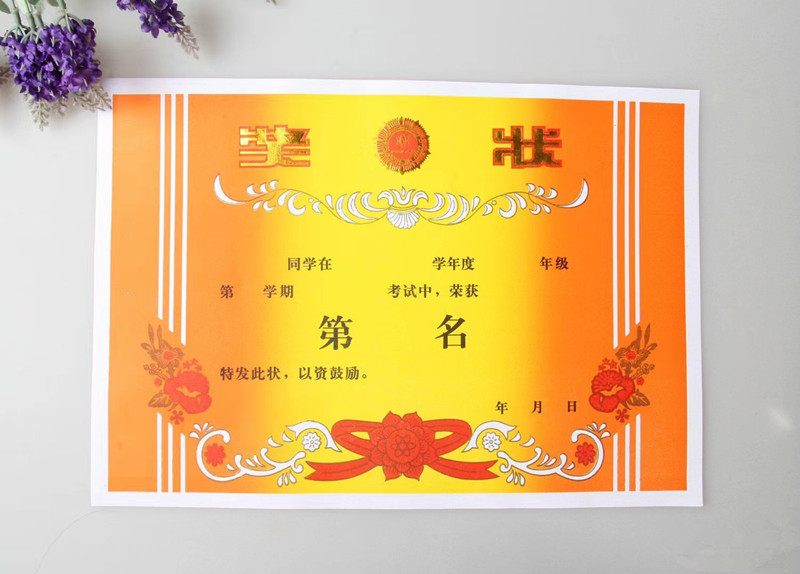 A4烫金幼儿园奖状带字8开空白奖状双胶纸奖励小学生奖状可打印