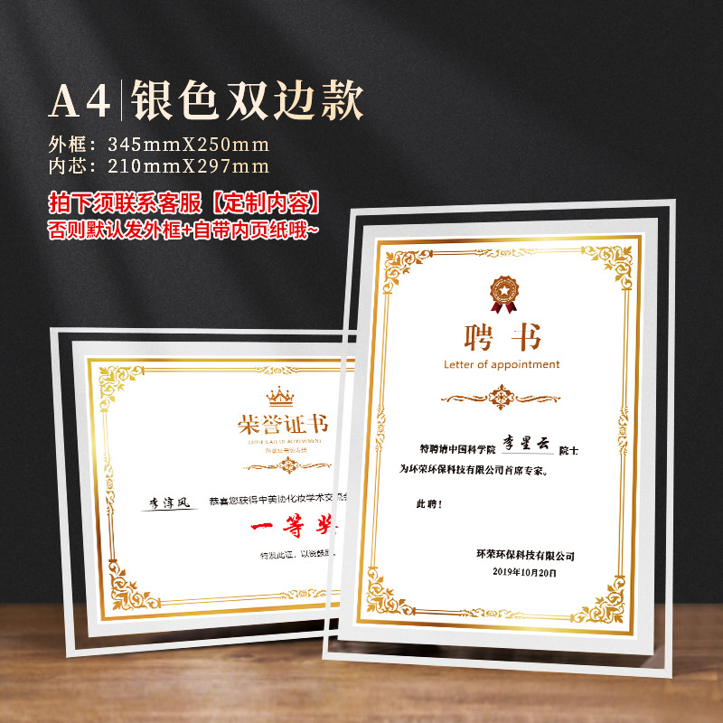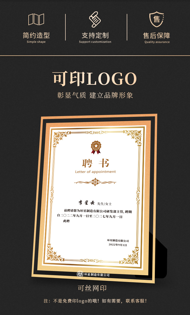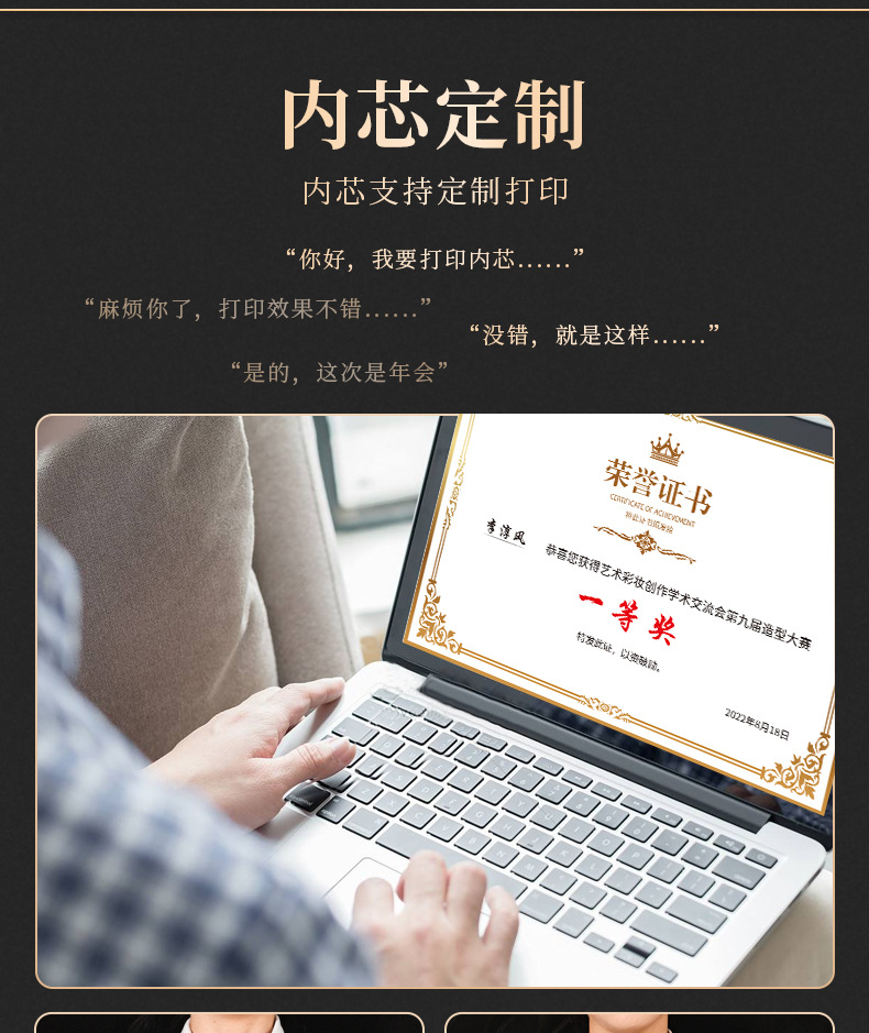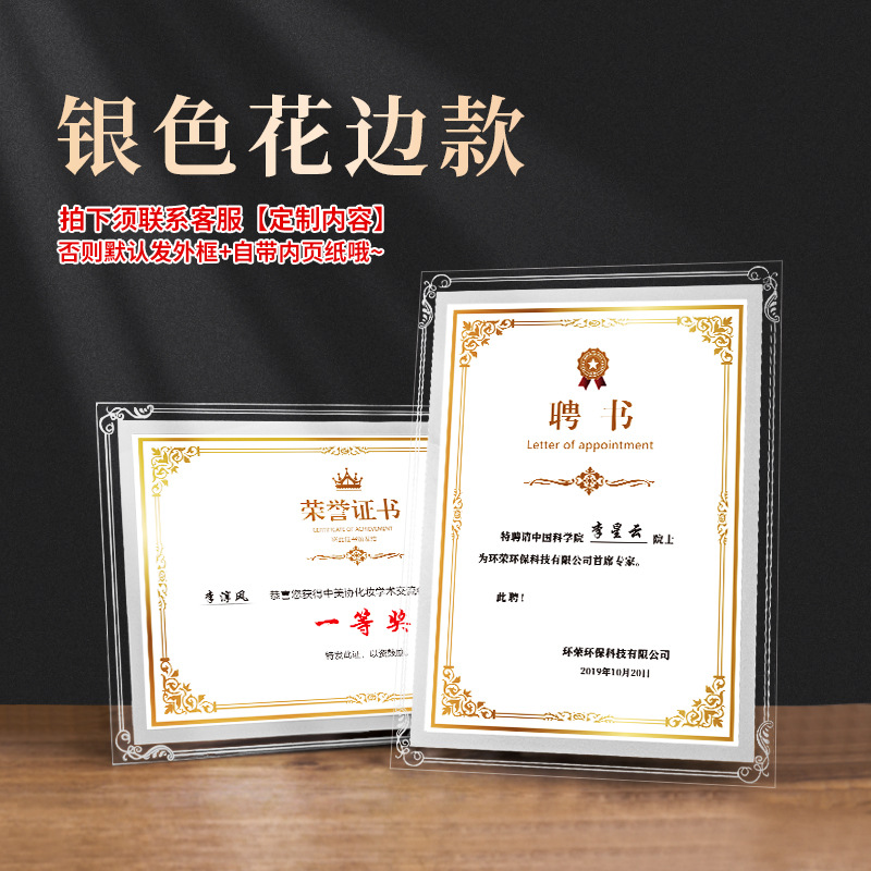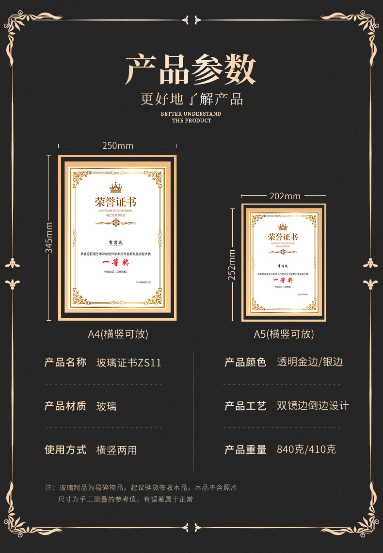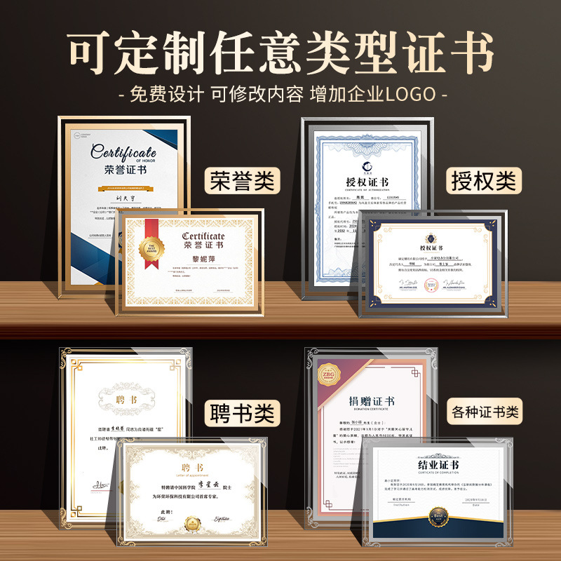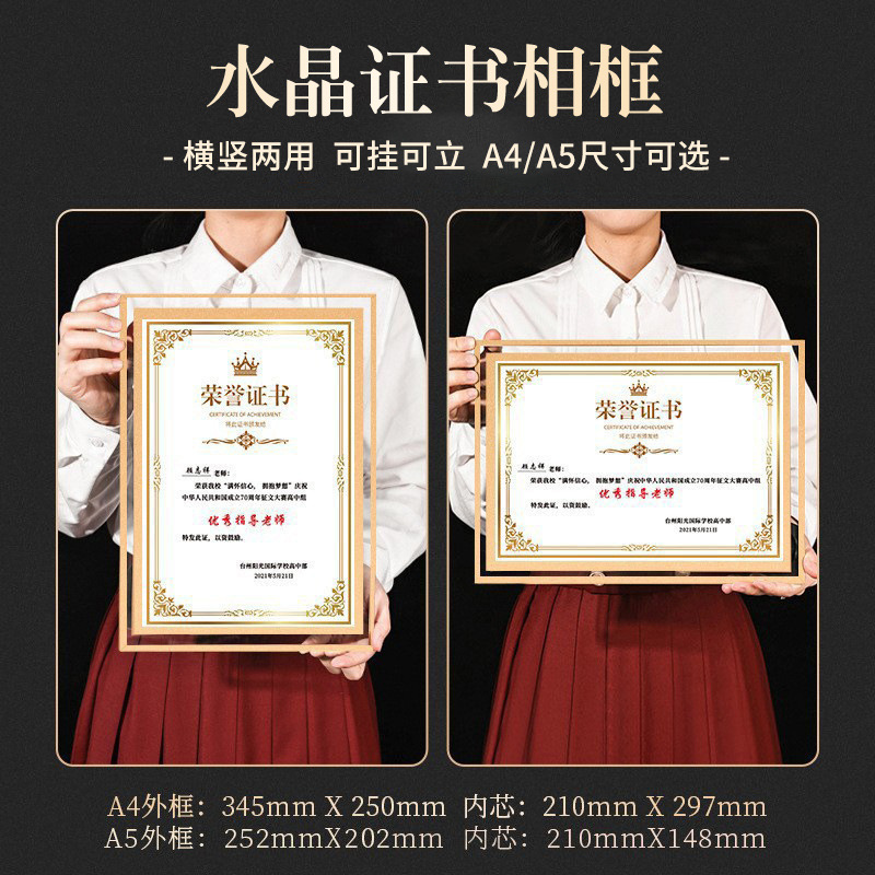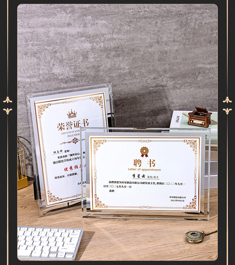 水晶玻璃荣誉证书a4奖状结业授权书聘书外壳证件相框批发内页定制