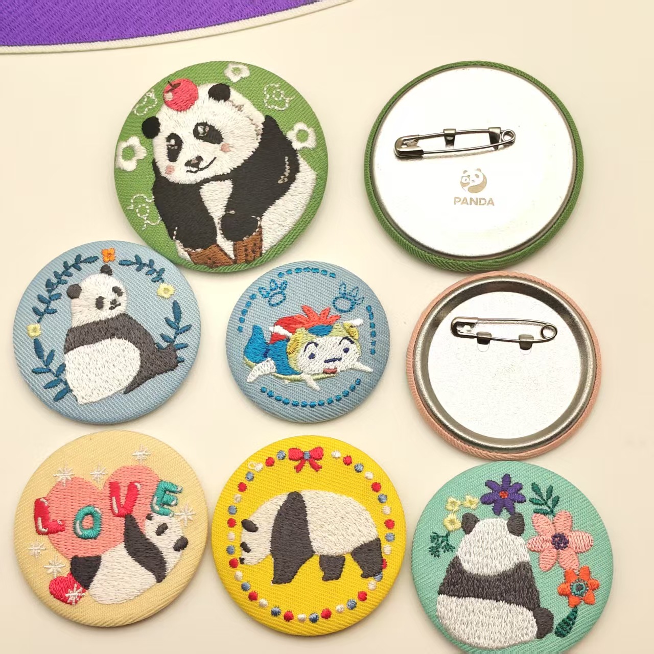 刺绣吧唧徽章卡通动漫熊猫马口铁胸章校园派对圆形胸针文创艺礼品