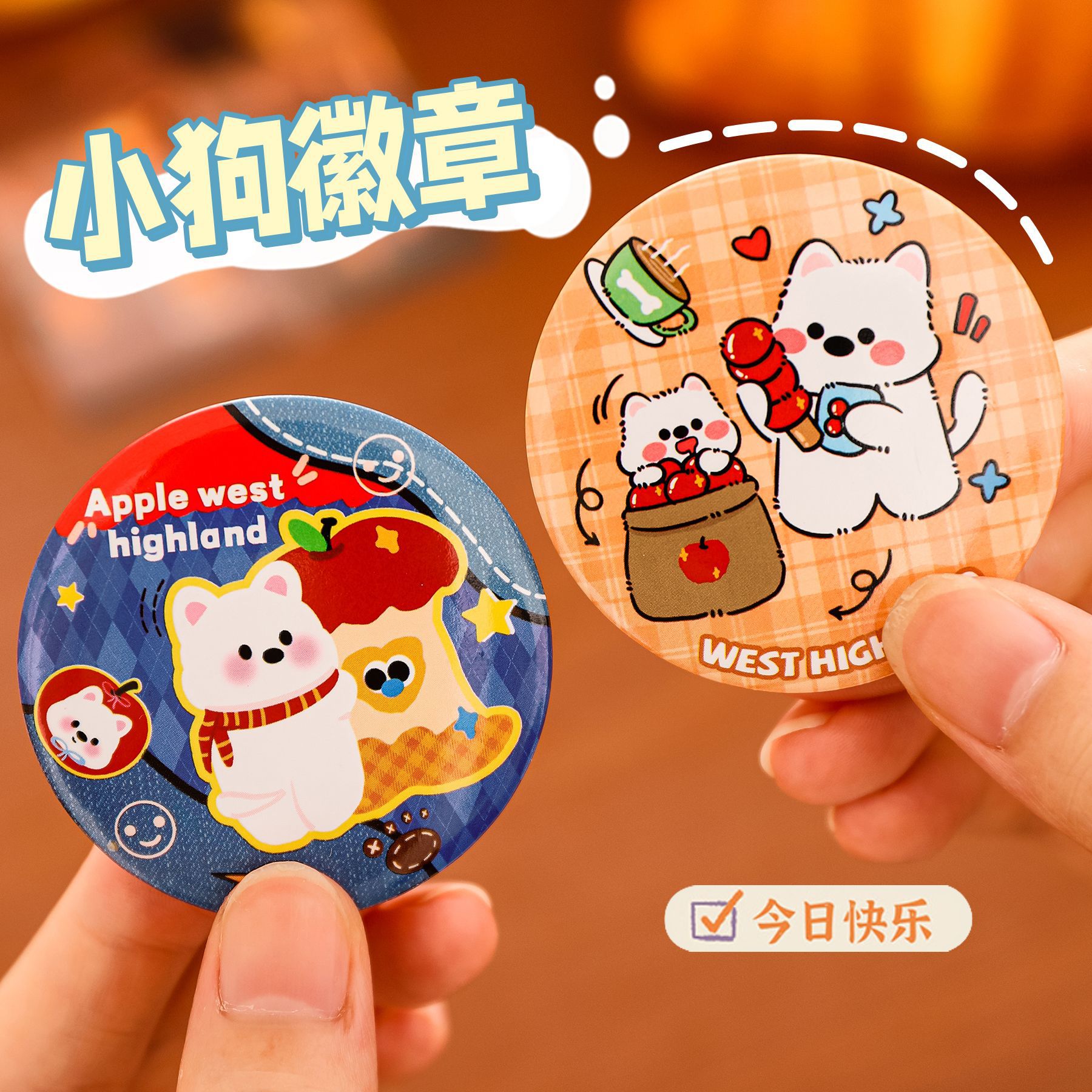 ins西高地吧唧徽章可爱苹果小狗diy装饰胸章卡通高颜值马口铁胸针