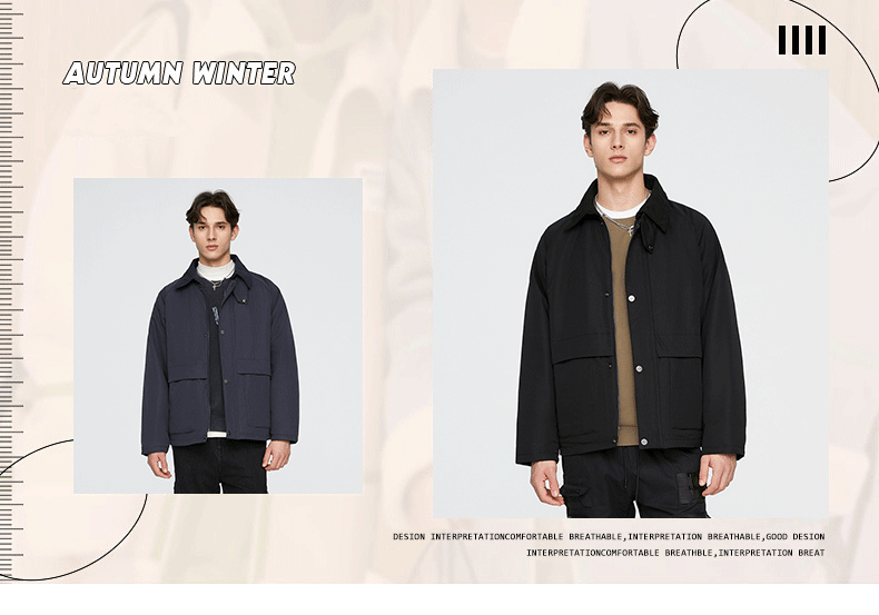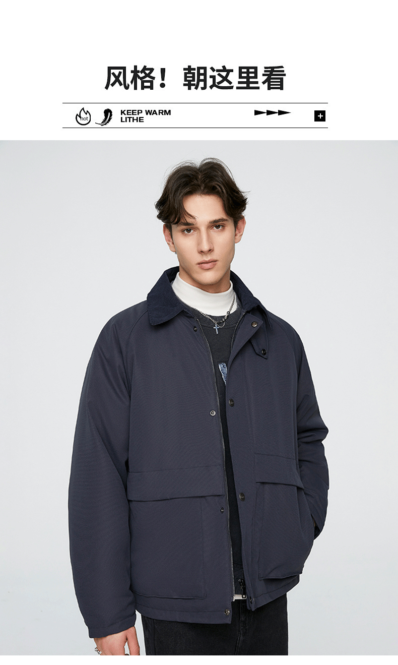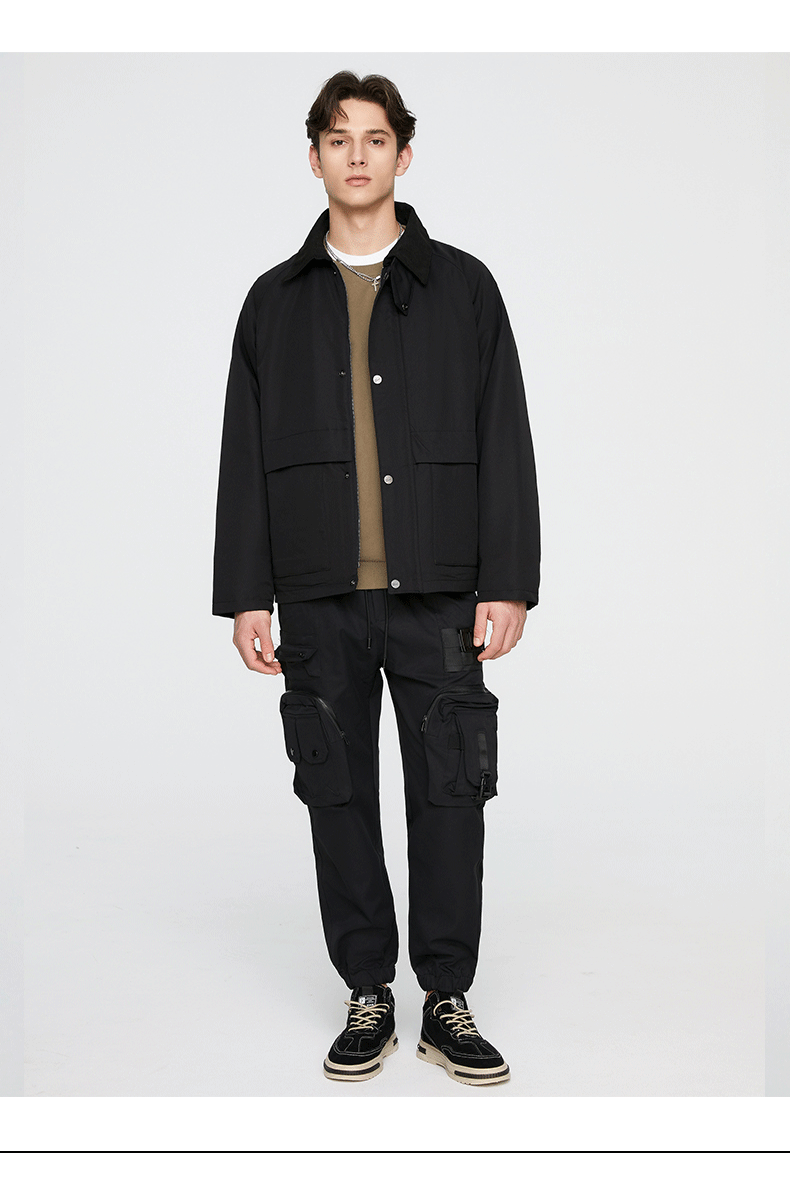 新款男士秋冬季百搭翻领休闲复古工装夹克外套多袋个性宽松