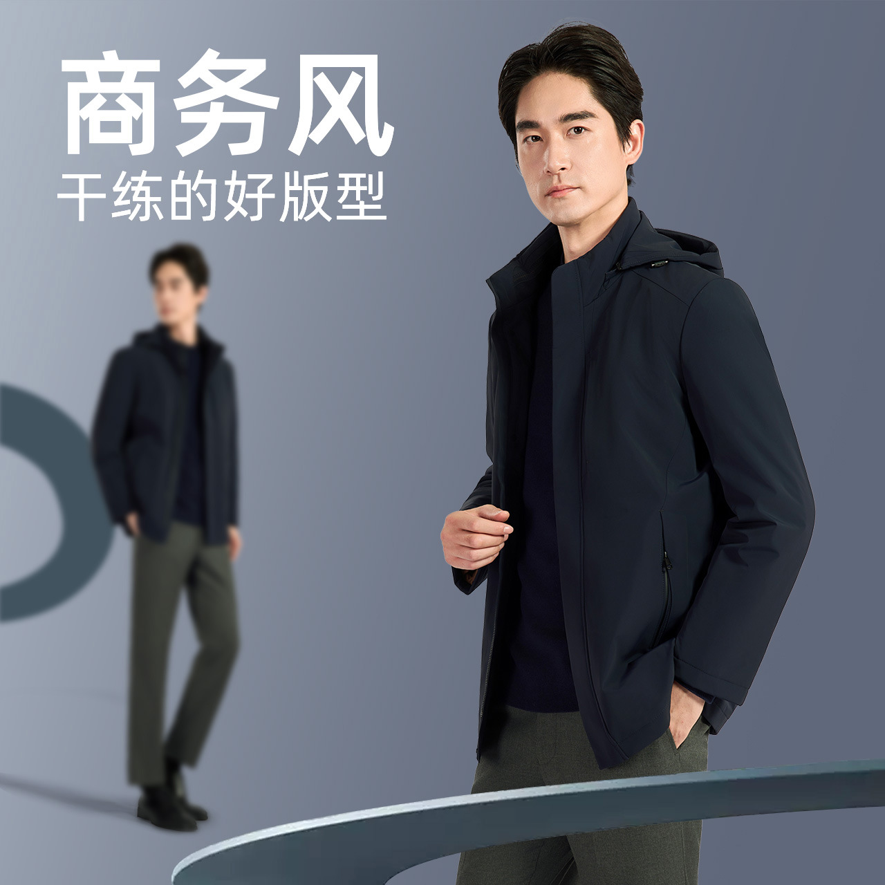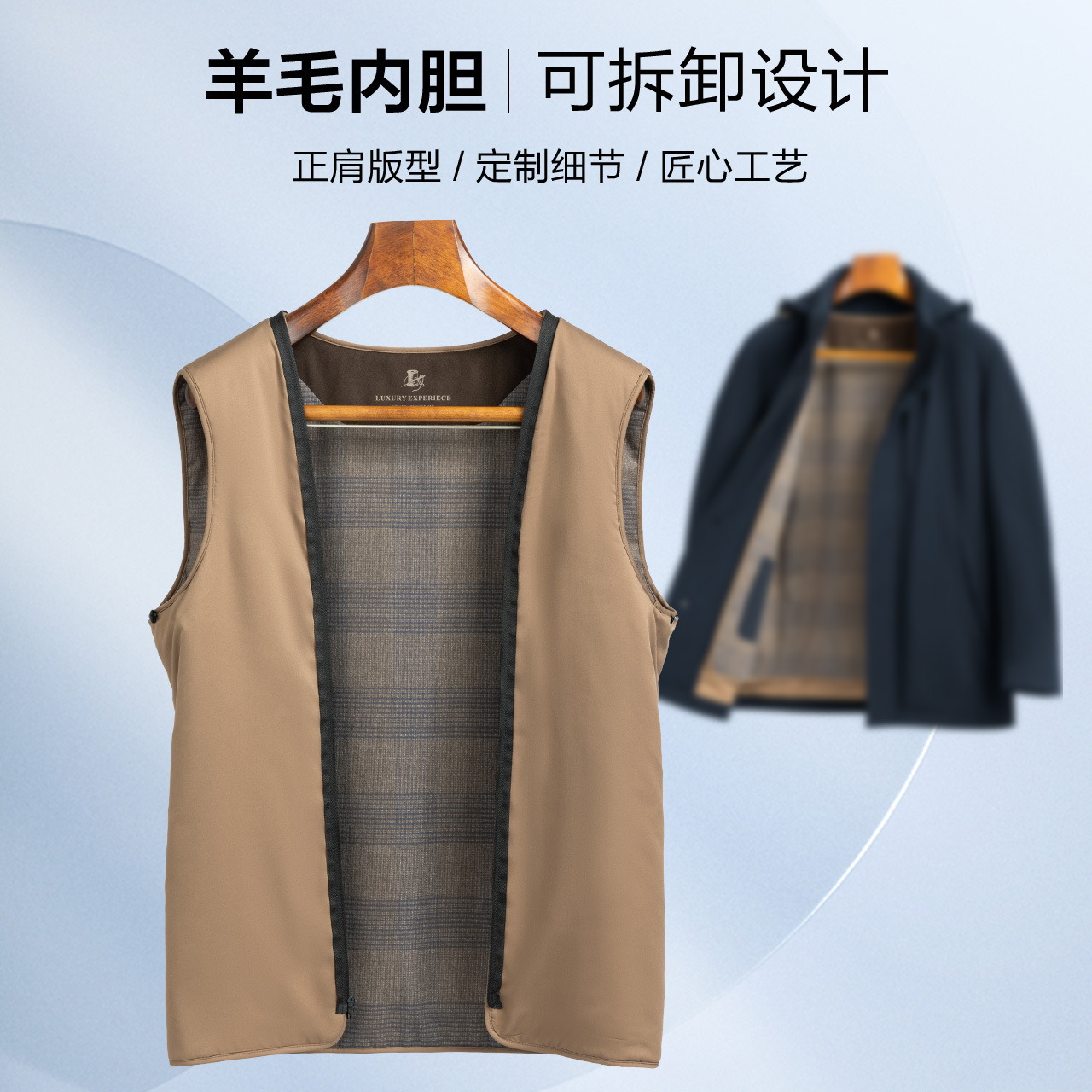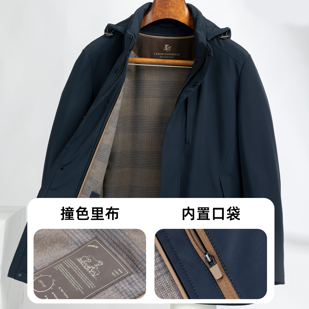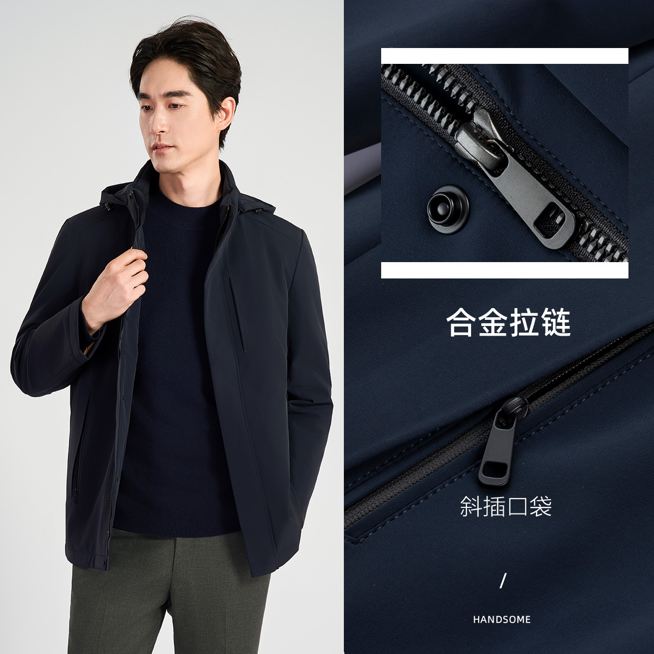 男士冬季夹克加厚外套可拆卸帽子商务高端风衣男羊毛内胆新款外衣