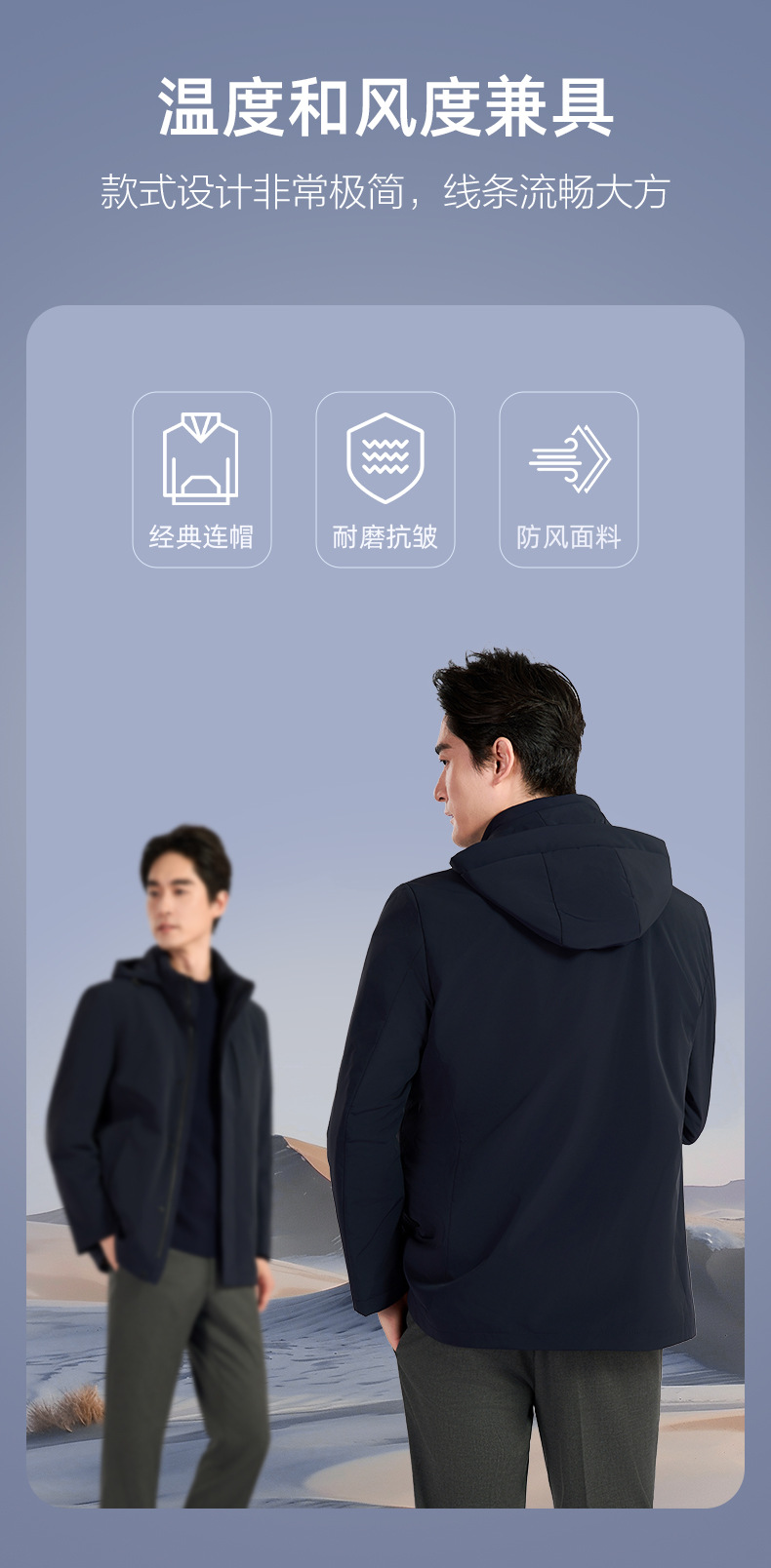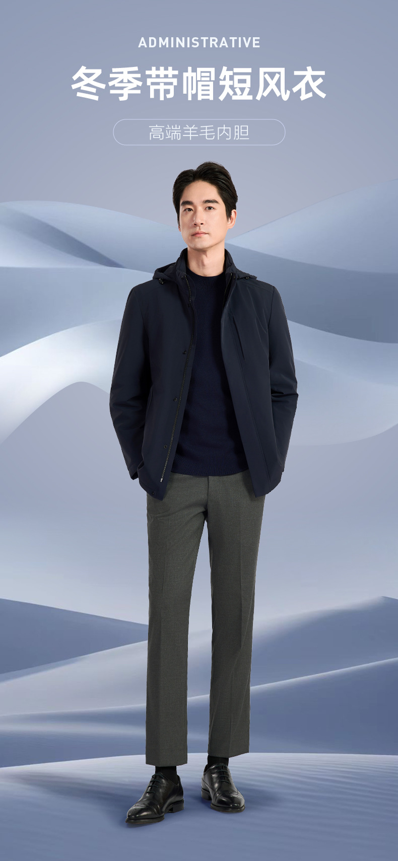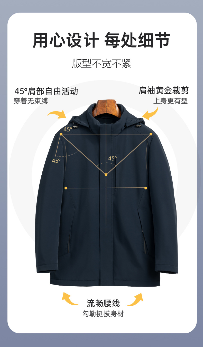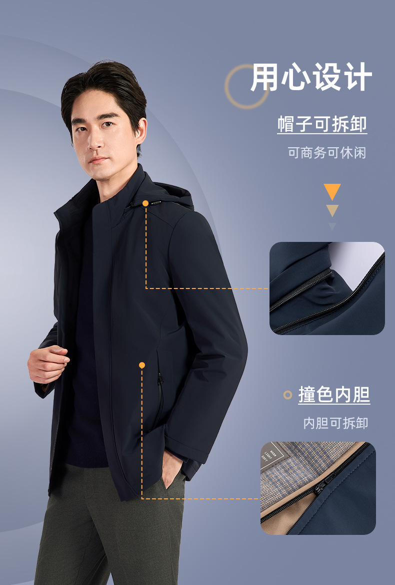 男士冬季夹克加厚外套可拆卸帽子商务高端风衣男羊毛内胆新款外衣