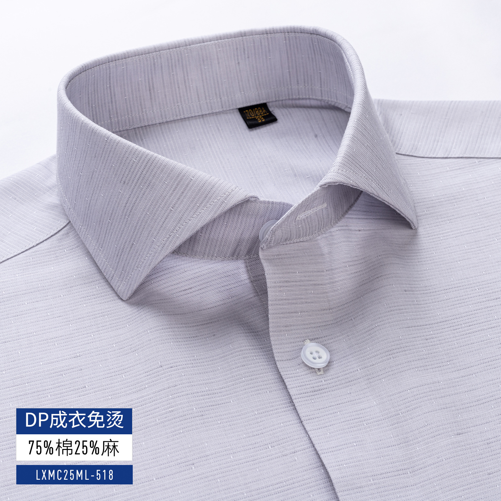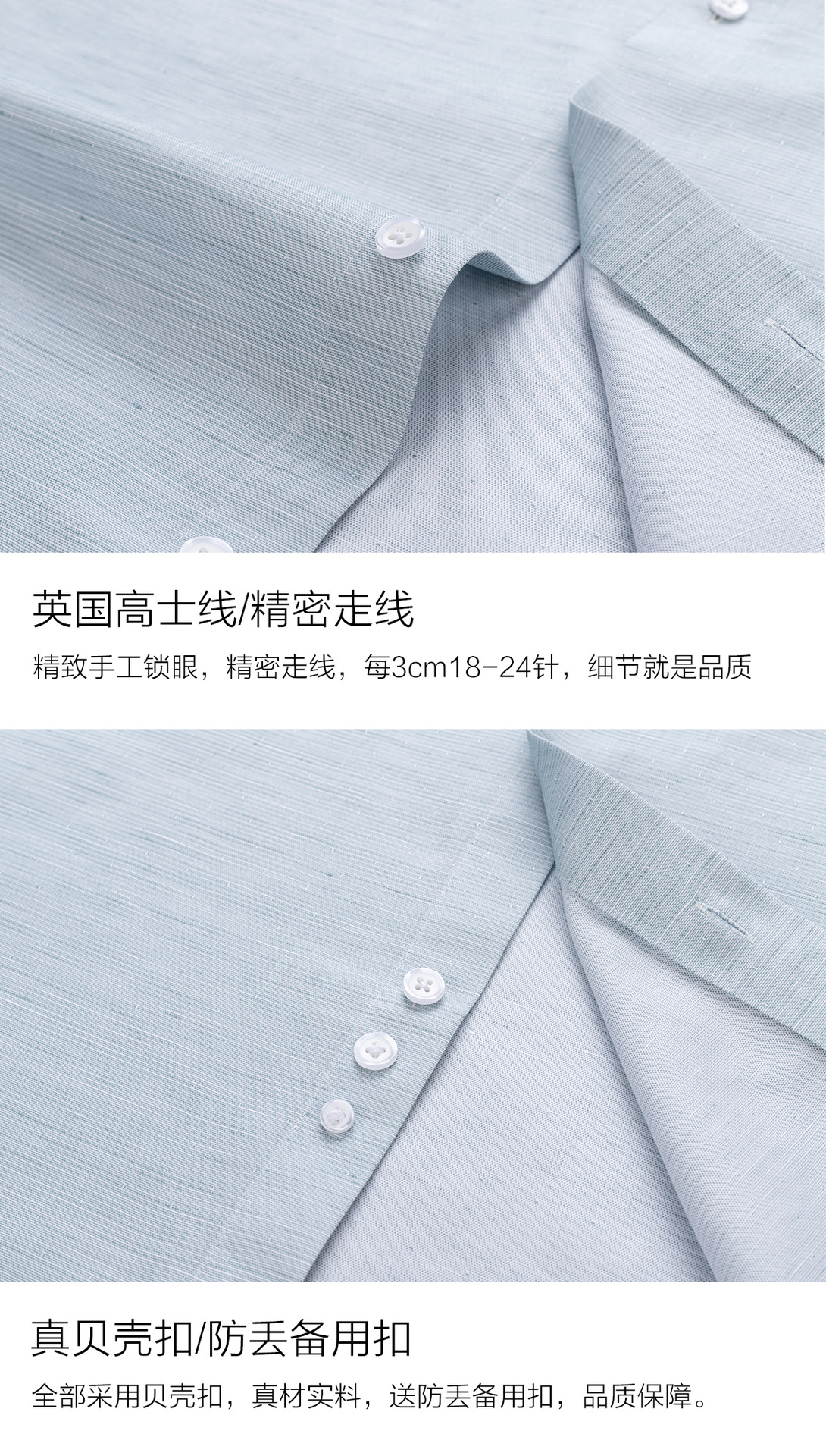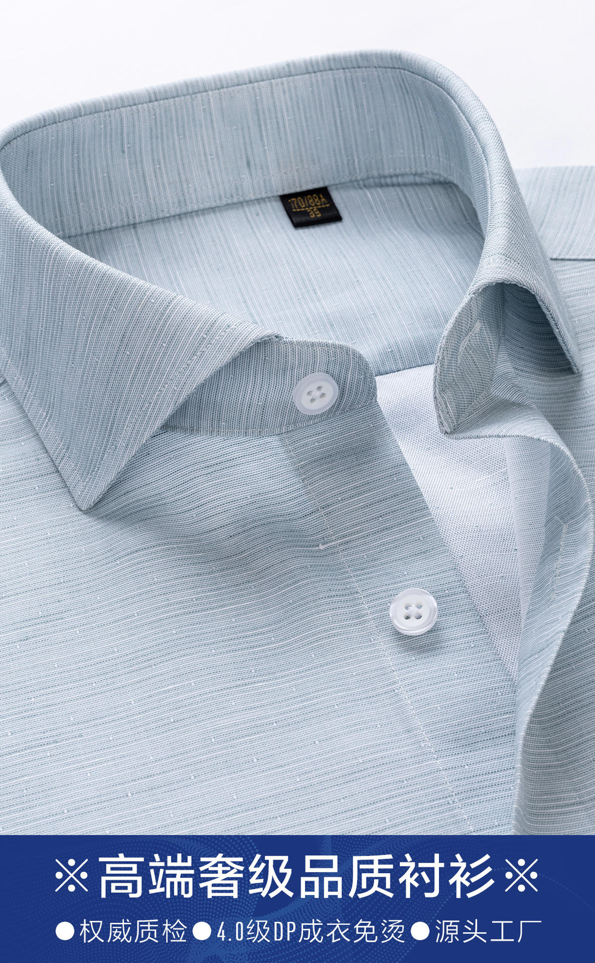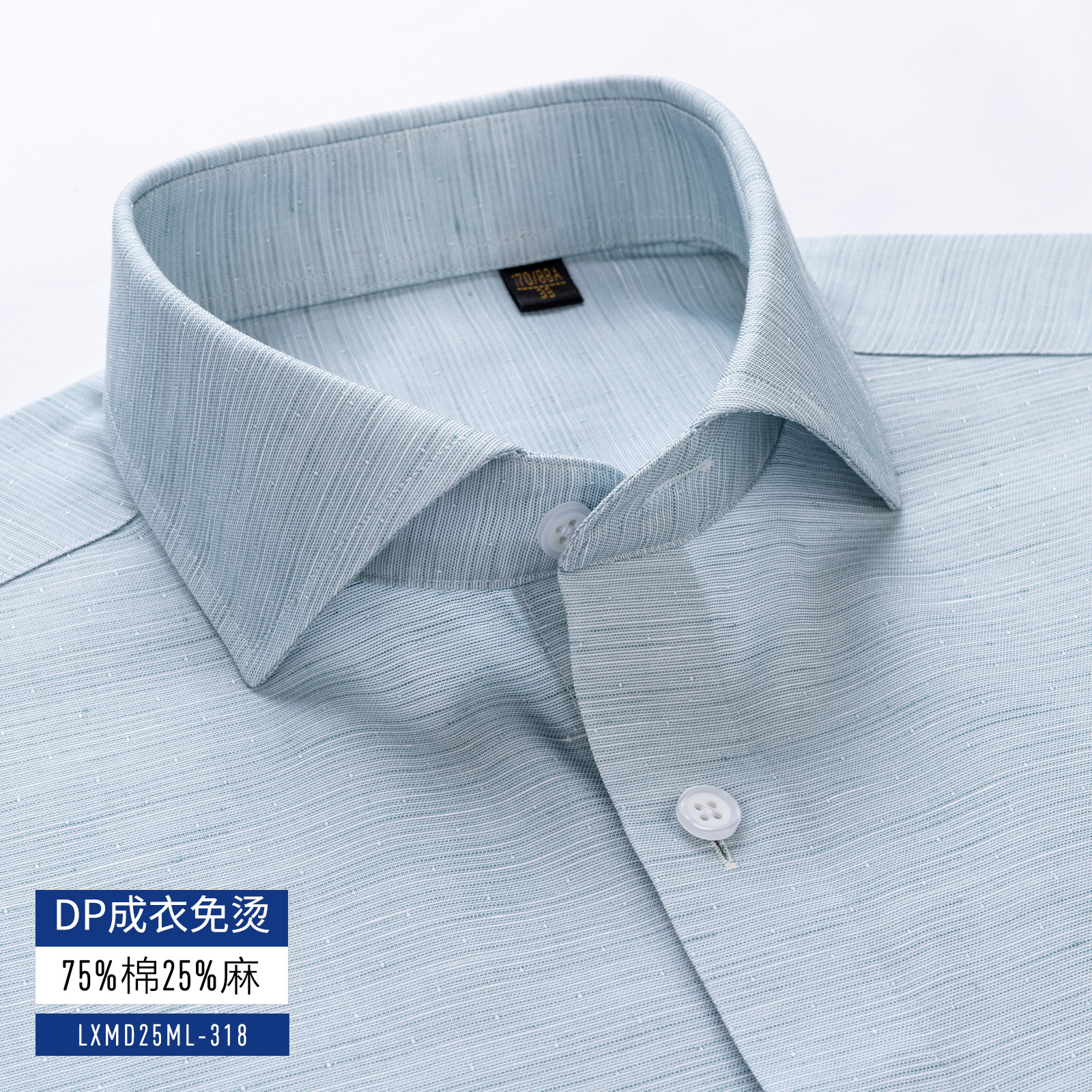衬衫男士长袖休闲棉麻DP成衣免烫短袖衬衣男绿色200支4股亚麻抗皱